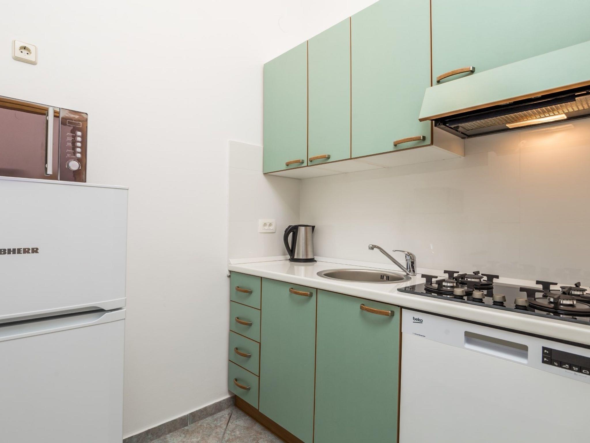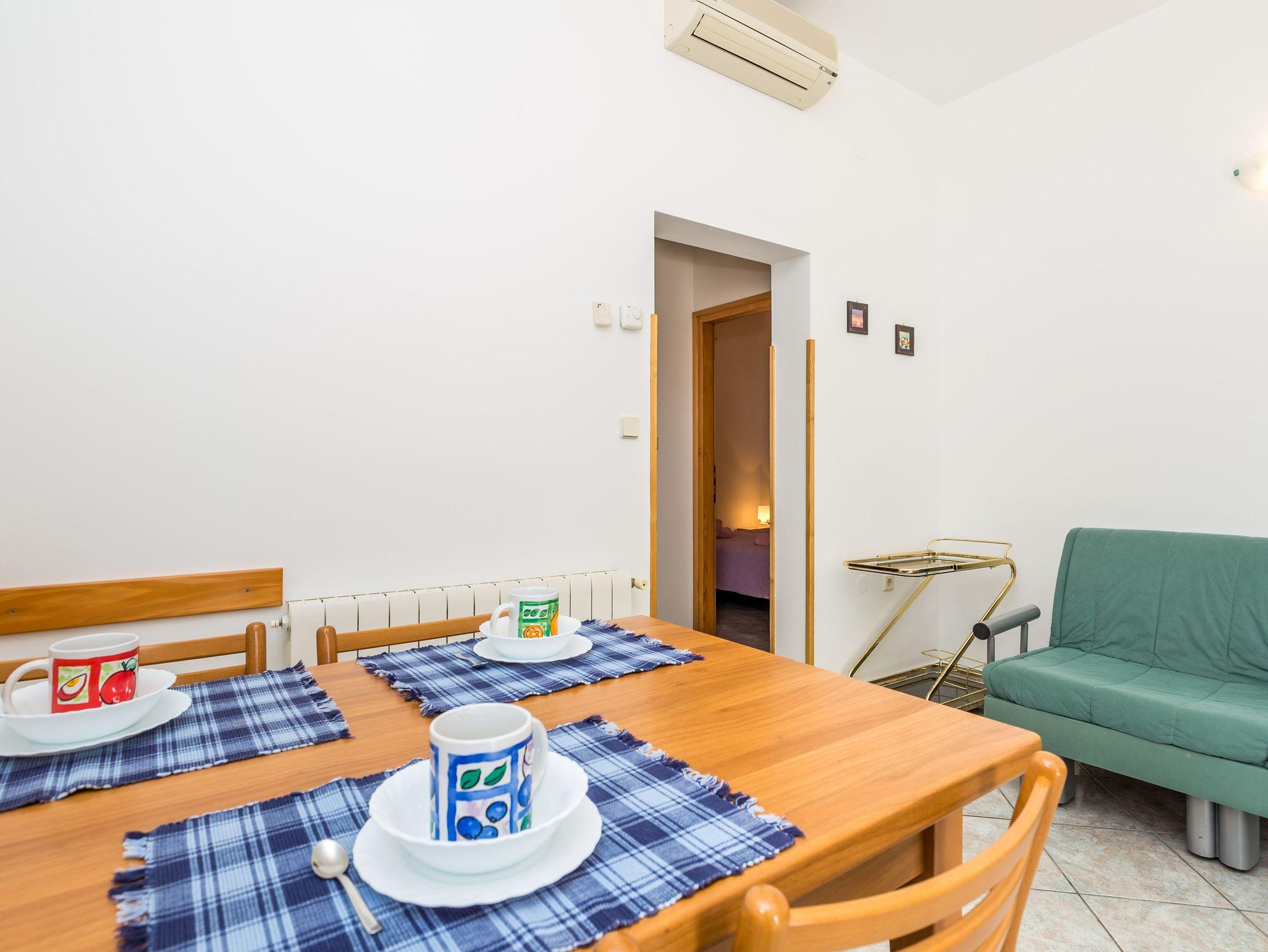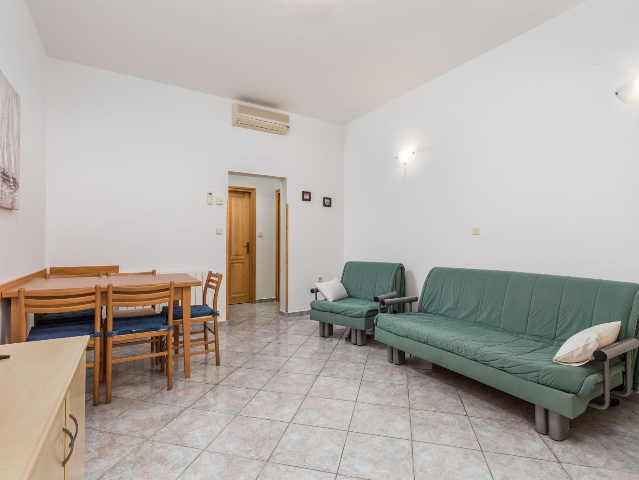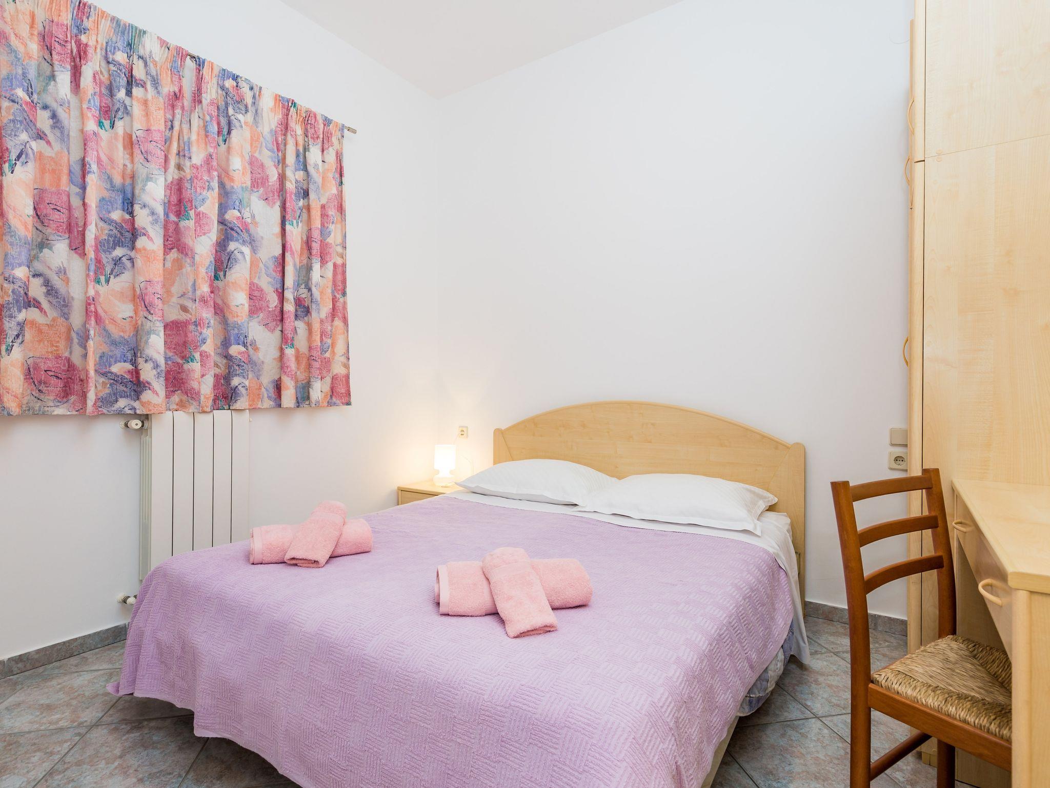 Ferienwohnung bietet Platz für 4 Gäste. Die Betten sind in Schlafzimmern, die es 1 gibt, und in Wohnzimmer, innerhalb einer Gesamtfläche von 40m2, angeordnet. Die Gäste haben eine eigene Terrasse zur Verfügung, auf der sie in warmen Sommernächten genießen können. Das Apartment bietet Meerblick. Es ist erlaubt, Speisen auf dem Gemeinschafts-Grill vorzubereiten. In der Unterkunftseinheit besteht die Möglichkeit des Mitbringens von Haustieren gegen Aufpreis. IM PREIS INBEGRIFFEN: Kurtaxe, Endreinigung, Klimatisierung, Zentralheizung, Parkplatz, Internet, Kinderbett, Bügeleisen, Bügelbrett, Föhn, tragbarer Grill. VERBINDLICHE ZUSÄTZLICHE KOSTEN: Aufzahlung für Kurzaufenthalte (prozentualer Zuschlag pro Nächtigungsanzahl: 30% - 1, 20% - 2, 10% - 3). UNVERBINDLICHE ZUSÄTZLICHE KOSTEN: Wäschewaschen (15,00 € Waschen), Haustiere (10,00 € pro Nacht). Die Verfügbarkeit zusätzlicher Dienstleistungen in Ihrem reservierten Termin und die Preise derselben (falls nicht aufgeführt) müssen im Voraus überprüft werden. Zusätzliche Dienstleistungen die in der Zahlungsaufforderung nicht aufgeführt sind werden direkt beim Vermieter bezahlt, angenommen der Gast nutzt auch diese. Ermäßigung auf den Grundpreis: Gratistag 21=19 (bei einem Aufenthalt von 21 Tagen oder mehr erhalten Sie 2 Gratistage für den Aufenthalt bis 31.12.26).