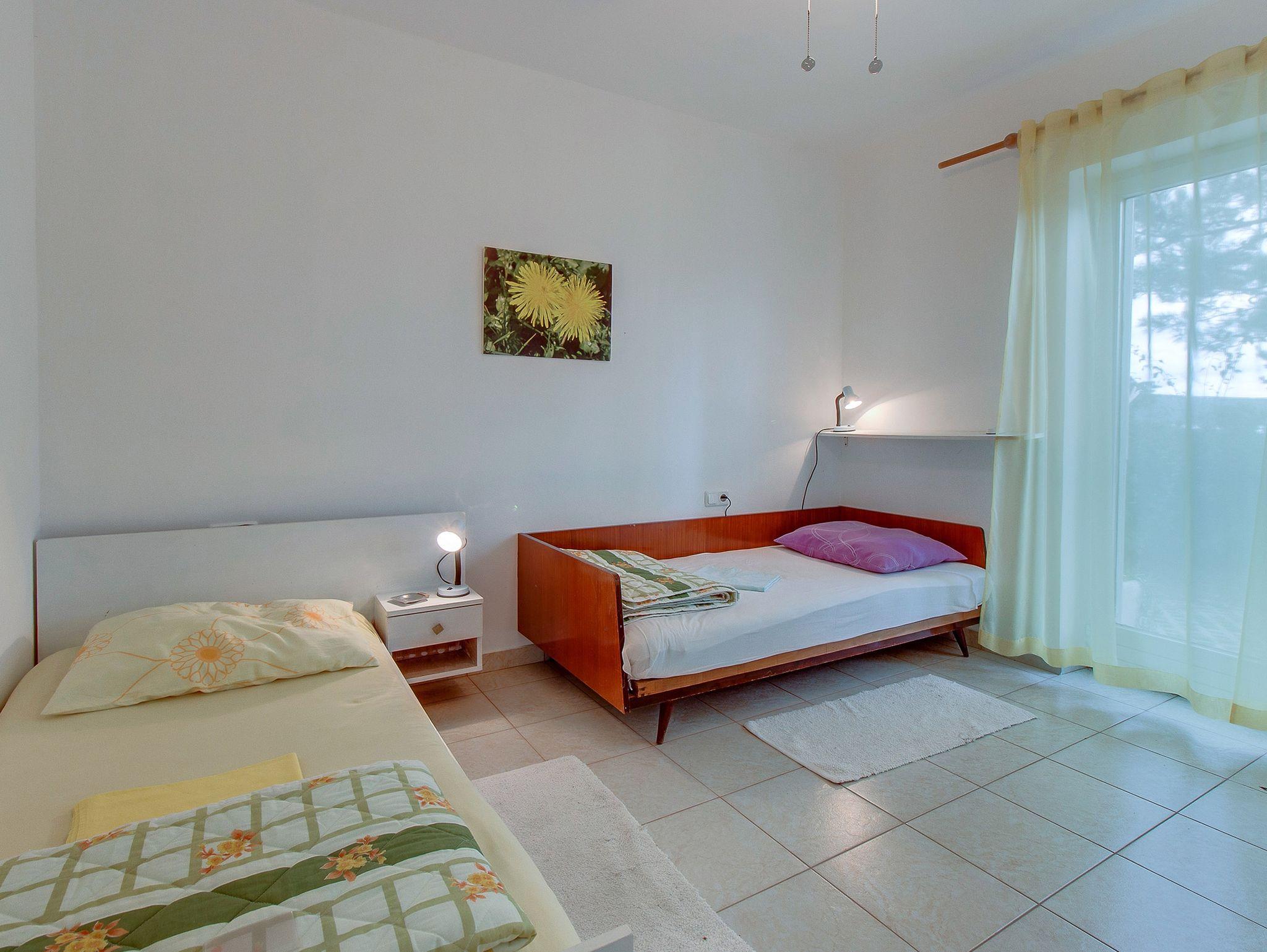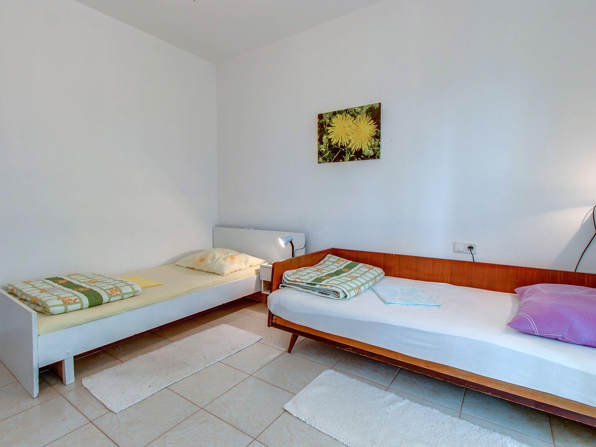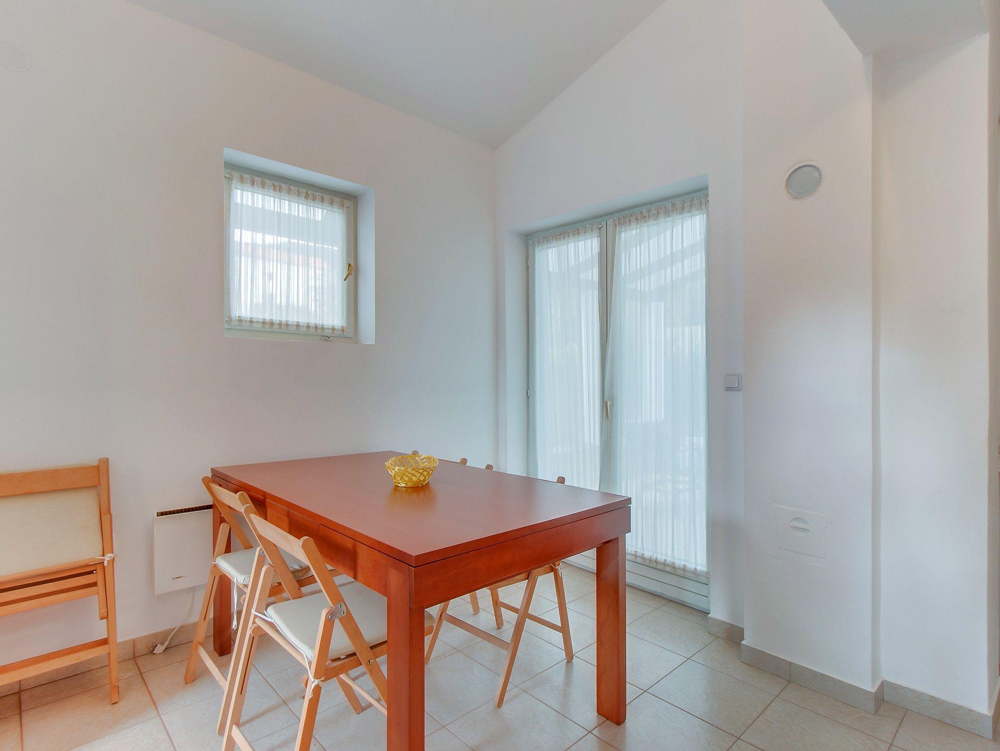 Ferienwohnung bietet Platz für 7 Gäste. Die Betten sind in Schlafzimmern, die es 2 gibt, und in Wohnzimmer, innerhalb einer Gesamtfläche von 63m2, angeordnet. Die Gäste haben eine eigene Terrasse zur Verfügung, auf der sie in warmen Sommernächten genießen können. Es ist erlaubt, Speisen auf dem Gemeinschafts-Grill vorzubereiten. In der Unterkunftseinheit besteht die Möglichkeit des Mitbringens von Haustieren gegen Aufpreis. Durch die Terrasse der gebuchten Unterkunftseinheit gehen auch andere Gäste oder Vermieter. IM PREIS INBEGRIFFEN: Kurtaxe, Endreinigung, Klimatisierung, Parkplatz, Internet, Kinderbett, Bügeleisen, Bügelbrett, Föhn. VERBINDLICHE ZUSÄTZLICHE KOSTEN: Aufzahlung für Kurzaufenthalte (prozentualer Zuschlag pro Nächtigungsanzahl: 30% - 1, 20% - 2, 10% - 3). UNVERBINDLICHE ZUSÄTZLICHE KOSTEN: Haustiere (5,00 € pro Nacht), Zusatzbett (13,00 € pro Nacht). Die Verfügbarkeit zusätzlicher Dienstleistungen in Ihrem reservierten Termin und die Preise derselben (falls nicht aufgeführt) müssen im Voraus überprüft werden. Zusätzliche Dienstleistungen die in der Zahlungsaufforderung nicht aufgeführt sind werden direkt beim Vermieter bezahlt, angenommen der Gast nutzt auch diese. Ermäßigung auf den Grundpreis: Gratistag 28=25 (bei einem Aufenthalt von 28 oder mehr Tagen erhalten Sie 3 kostenlose Tage für den Aufenthalt bis 31.12.26).