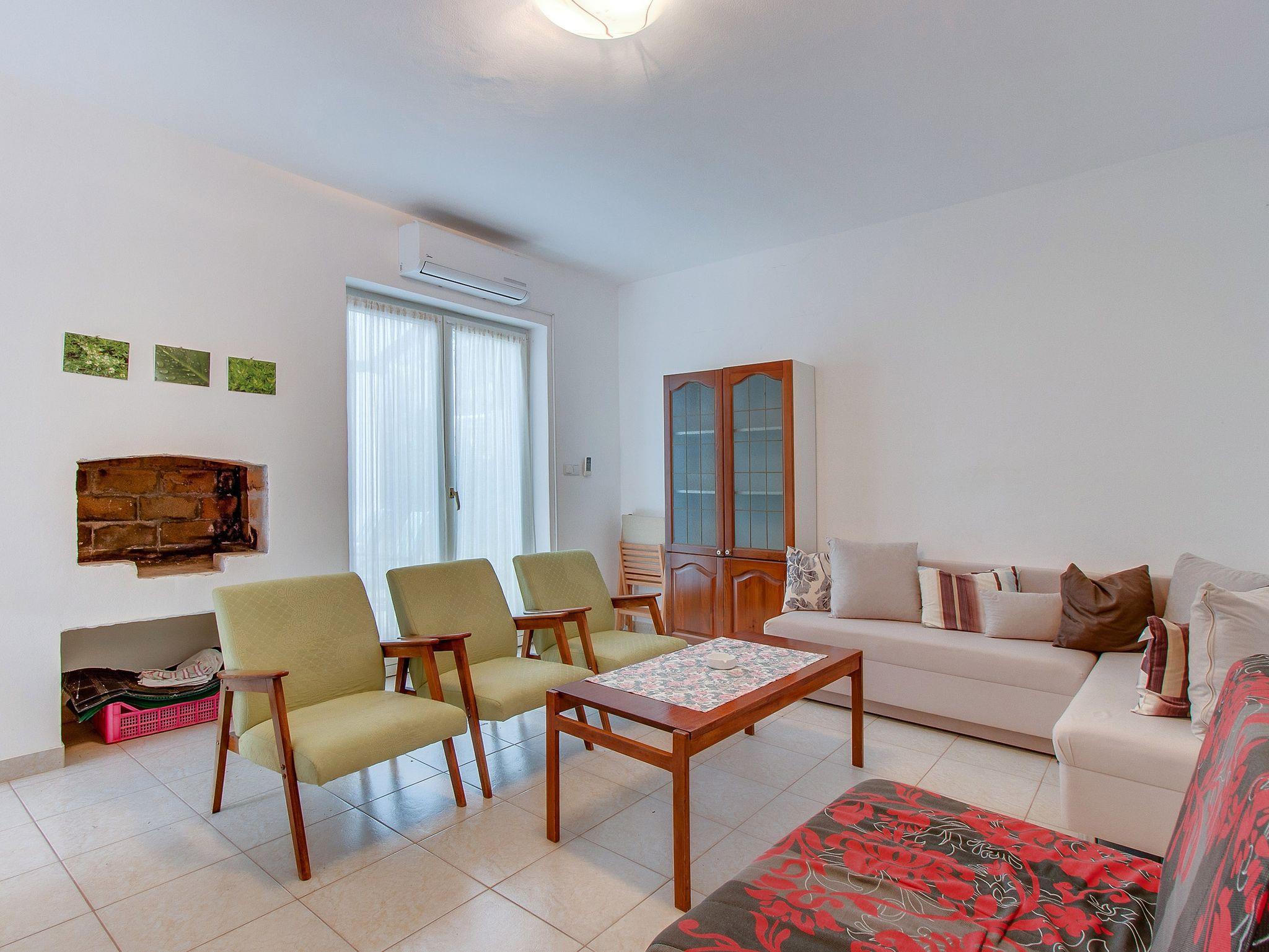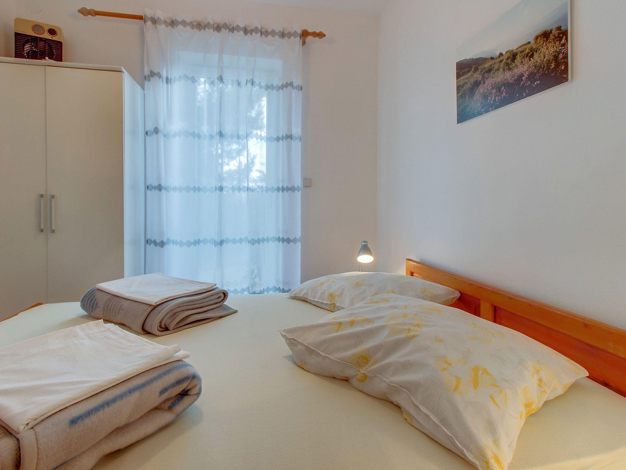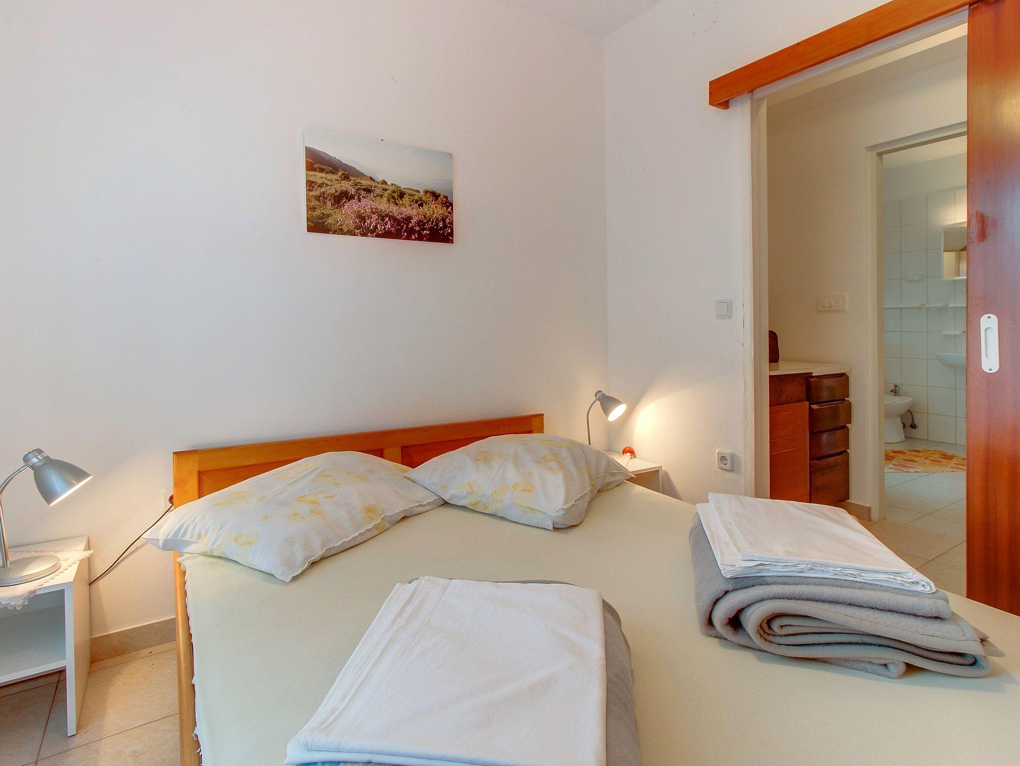 Ferienwohnung bietet Platz für 7 Gäste. Die Betten sind in Schlafzimmern, die es 2 gibt, und in Wohnzimmer, innerhalb einer Gesamtfläche von 63m2, angeordnet. Die Gäste haben eine eigene Terrasse zur Verfügung, auf der sie in warmen Sommernächten genießen können. Es ist erlaubt, Speisen auf dem Gemeinschafts-Grill vorzubereiten. In der Unterkunftseinheit besteht die Möglichkeit des Mitbringens von Haustieren gegen Aufpreis. Durch die Terrasse der gebuchten Unterkunftseinheit gehen auch andere Gäste oder Vermieter. IM PREIS INBEGRIFFEN: Kurtaxe, Endreinigung, Klimatisierung, Parkplatz, Internet, Kinderbett, Bügeleisen, Bügelbrett, Föhn. VERBINDLICHE ZUSÄTZLICHE KOSTEN: Aufzahlung für Kurzaufenthalte (prozentualer Zuschlag pro Nächtigungsanzahl: 30% - 1, 20% - 2, 10% - 3). UNVERBINDLICHE ZUSÄTZLICHE KOSTEN: Haustiere (5,00 € pro Nacht), Zusatzbett (13,00 € pro Nacht). Die Verfügbarkeit zusätzlicher Dienstleistungen in Ihrem reservierten Termin und die Preise derselben (falls nicht aufgeführt) müssen im Voraus überprüft werden. Zusätzliche Dienstleistungen die in der Zahlungsaufforderung nicht aufgeführt sind werden direkt beim Vermieter bezahlt, angenommen der Gast nutzt auch diese. Ermäßigung auf den Grundpreis: Gratistag 28=25 (bei einem Aufenthalt von 28 oder mehr Tagen erhalten Sie 3 kostenlose Tage für den Aufenthalt bis 31.12.26).
