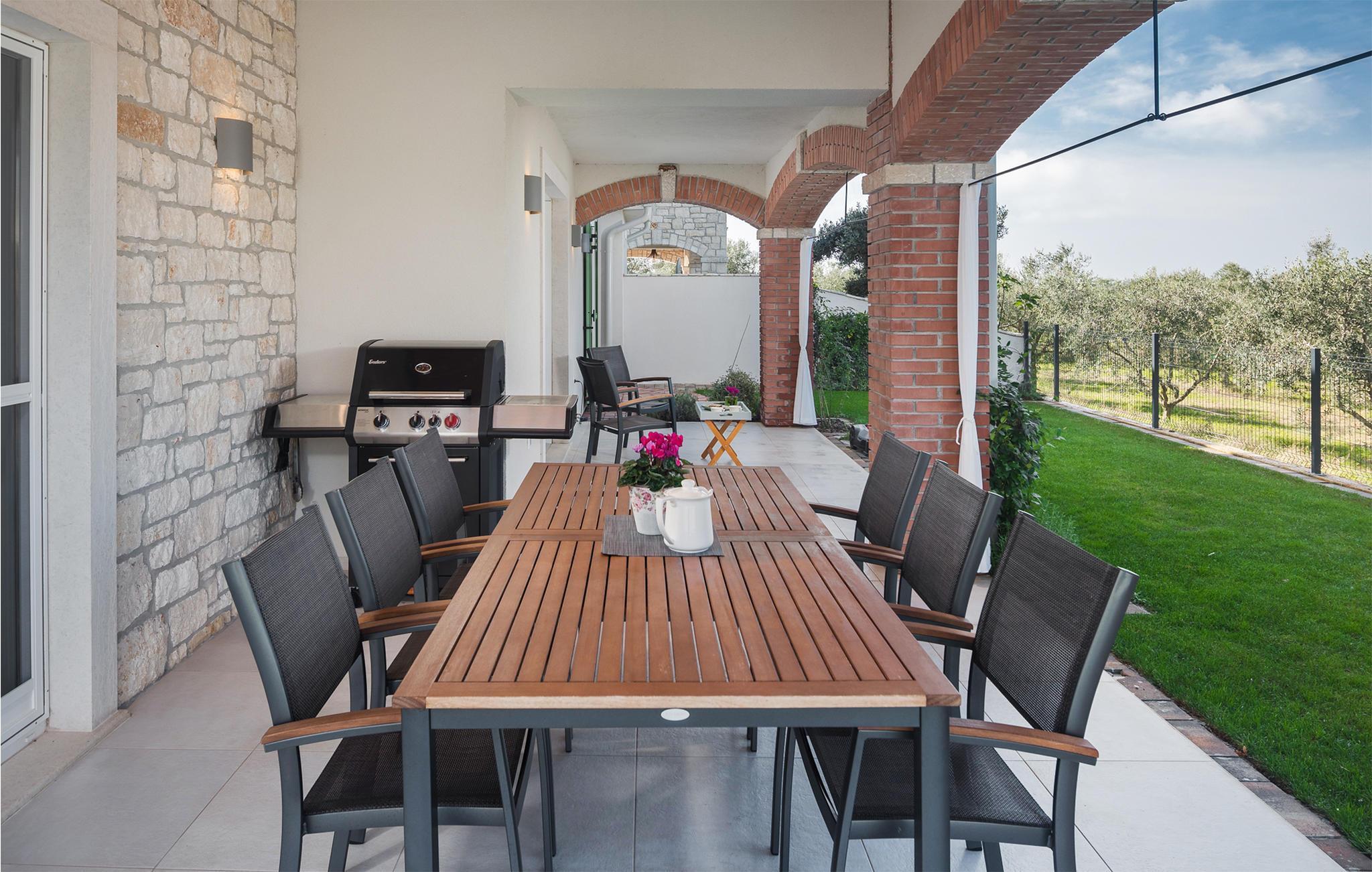 Abseits der Touristenstädte der Küste heißt Sie Buzinija dieses schöne Haus willkommen. Die komfortablen und einladenden Räume versprechen mit dem offenen Grundriss einen entspannten Ferienalltag, den Sie nach der jeweiligen Vorliebe, wie Kochen, Spielen und Entspannen auf dem Sofa, verbringen können. Aber nicht nur im Haus können Sie sich ausruhen, sondern sich auch auf dem Balkon mit Ausblick über die Landschaft oder der Terrasse für Grillabende niederlassen. Der Garten bietet Platz zum Spielen, Sonnenbaden und Platschen im Pool und lässt Sie die gemeinsame Familienzeit voll auskosten.