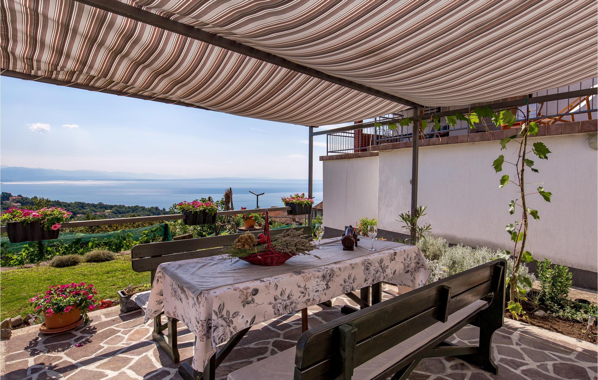 Diese geräumige und schön eingerichtete Ferienwohnung mit großer Terrasse mit herrlichem Meerblick ist die ideale Wahl für einen entspannten Aufenthalt. Der Gemeinschaftspool bietet Badespaß pur an, wobei Sie auf der Terrasse mit Sonneliegen den Blick auf die Natur und Meer genießen können. Eine zusätzliche Außentoilette steht Ihnen zur Verfügung. Der nächste Kiesstrand ist mit der Blauen Flagge gekennzeichnet, die die Reinheit des Meeres garantiert. Die Riviera von Opatija bietet zahlreiche schöne Buchten. Entlang der Küste genießen Sie die Landschaft, Sportmöglichkeiten und das reichhaltige gastronomische Angebot. Wählen Sie den heißesten Tag, um das angenehme Klima des Naturparks Ucka zu genießen und besuchen Sie die nahe gelegenen schönen Inseln Cres und Krk.