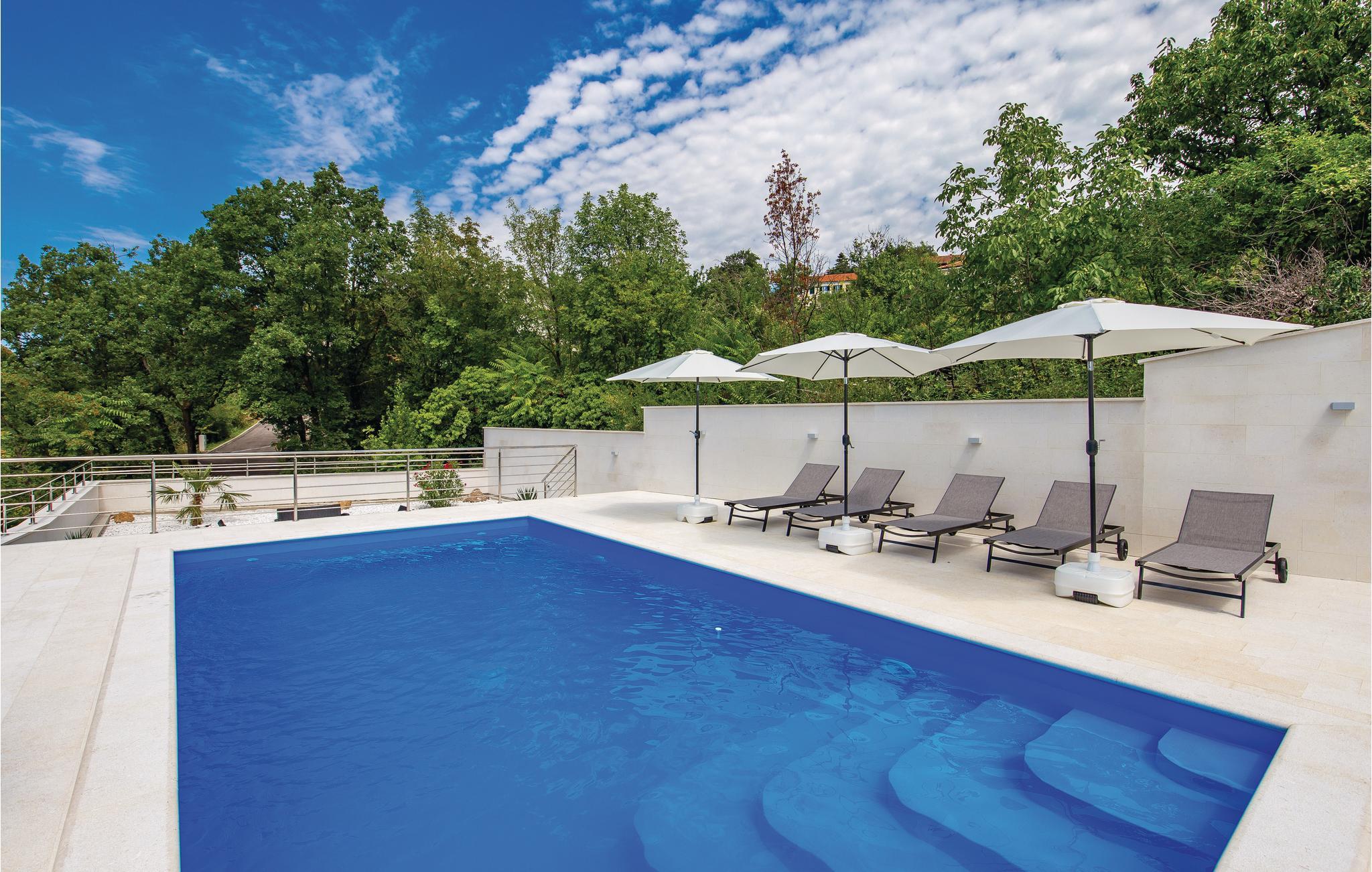 Das moderne Ferienhaus mit Garten befindet sich in der Gegend von Kastav, oberhalb der Riviera von Opatija. Es gibt einen Pool für eine Erfrischung an heißen Sommertagen und eine Terrassen mit Grill zum Entspannen. Im Keller können Sie Ihre Fähigkeiten beim Darts oder Tischfußball testen. Im erhöhten Erdgeschoss, das über eine Treppe erreicht wird, gibt es einen Wohnbereich mit Küche, Esszimmer und Schlafzimmer. Sie können einen bezaubernden Panoramablick auf das Meer, die Kvarner-Bucht und die Städte Rijeka und Opatija genießen. Testen Sie die Sportangeboten in der nahe gelegenen Stadt Kastav.