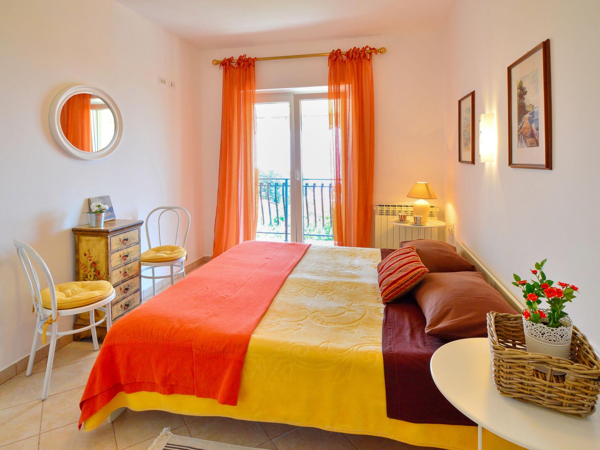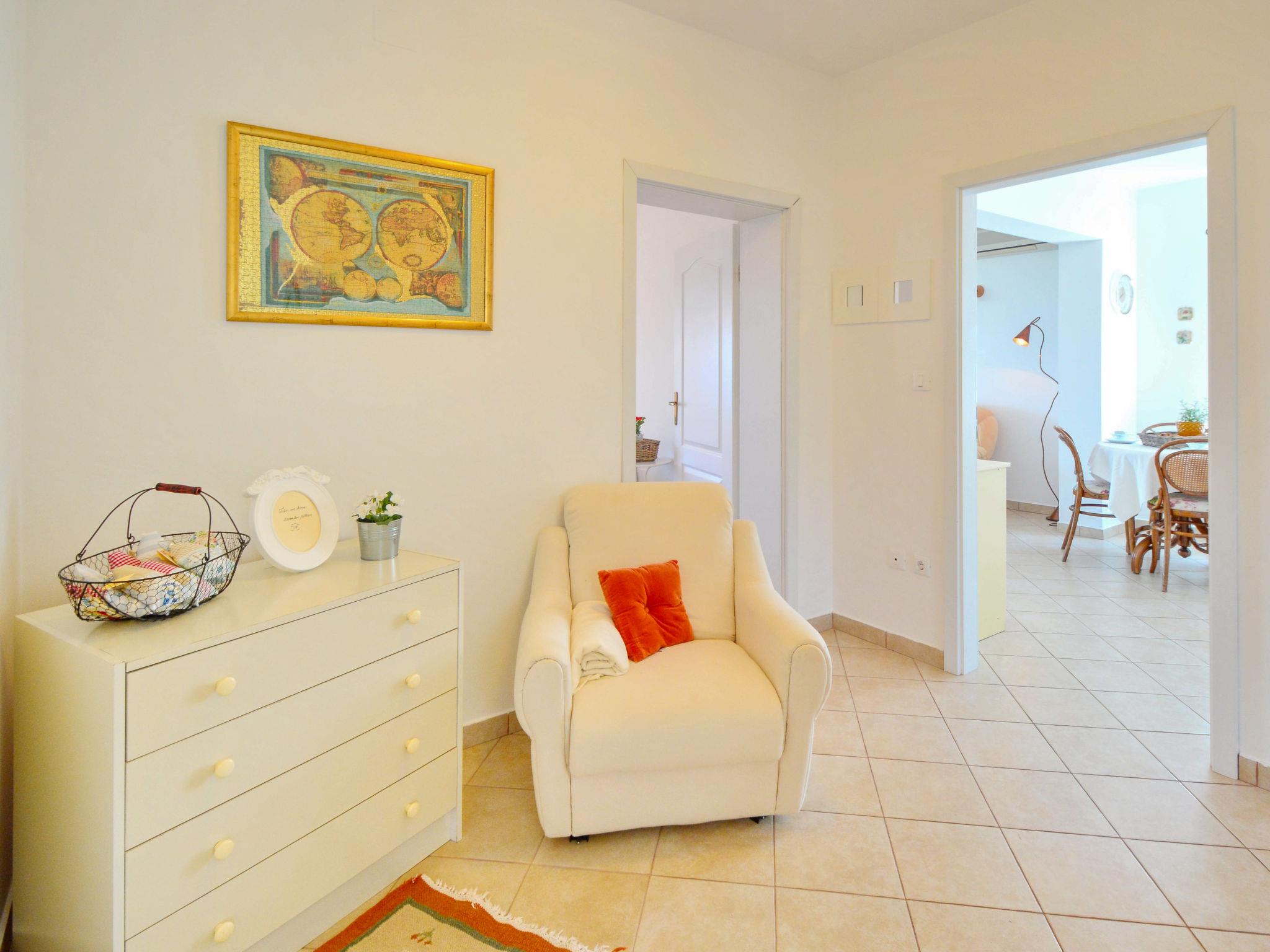 2-Zimmer-Wohnung 48 m2 im 2. Stock, Südlage. Wohn-/Esszimmer 26 m2 mit 1 Doppeldiwanbett (140 cm, Länge 180 cm), Sat-TV (Flachbildschirm), Klimaanlage. Ausgang zum Balkon. 1 Zimmer mit 1 Doppelbett (2 x 90 cm, Länge 190 cm). Ausgang zum Balkon. Offene Küche (2 Kochplatten, Backofen, Geschirrspüler, 2 Glaskeramikplatten, Mikrowelle, elektrische Kaffeemaschine). Dusche/Bidet/WC. Klimaanlage (extra). Keine Heizmöglichkeit. Balkon 8 m2. Balkonmöbel. Schöne Panoramasicht auf das Meer und die Ortschaft. Zur Verfügung: Waschmaschine. Internet (WLAN, gratis). Maximal 1 Haustier/Hund erlaubt.