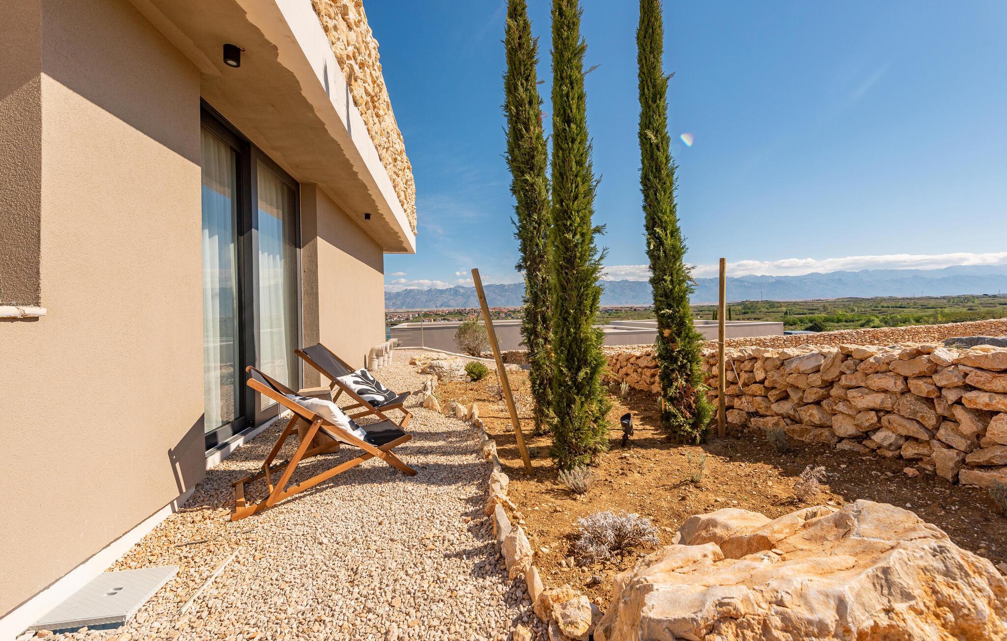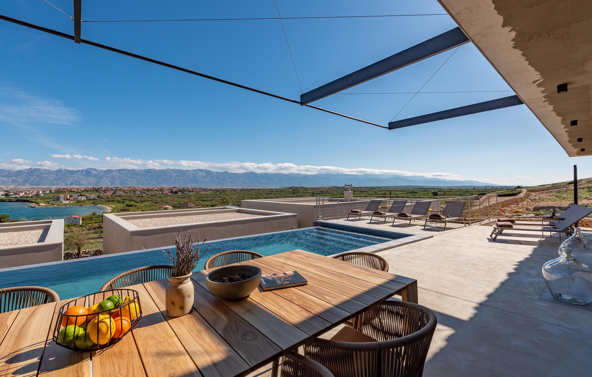 Ihr Ferienhaus bietet Ihnen zeitgemäßen Komfort und eine entspannte Atmosphäre, die wie geschaffen für einen gelungenen Familienurlaub ist. Nach einer geruhsamen Nacht eröffnen Ihnen die großen Fenster einen herrlichen Blick auf das glitzernde Blau der Adria. Frühstücken Sie am schönen Holztisch neben der Küche oder auf der gemütlichen Terrasse, die Ihnen neben vielen Sitzgelegenheiten auch einen sagenhaften Blick auf das Meer bietet. Genießen Sie die frische Luft und die malerische Aussicht, bevor Sie sich im Pool abkühlen. Oder gehen Sie zum Strand und verleben Sie hier einen unterhaltsamen Tag voller Badespaß.