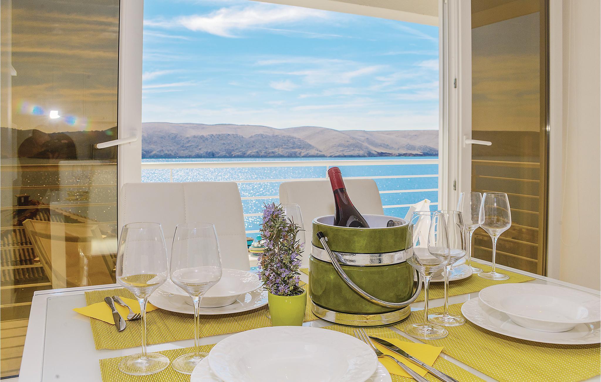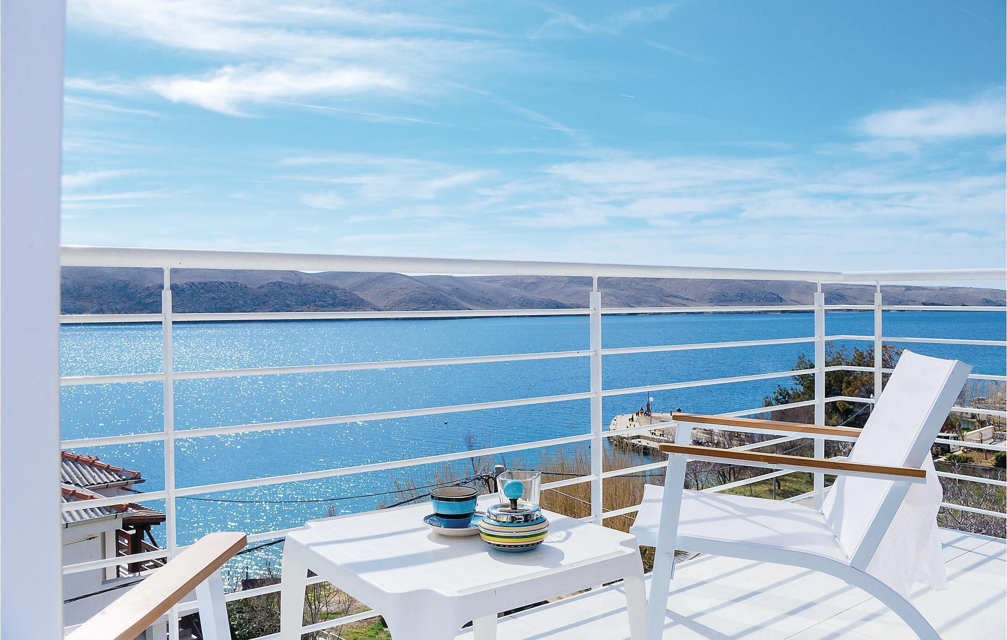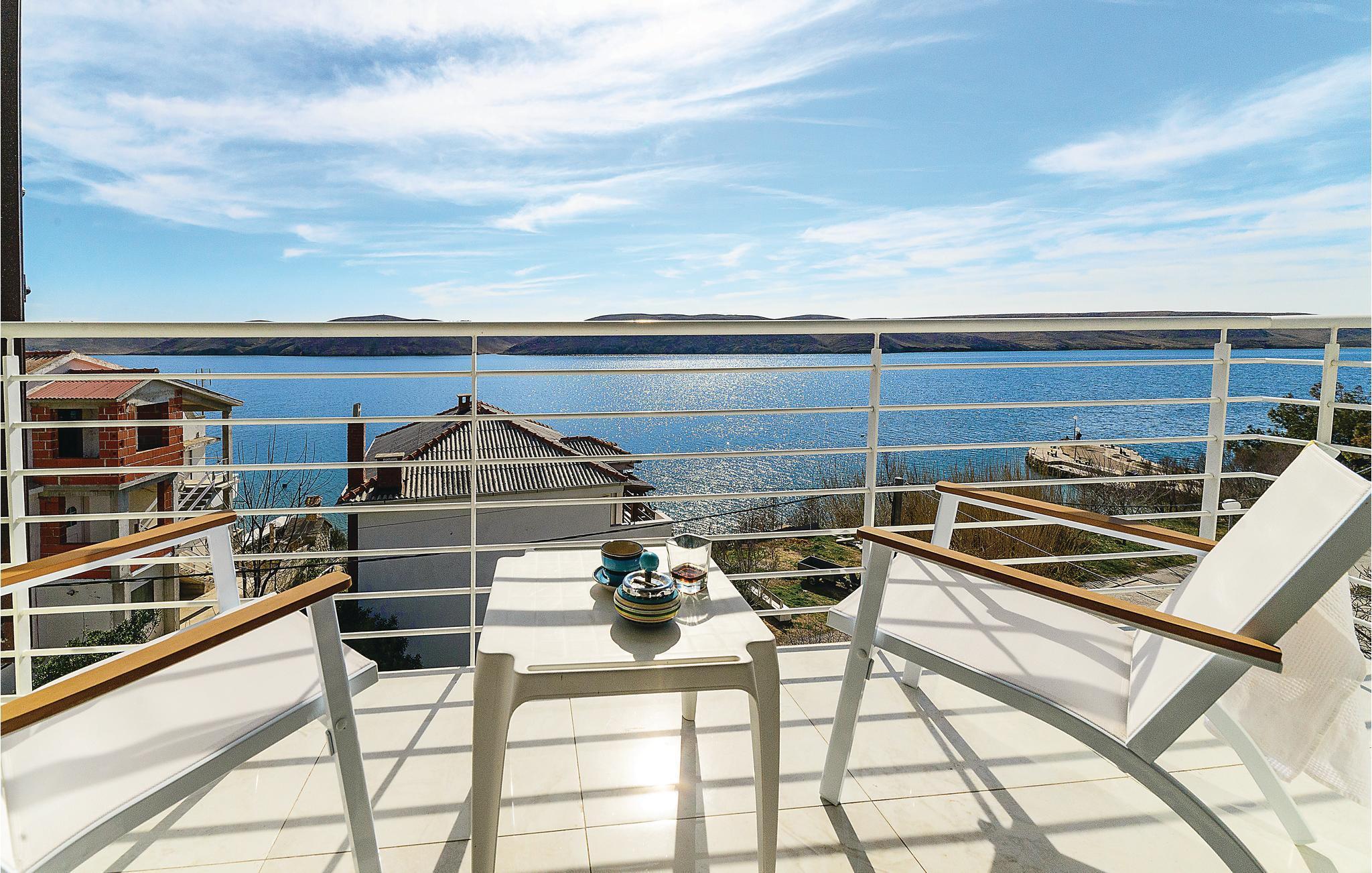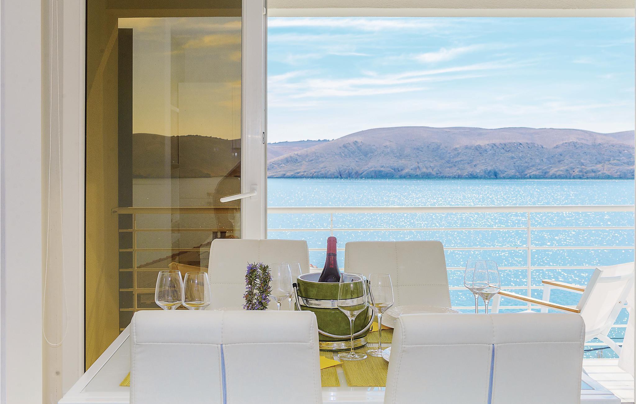 Erholen Sie sich in der wunderschönen und modern eingerichteten Ferienwohnung, die sich über zwei Etagen erstreckt. Auf der ersten Etage gibt es ein Schlafzimmer mit herrlichem Meerblick, ein Badezimmer und eine Küche mit Wohnzimmer. Von hier aus können Sie die Aussicht über den Kiesstrand und den Kinderspielplatz genießen. Über Innentreppen gelangen Sie auf die zweite Etage mit der Galerie, die niedrigste Deckenhöhe ist ca. 80 cm. In der Galerie gibt es einen offenen Schlafraum mit Sofas. In der Nähe des Strandes gibt es ein Restaurant. Besuchen Sie die Stadt Pag und kosten Sie die traditionelle Küche.