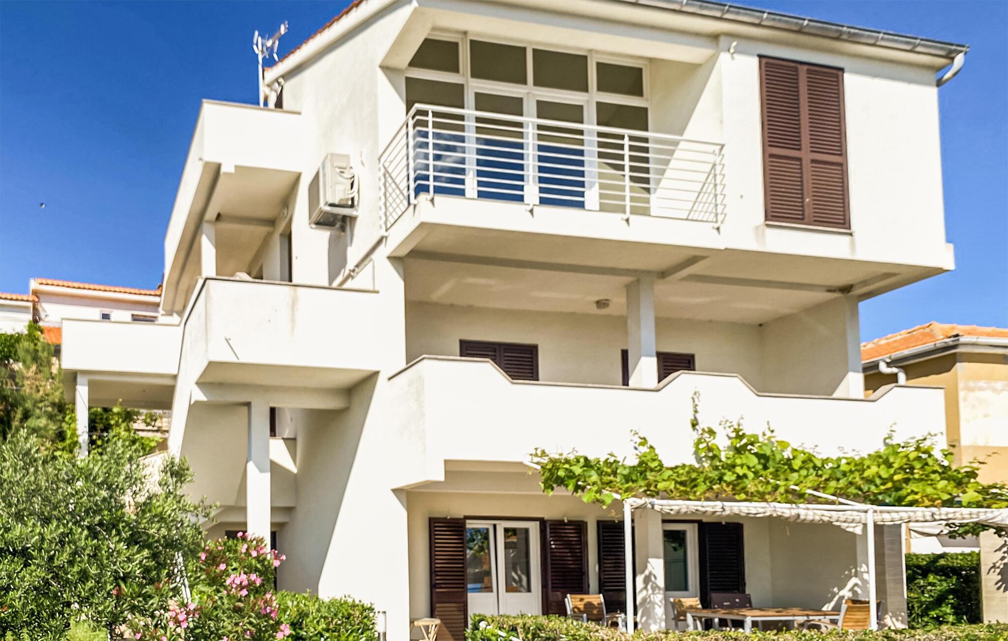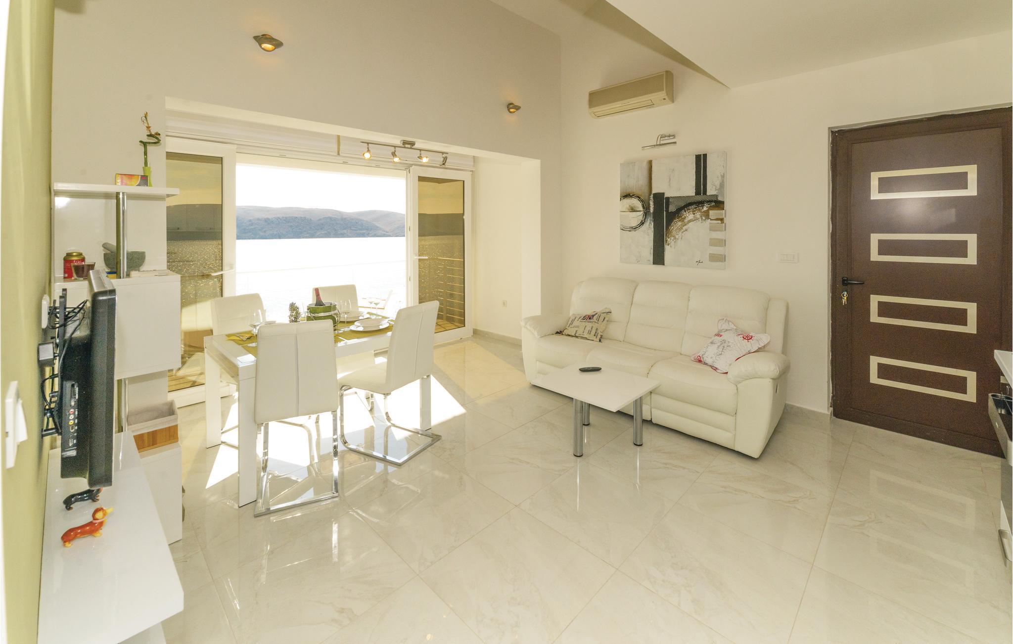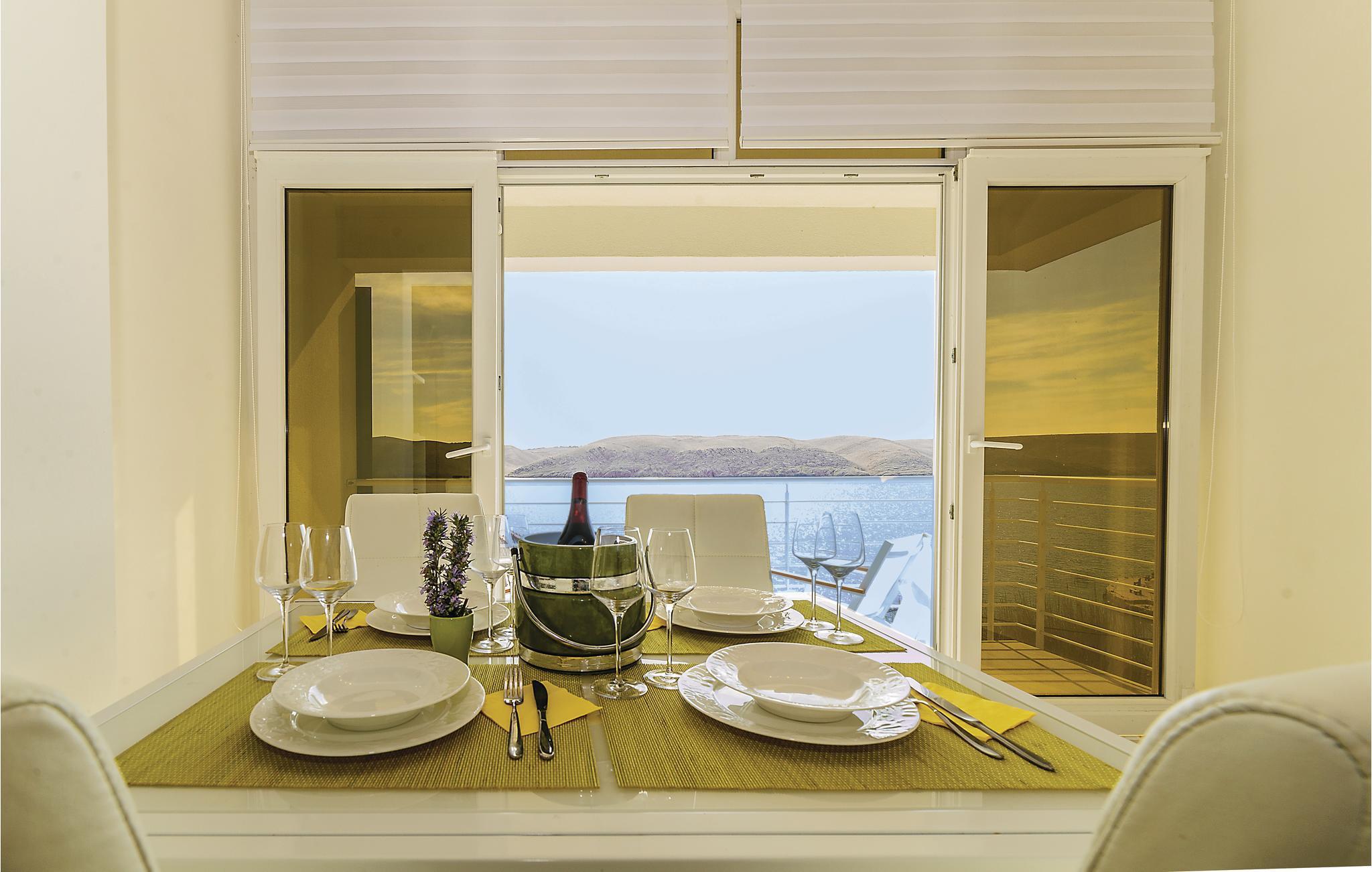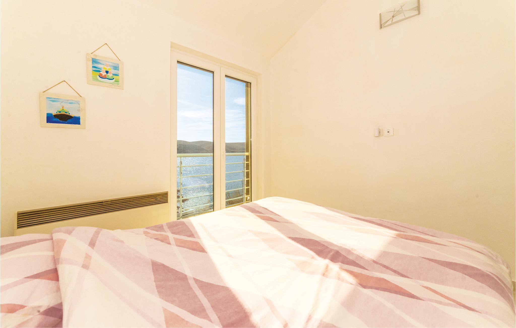 Erholen Sie sich in der wunderschönen und modern eingerichteten Ferienwohnung, die sich über zwei Etagen erstreckt. Auf der ersten Etage gibt es ein Schlafzimmer mit herrlichem Meerblick, ein Badezimmer und eine Küche mit Wohnzimmer. Von hier aus können Sie die Aussicht über den Kiesstrand und den Kinderspielplatz genießen. Über Innentreppen gelangen Sie auf die zweite Etage mit der Galerie, die niedrigste Deckenhöhe ist ca. 80 cm. In der Galerie gibt es einen offenen Schlafraum mit Sofas. In der Nähe des Strandes gibt es ein Restaurant. Besuchen Sie die Stadt Pag und kosten Sie die traditionelle Küche.