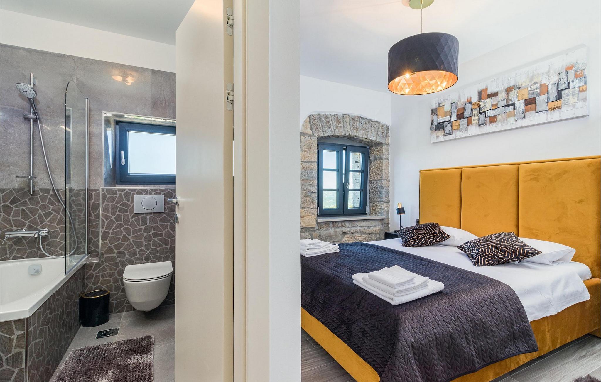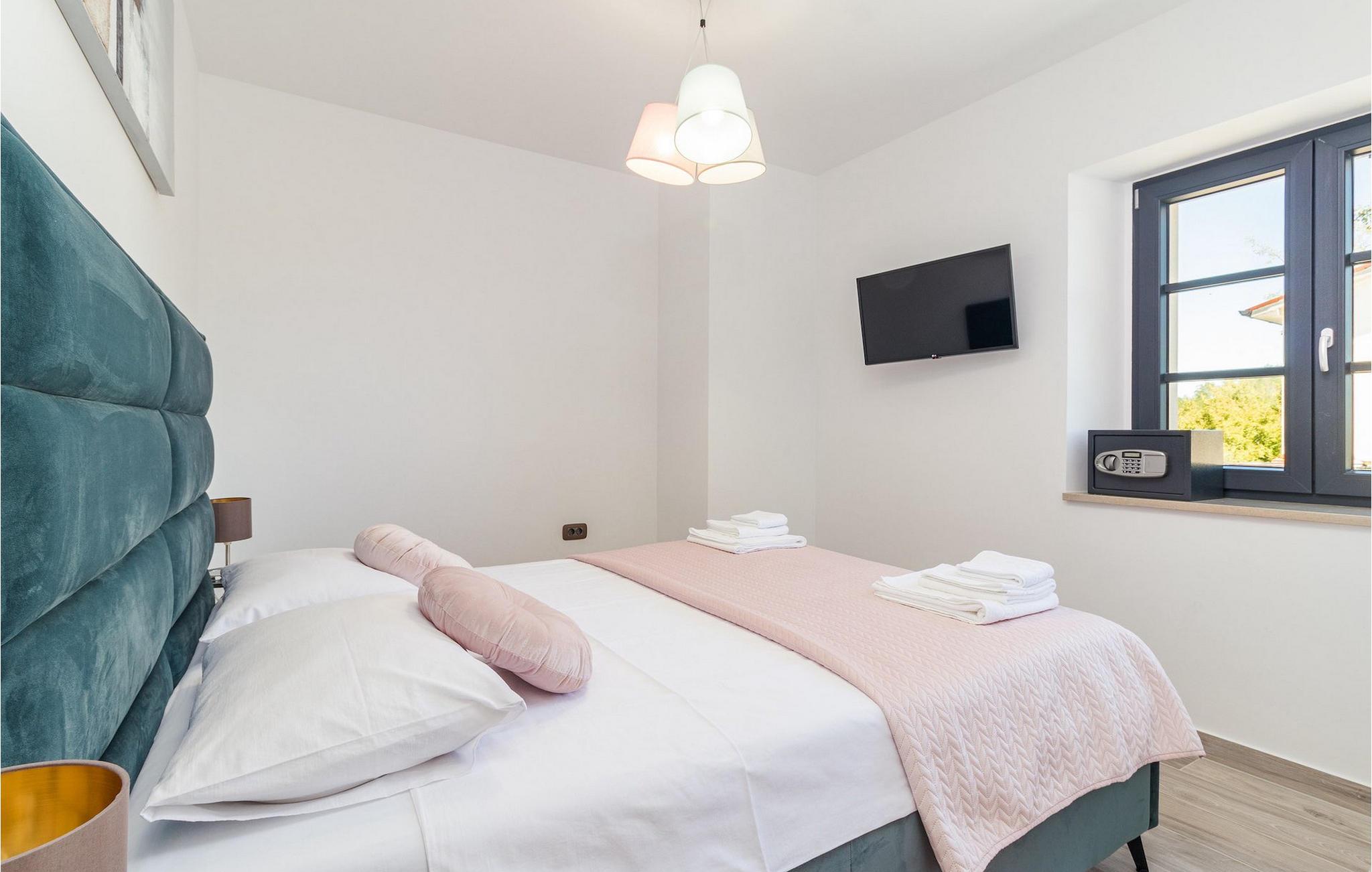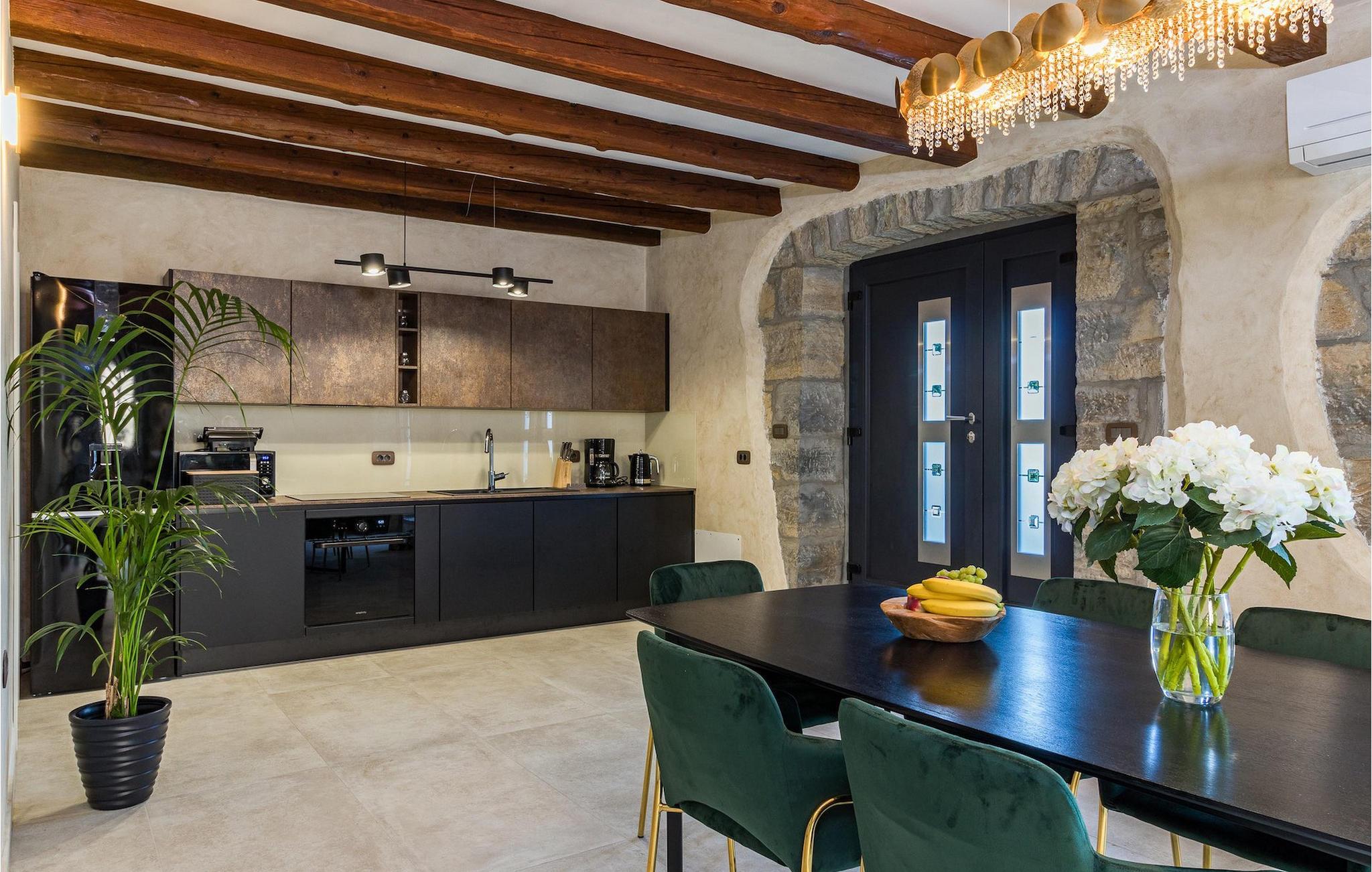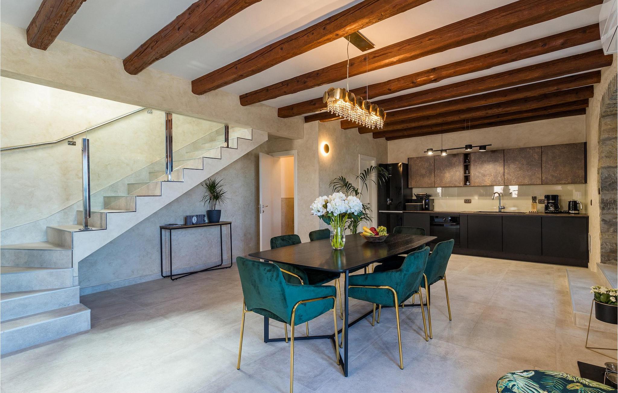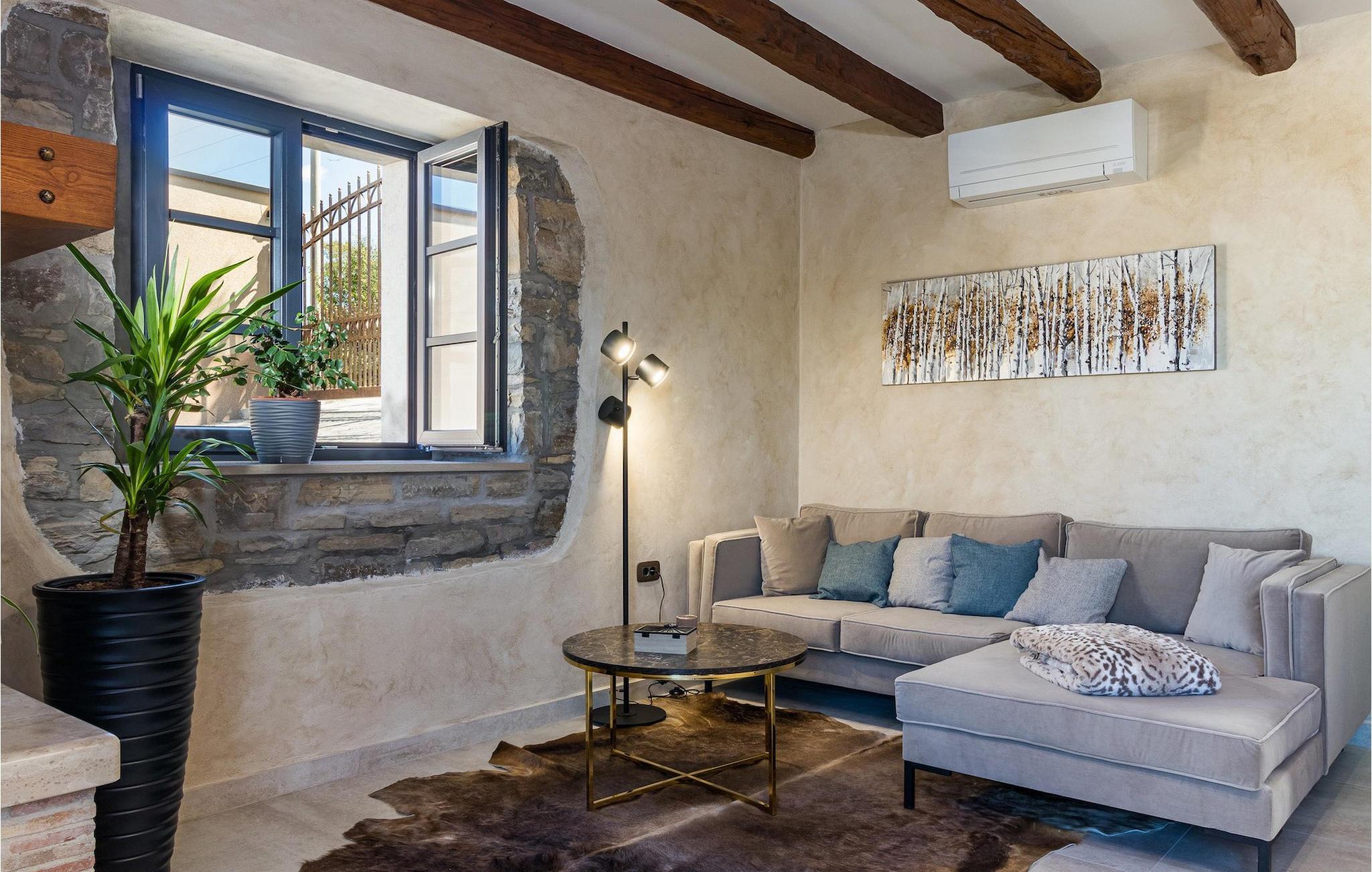 Träumen Sie von einer wunderschönen Villa in einem idyllischen, kleinen Dorf in Zentralistrien, umgeben von sanften Hügeln und viel Grün? Die Villa Grazia wird Ihre Träume wahr werden lassen. Dieses einzigartige Ferienhaus wurde früher als landwirtschaftliches Objekt genutzt und im Jahre 2021 mit viel Sorgfalt und Liebe zum Detail renoviert. Es kann bis zu sechs Personen beherbergen und verfügt über drei Schlafzimmer mit eigenen Badezimmern, ein Wohnzimmer und eine Küche mit Essbereich. Die drei stilvoll eingerichteten Schlafzimmer befinden sich im ersten Stockwerk, während der offen gestaltete Wohn-, Ess- und Kochbereich im Erdgeschoss liegt. Schon auf den ersten Blick fällt auf, dass bei der Einrichtung wirklich auf jedes Detail geachtet wurde. Die modernen, eleganten Möbel und die vielen antiken Elemente aus Holz und Stein sind perfekt aufeinander abgestimmt und verleihen diesem Ferienhaus eine wirklich einzigartige Atmosphäre.