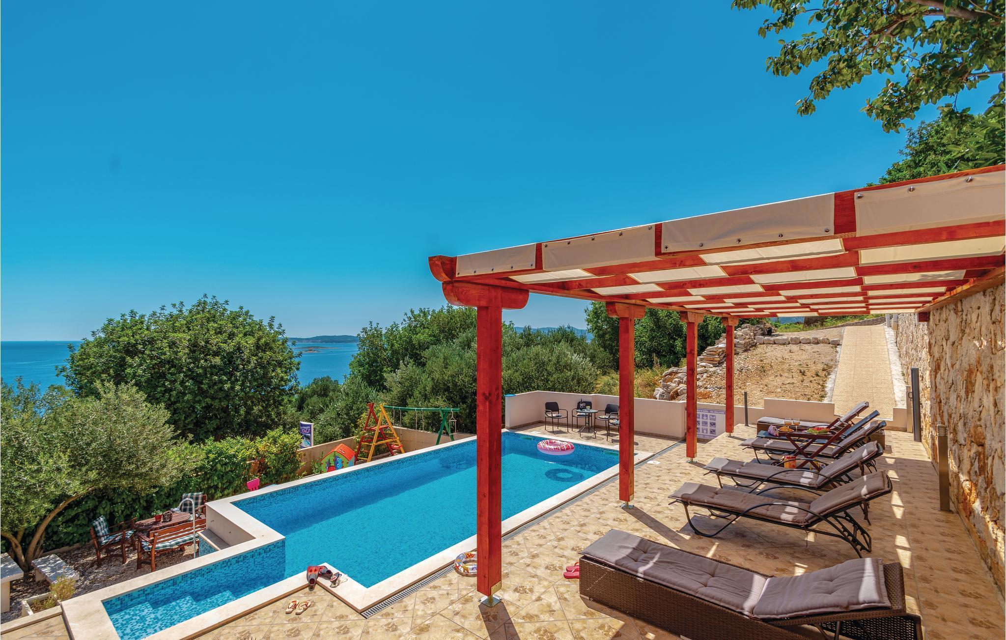 Diese moderne und hübsch eingerichtete Ferienwohnung befindet sich im ersten Stock mit zauberhafter Panoramaaussicht auf das Meer. Drei Schlafzimmer und zwei Bäder machen die Ferienwohnung gemütlich für den Urlaub einer großen Familie. Die Terrasse erstreckt sich am Wohnraum entlang und bietet einen schönen Ausblick nicht nur auf das Meer, sondern auch auf die Inselchen zwischen Peljesac und Korcula. Ihnen stehen noch zwei Parkplätze, ein Gemeinschaftsgrill und ein gemeinsamer Außenpool zur Verfügung. Die Halbinsel Peljesac ist für gute Muschelspeisen und sehr gute Weine berühmt. Machen Sie Ausflüge zu den grünen Inseln Korcula und Mljet.