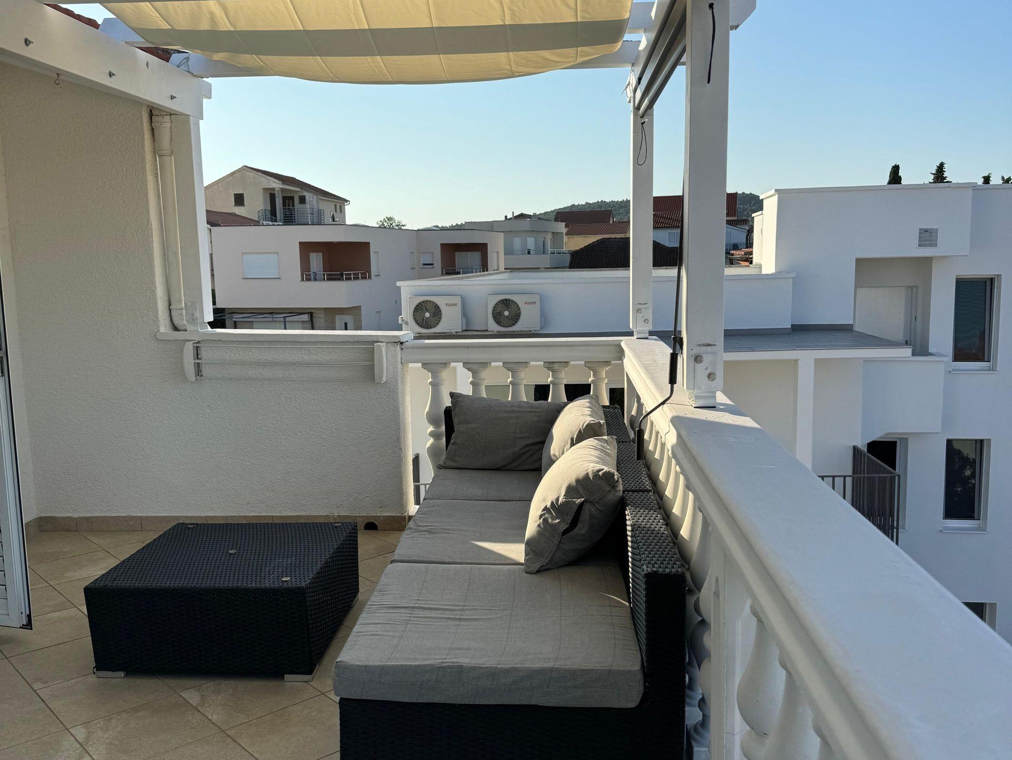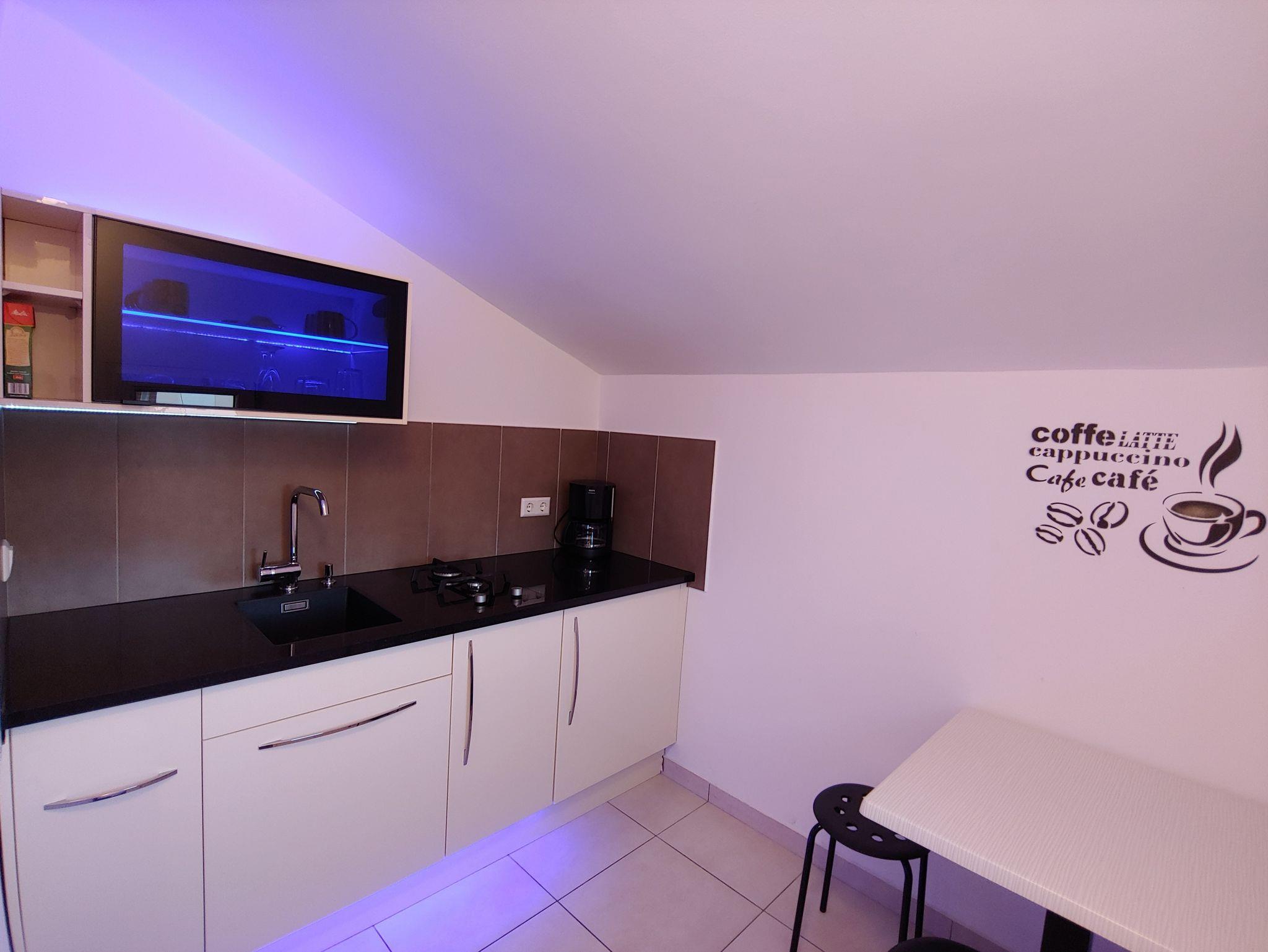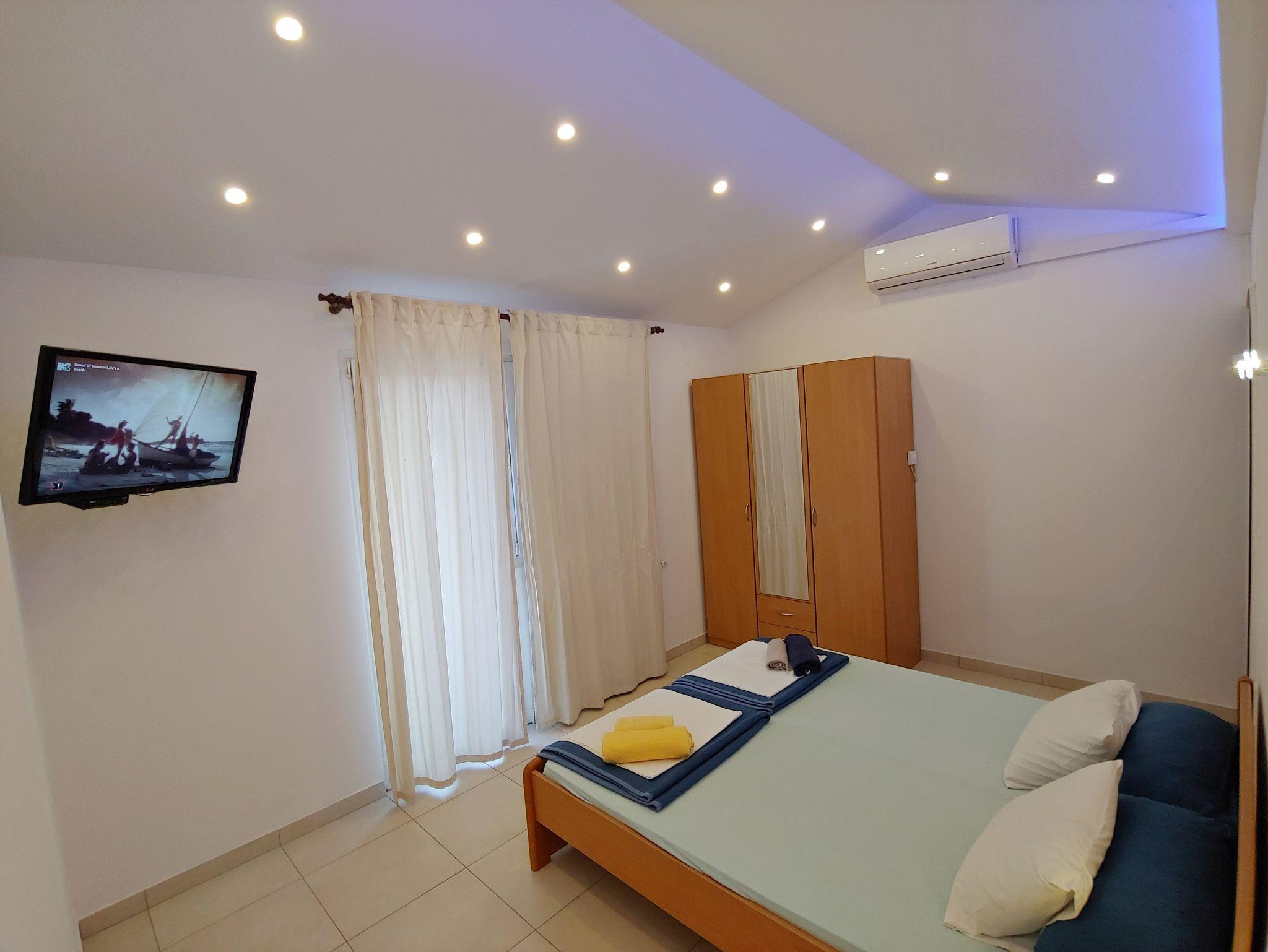 Studio bietet Platz für 2 Gäste. Die Betten sind in Schlafzimmern, die es 1 gibt, innerhalb einer Gesamtfläche von 22m2, angeordnet. Die Gäste haben eine eigene Terrasse zur Verfügung, auf der sie in warmen Sommernächten genießen können. Das Studio-Apartment bietet Meerblick. Es ist erlaubt, Speisen auf dem Gemeinschafts-Grill vorzubereiten. IM PREIS INBEGRIFFEN: Kurtaxe, Endreinigung, Klimatisierung, Parkplatz, Internet, Kinderbett, Bügeleisen. VERBINDLICHE ZUSÄTZLICHE KOSTEN: Aufzahlung für Kurzaufenthalte (prozentualer Zuschlag pro Nächtigungsanzahl: 30% - 1, 20% - 2, 10% - 3). Die Verfügbarkeit zusätzlicher Dienstleistungen in Ihrem reservierten Termin und die Preise derselben (falls nicht aufgeführt) müssen im Voraus überprüft werden. Zusätzliche Dienstleistungen die in der Zahlungsaufforderung nicht aufgeführt sind werden direkt beim Vermieter bezahlt, angenommen der Gast nutzt auch diese.