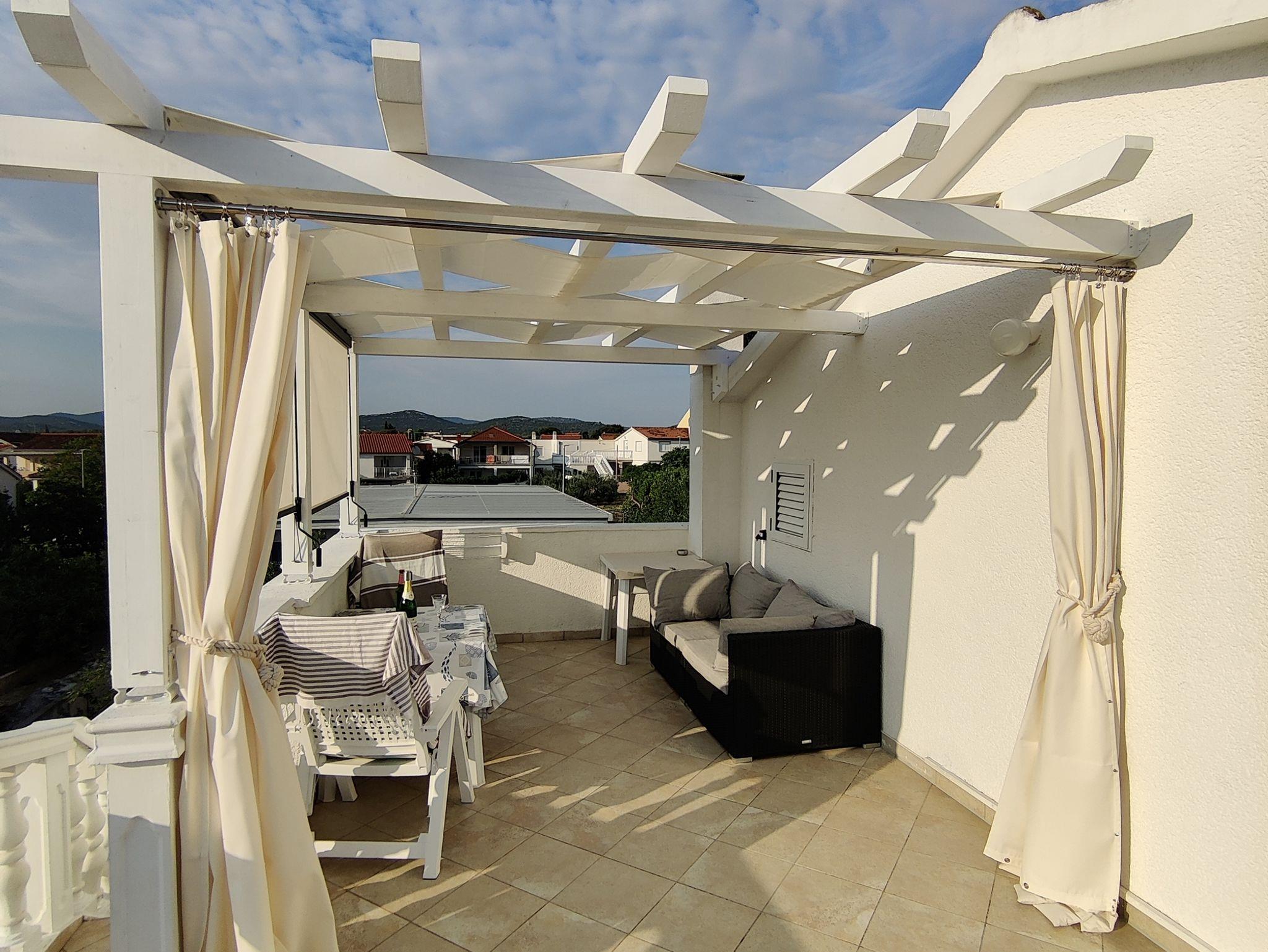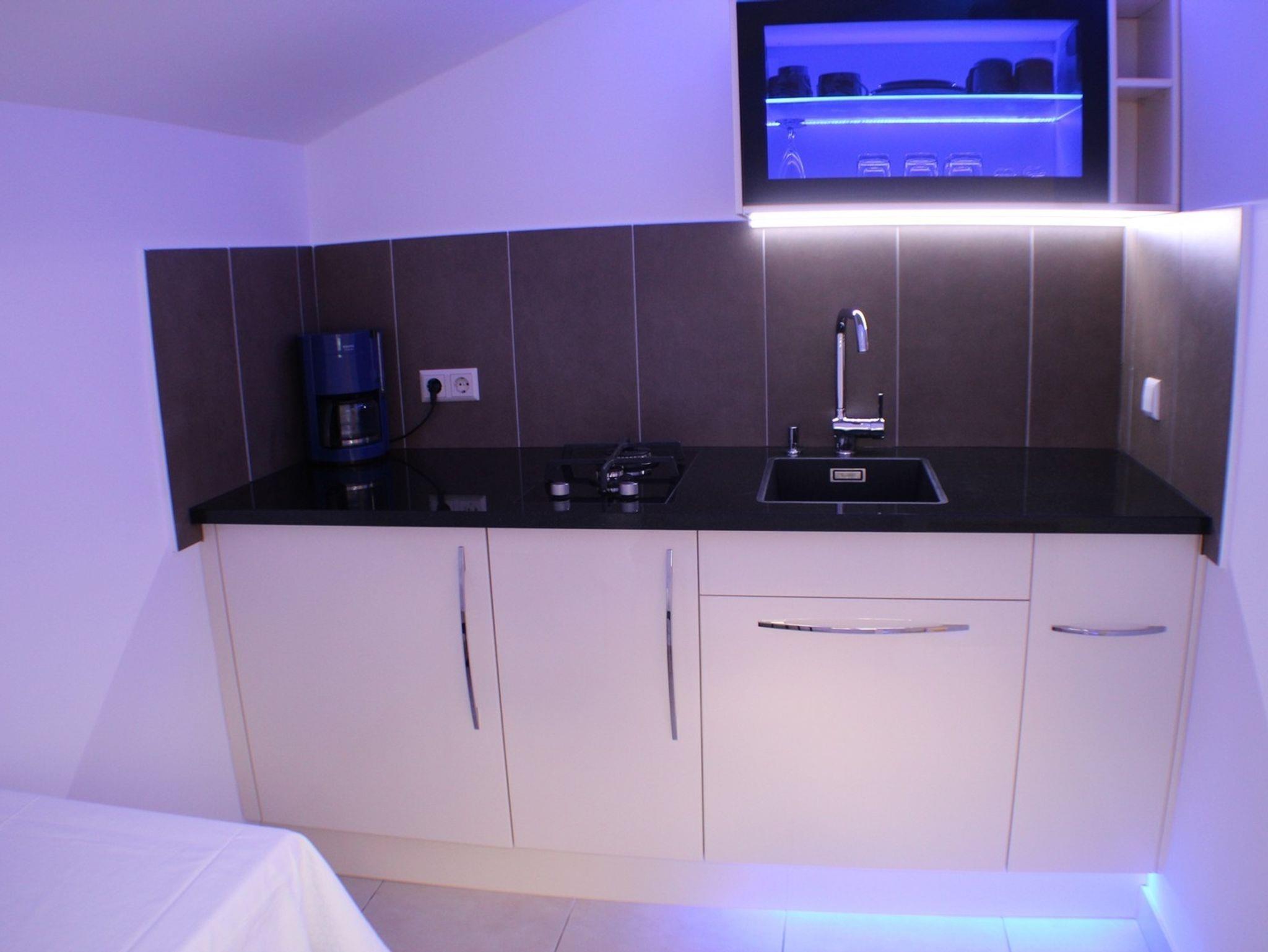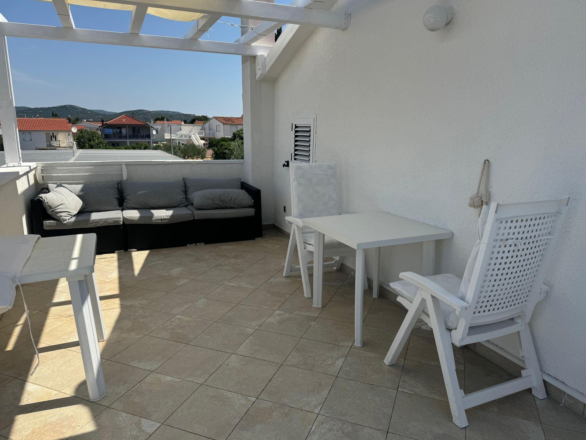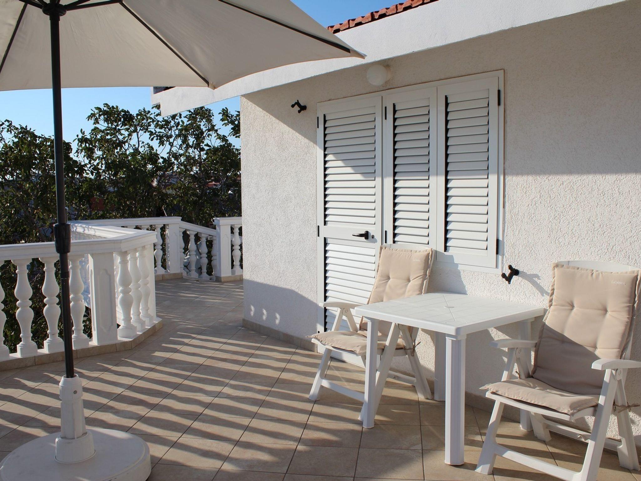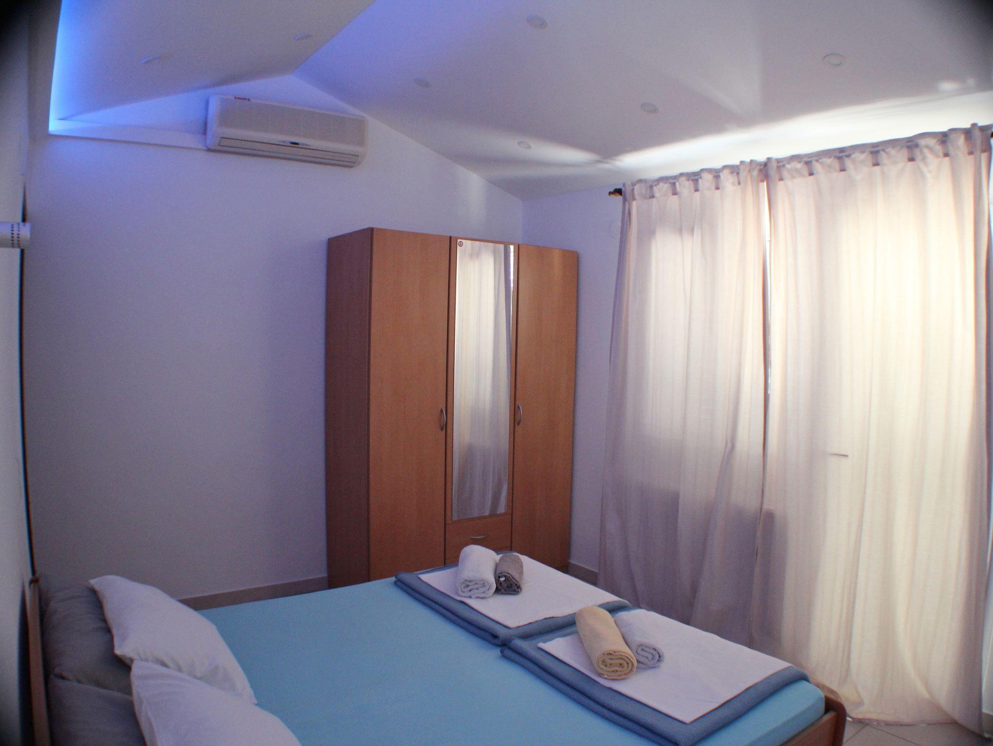 Studio bietet Platz für 2 Gäste. Die Betten sind in Schlafzimmern, die es 1 gibt, innerhalb einer Gesamtfläche von 22m2, angeordnet. Die Gäste haben eine eigene Terrasse zur Verfügung, auf der sie in warmen Sommernächten genießen können. Das Studio-Apartment bietet Meerblick. Es ist erlaubt, Speisen auf dem Gemeinschafts-Grill vorzubereiten. IM PREIS INBEGRIFFEN: Kurtaxe, Endreinigung, Klimatisierung, Parkplatz, Internet, Kinderbett, Bügeleisen. VERBINDLICHE ZUSÄTZLICHE KOSTEN: Aufzahlung für Kurzaufenthalte (prozentualer Zuschlag pro Nächtigungsanzahl: 30% - 1, 20% - 2, 10% - 3). Die Verfügbarkeit zusätzlicher Dienstleistungen in Ihrem reservierten Termin und die Preise derselben (falls nicht aufgeführt) müssen im Voraus überprüft werden. Zusätzliche Dienstleistungen die in der Zahlungsaufforderung nicht aufgeführt sind werden direkt beim Vermieter bezahlt, angenommen der Gast nutzt auch diese.
