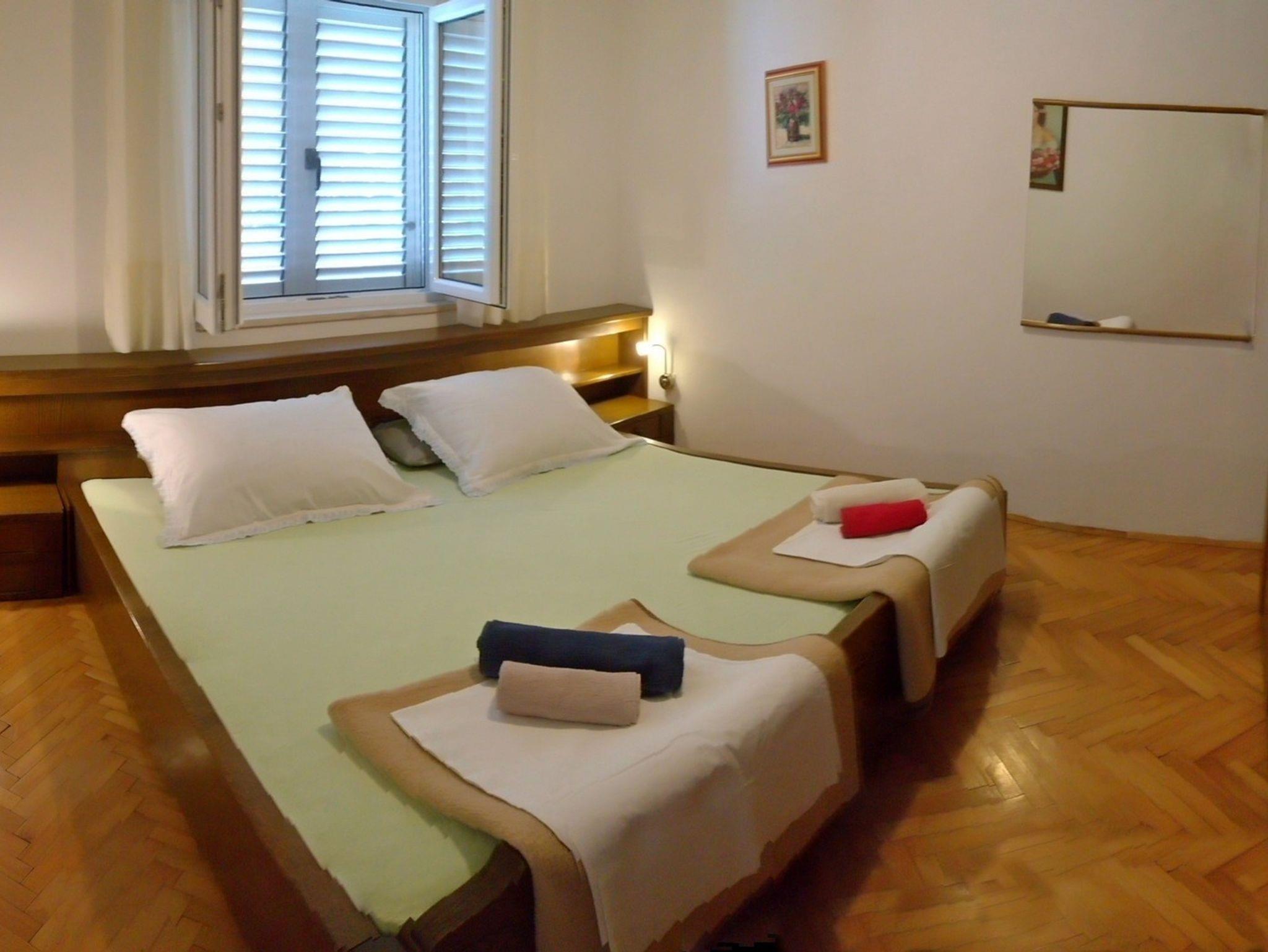 Ferienwohnung bietet Platz für 6 Gäste. Die Betten sind in Schlafzimmern, die es 3 gibt, innerhalb einer Gesamtfläche von 66m2, angeordnet. Die Gäste haben eine eigene Terrasse zur Verfügung, auf der sie in warmen Sommernächten genießen können. Es ist erlaubt, Speisen auf dem Gemeinschafts-Grill vorzubereiten. IM PREIS INBEGRIFFEN: Kurtaxe, Endreinigung, Klimatisierung, Parkplatz, Internet, Kinderbett, Bügeleisen. VERBINDLICHE ZUSÄTZLICHE KOSTEN: Aufzahlung für Kurzaufenthalte (prozentualer Zuschlag pro Nächtigungsanzahl: 30% - 1, 20% - 2, 10% - 3). Die Verfügbarkeit zusätzlicher Dienstleistungen in Ihrem reservierten Termin und die Preise derselben (falls nicht aufgeführt) müssen im Voraus überprüft werden. Zusätzliche Dienstleistungen die in der Zahlungsaufforderung nicht aufgeführt sind werden direkt beim Vermieter bezahlt, angenommen der Gast nutzt auch diese.