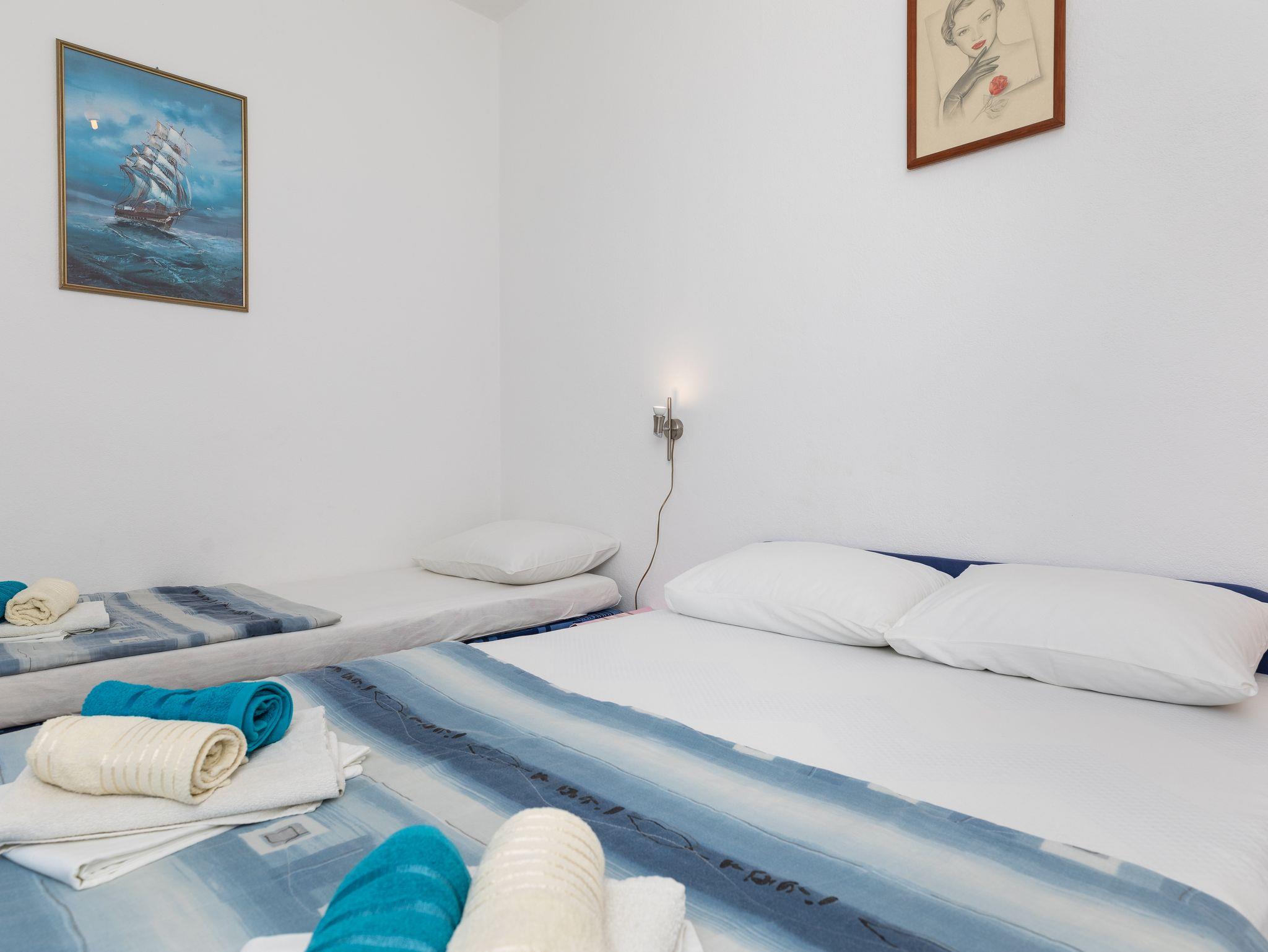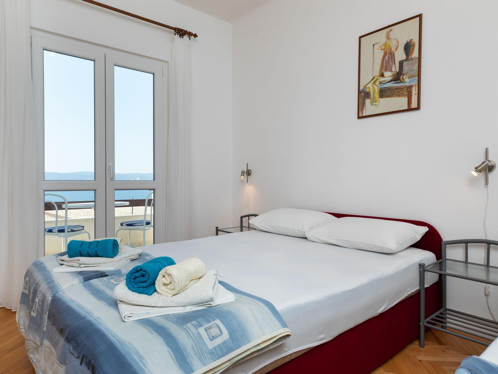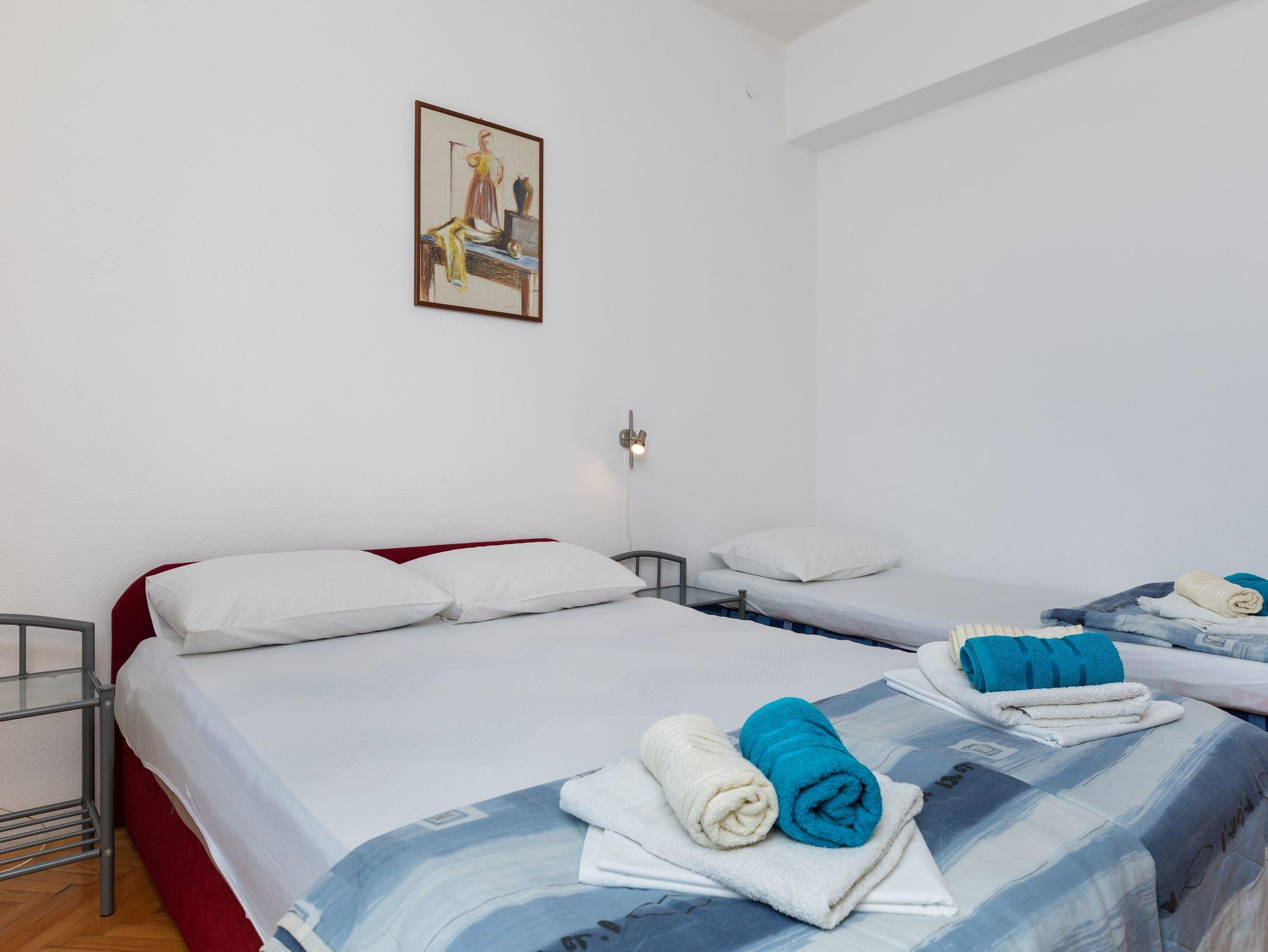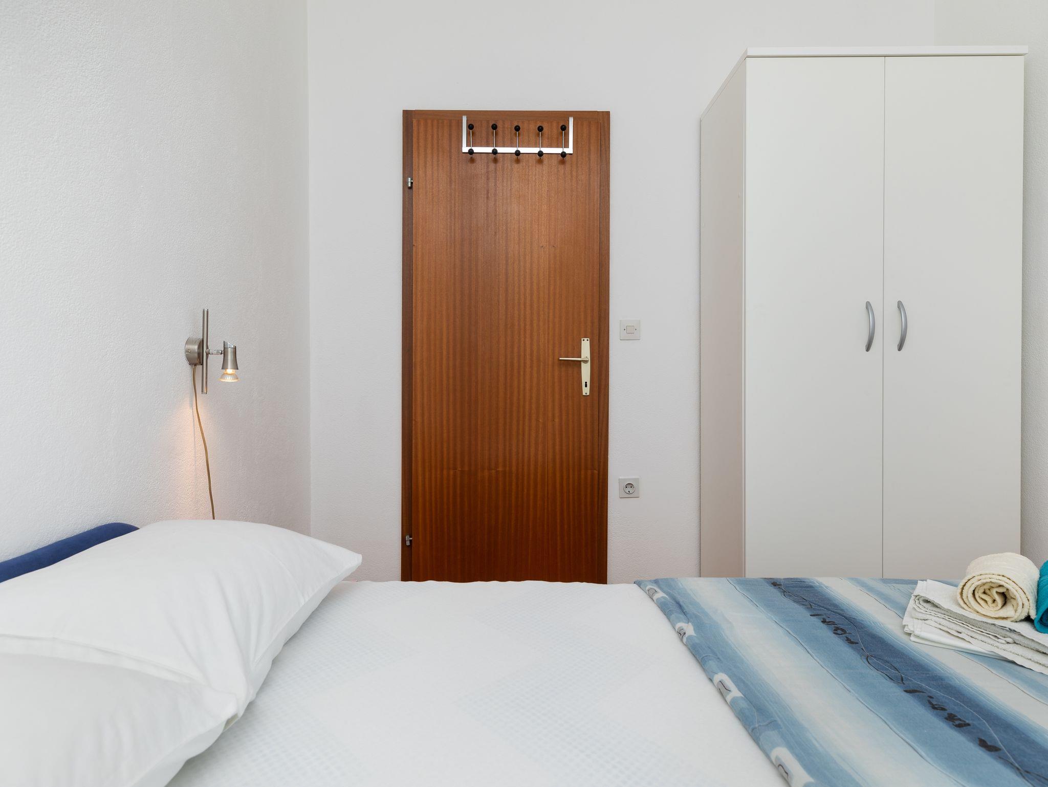 Ferienwohnung bietet Platz für 6 Gäste. Die Betten sind in Schlafzimmern, die es 2 gibt, innerhalb einer Gesamtfläche von 38m2, angeordnet. Die Gäste haben eine eigene Terrasse zur Verfügung, auf der sie in warmen Sommernächten genießen können. Das Apartment bietet Meerblick. Es ist erlaubt, Speisen auf dem Gemeinschafts-Grill vorzubereiten. In der Unterkunftseinheit besteht die Möglichkeit des Mitbringens von Haustieren gegen Aufpreis. IM PREIS INBEGRIFFEN: Kurtaxe, Endreinigung, Klimatisierung, Parkplatz, Internet. VERBINDLICHE ZUSÄTZLICHE KOSTEN: Aufzahlung für Kurzaufenthalte (prozentualer Zuschlag pro Nächtigungsanzahl: 30% - 1, 20% - 2, 10% - 3). UNVERBINDLICHE ZUSÄTZLICHE KOSTEN: Haustiere (8,00 € pro Nacht). Die Verfügbarkeit zusätzlicher Dienstleistungen in Ihrem reservierten Termin und die Preise derselben (falls nicht aufgeführt) müssen im Voraus überprüft werden. Zusätzliche Dienstleistungen die in der Zahlungsaufforderung nicht aufgeführt sind werden direkt beim Vermieter bezahlt, angenommen der Gast nutzt auch diese.
