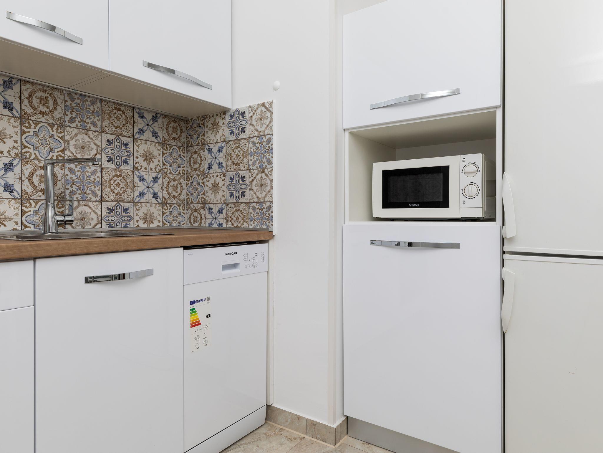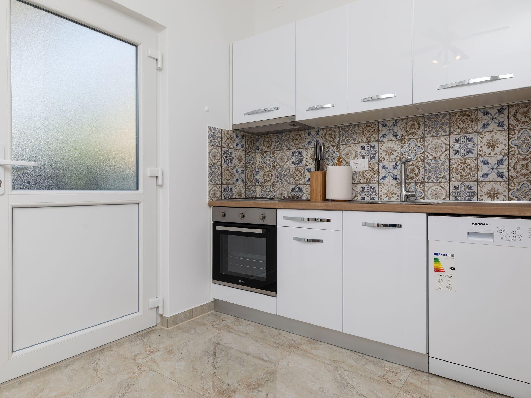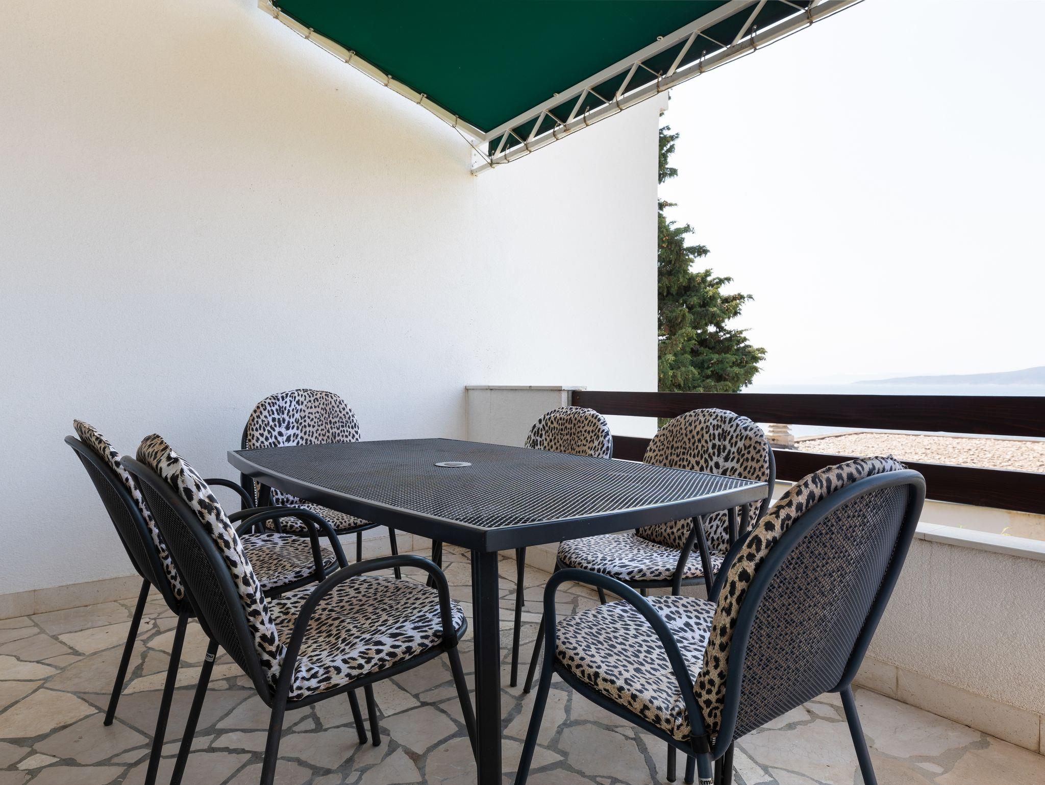 Ferienwohnung bietet Platz für 6 Gäste. Die Betten sind in Schlafzimmern, die es 2 gibt, innerhalb einer Gesamtfläche von 38m2, angeordnet. Die Gäste haben eine eigene Terrasse zur Verfügung, auf der sie in warmen Sommernächten genießen können. Das Apartment bietet Meerblick. Es ist erlaubt, Speisen auf dem Gemeinschafts-Grill vorzubereiten. In der Unterkunftseinheit besteht die Möglichkeit des Mitbringens von Haustieren gegen Aufpreis. IM PREIS INBEGRIFFEN: Kurtaxe, Endreinigung, Klimatisierung, Parkplatz, Internet. VERBINDLICHE ZUSÄTZLICHE KOSTEN: Aufzahlung für Kurzaufenthalte (prozentualer Zuschlag pro Nächtigungsanzahl: 30% - 1, 20% - 2, 10% - 3). UNVERBINDLICHE ZUSÄTZLICHE KOSTEN: Haustiere (8,00 € pro Nacht). Die Verfügbarkeit zusätzlicher Dienstleistungen in Ihrem reservierten Termin und die Preise derselben (falls nicht aufgeführt) müssen im Voraus überprüft werden. Zusätzliche Dienstleistungen die in der Zahlungsaufforderung nicht aufgeführt sind werden direkt beim Vermieter bezahlt, angenommen der Gast nutzt auch diese.