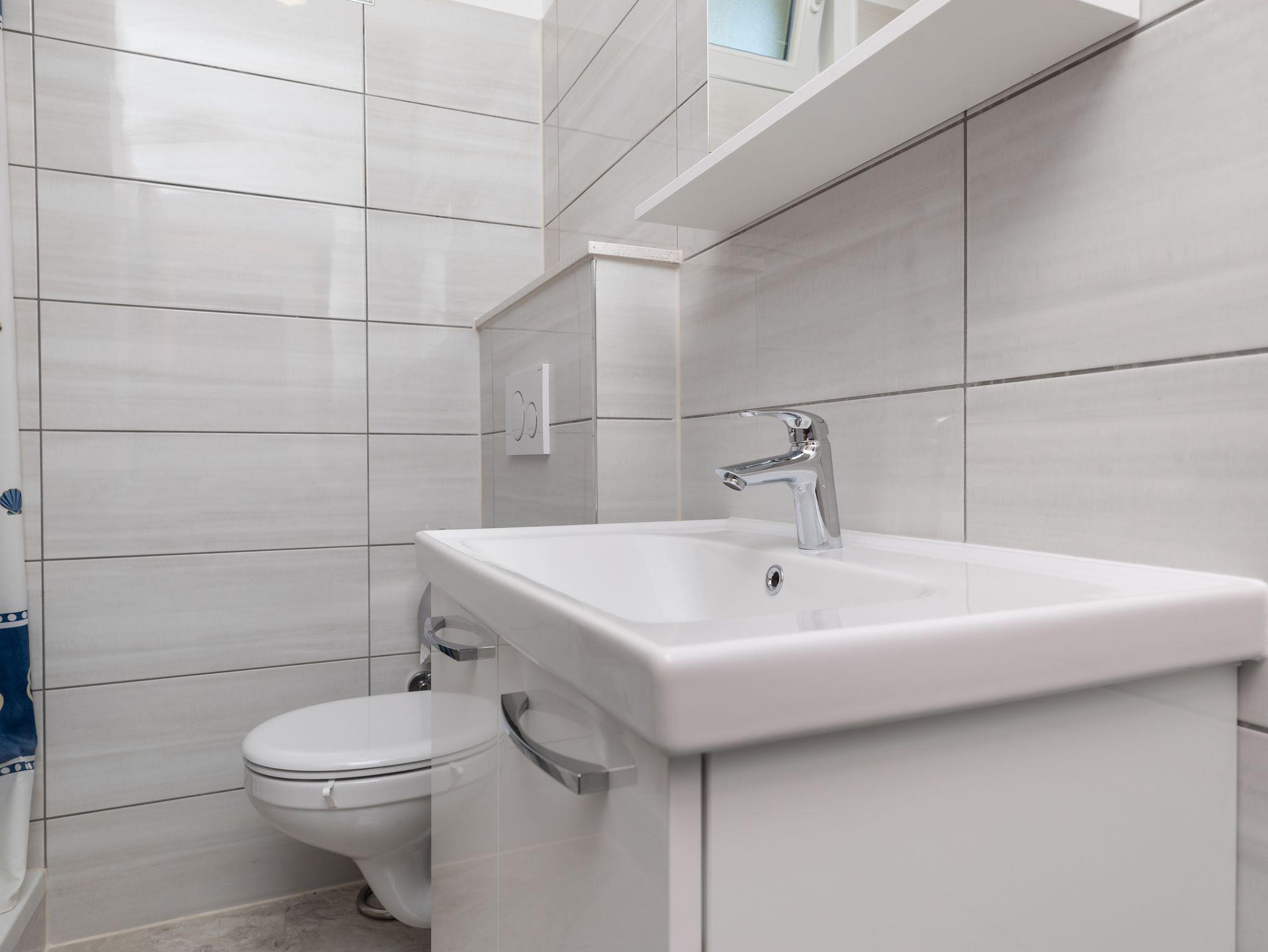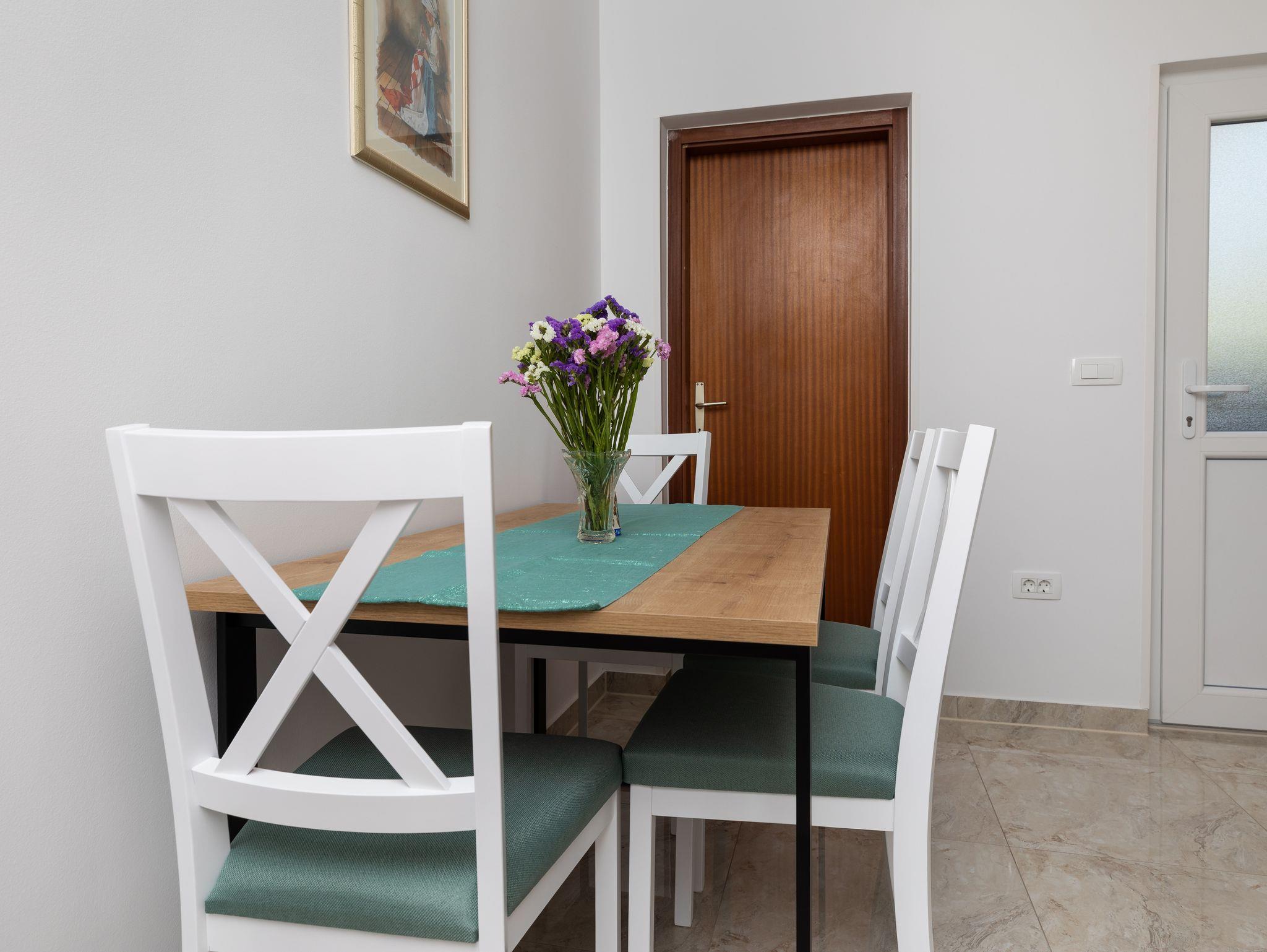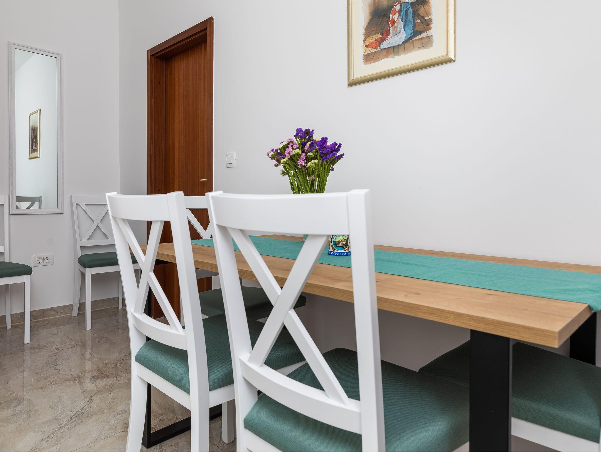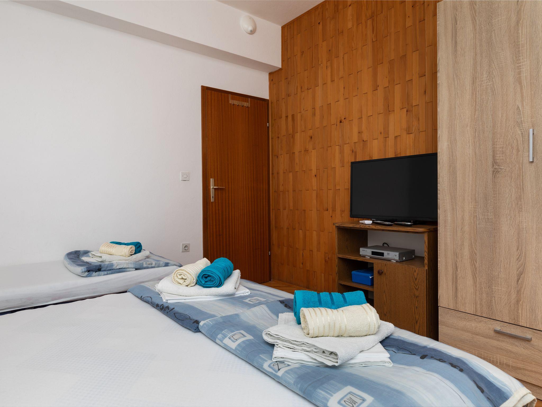 Ferienwohnung bietet Platz für 6 Gäste. Die Betten sind in Schlafzimmern, die es 2 gibt, innerhalb einer Gesamtfläche von 38m2, angeordnet. Die Gäste haben eine eigene Terrasse zur Verfügung, auf der sie in warmen Sommernächten genießen können. Das Apartment bietet Meerblick. Es ist erlaubt, Speisen auf dem Gemeinschafts-Grill vorzubereiten. In der Unterkunftseinheit besteht die Möglichkeit des Mitbringens von Haustieren gegen Aufpreis. IM PREIS INBEGRIFFEN: Kurtaxe, Endreinigung, Klimatisierung, Parkplatz, Internet. VERBINDLICHE ZUSÄTZLICHE KOSTEN: Aufzahlung für Kurzaufenthalte (prozentualer Zuschlag pro Nächtigungsanzahl: 30% - 1, 20% - 2, 10% - 3). UNVERBINDLICHE ZUSÄTZLICHE KOSTEN: Haustiere (8,00 € pro Nacht). Die Verfügbarkeit zusätzlicher Dienstleistungen in Ihrem reservierten Termin und die Preise derselben (falls nicht aufgeführt) müssen im Voraus überprüft werden. Zusätzliche Dienstleistungen die in der Zahlungsaufforderung nicht aufgeführt sind werden direkt beim Vermieter bezahlt, angenommen der Gast nutzt auch diese.