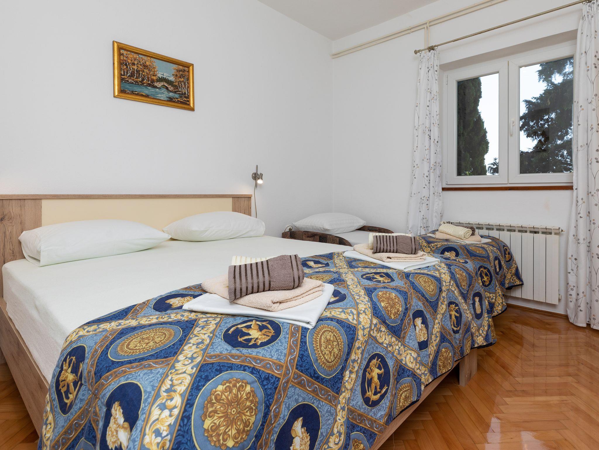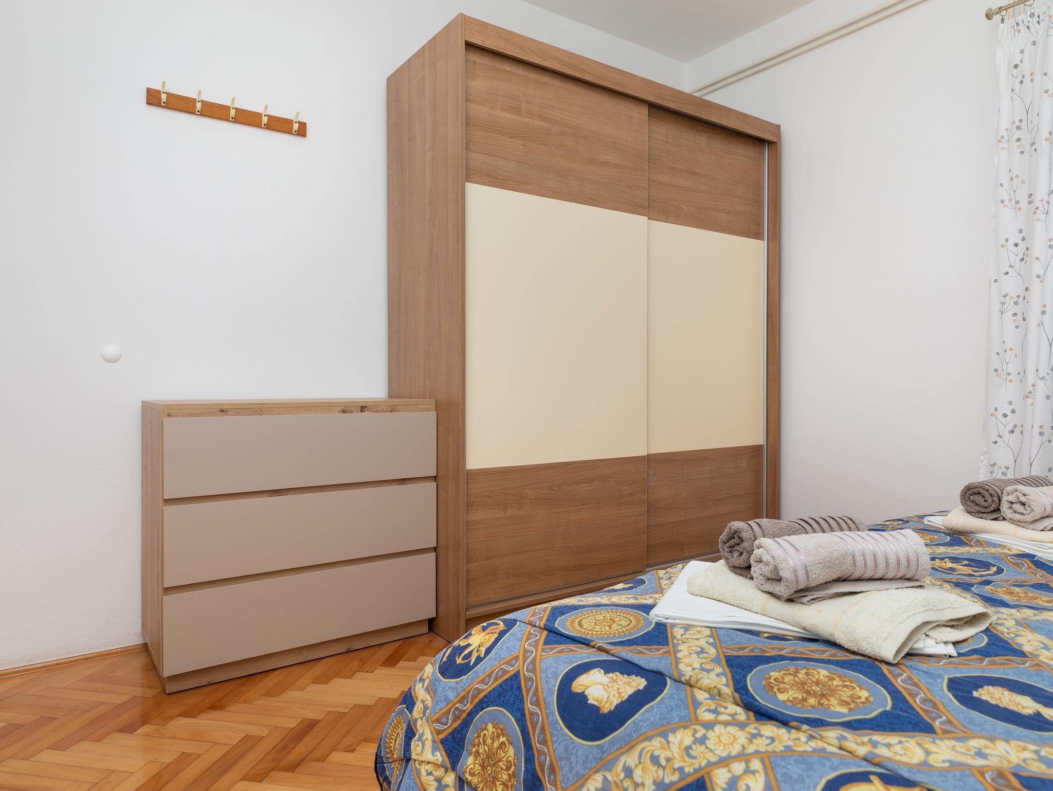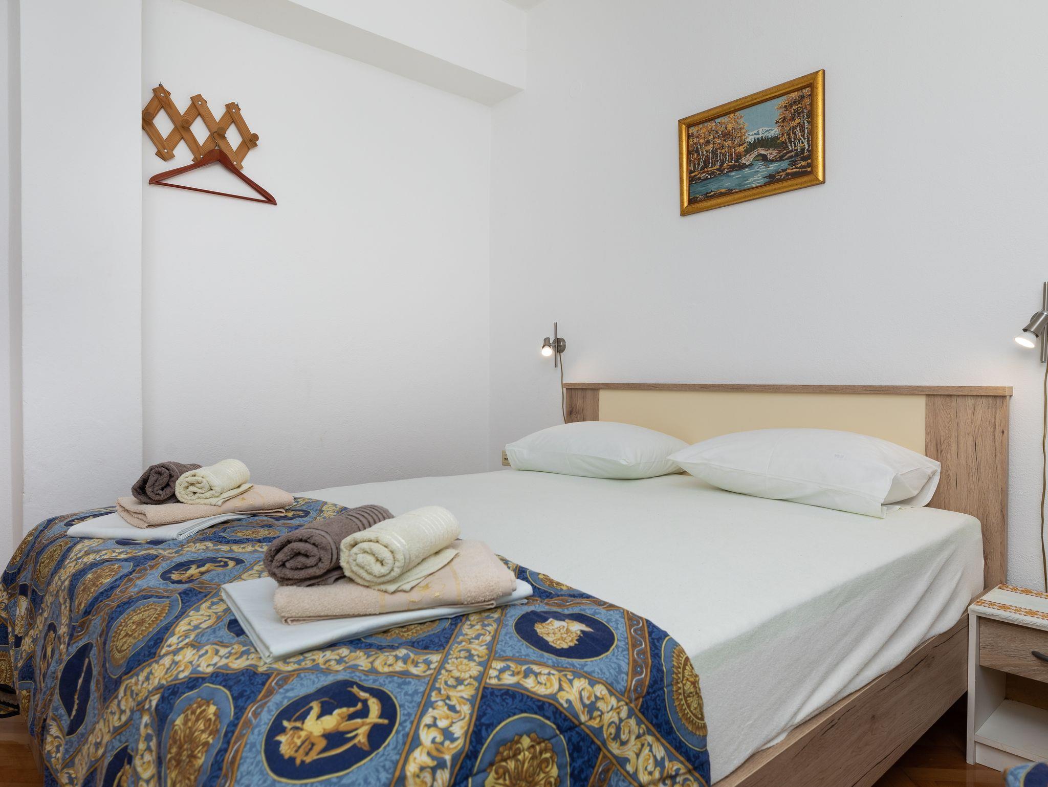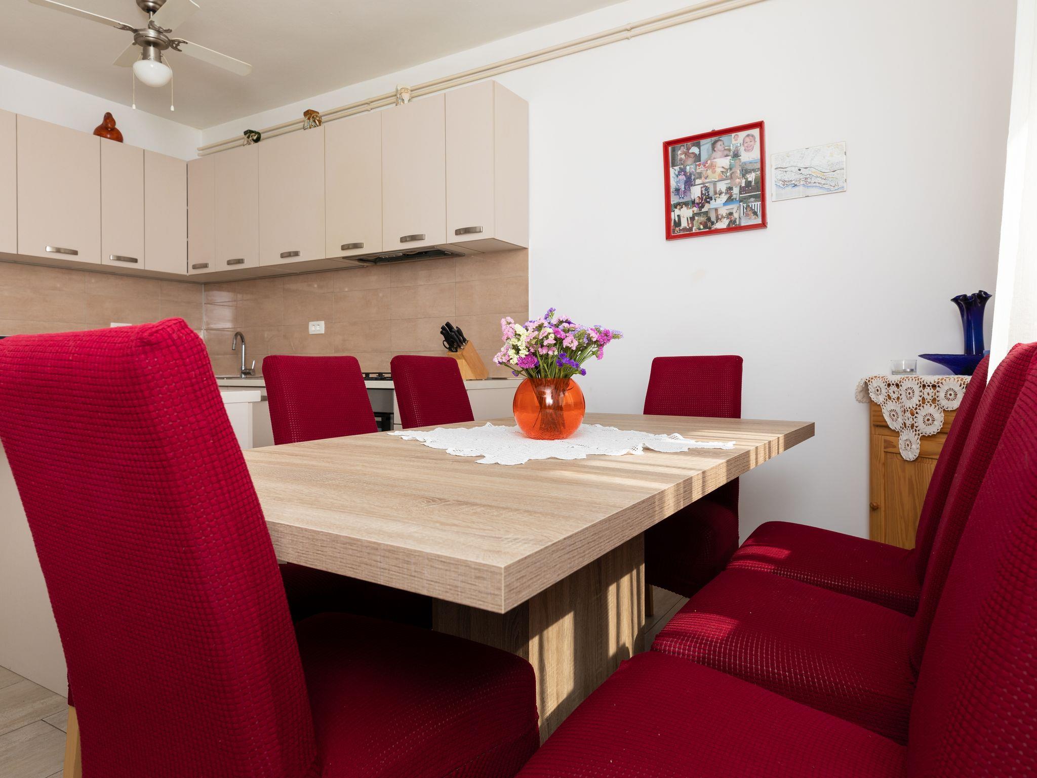 Ferienwohnung bietet Platz für 8 Gäste. Die Betten sind in Schlafzimmern, die es 2 gibt, und in Wohnzimmer, innerhalb einer Gesamtfläche von 76m2, angeordnet. Die Gäste haben eine eigene Terrasse zur Verfügung, auf der sie in warmen Sommernächten genießen können. Das Apartment bietet Meerblick. Es ist erlaubt, Speisen auf dem Gemeinschafts-Grill vorzubereiten. In der Unterkunftseinheit besteht die Möglichkeit des Mitbringens von Haustieren gegen Aufpreis. IM PREIS INBEGRIFFEN: Kurtaxe, Endreinigung, Klimatisierung, Parkplatz, Internet. VERBINDLICHE ZUSÄTZLICHE KOSTEN: Aufzahlung für Kurzaufenthalte (prozentualer Zuschlag pro Nächtigungsanzahl: 30% - 1, 20% - 2, 10% - 3). UNVERBINDLICHE ZUSÄTZLICHE KOSTEN: Haustiere (8,00 € pro Nacht). Die Verfügbarkeit zusätzlicher Dienstleistungen in Ihrem reservierten Termin und die Preise derselben (falls nicht aufgeführt) müssen im Voraus überprüft werden. Zusätzliche Dienstleistungen die in der Zahlungsaufforderung nicht aufgeführt sind werden direkt beim Vermieter bezahlt, angenommen der Gast nutzt auch diese.