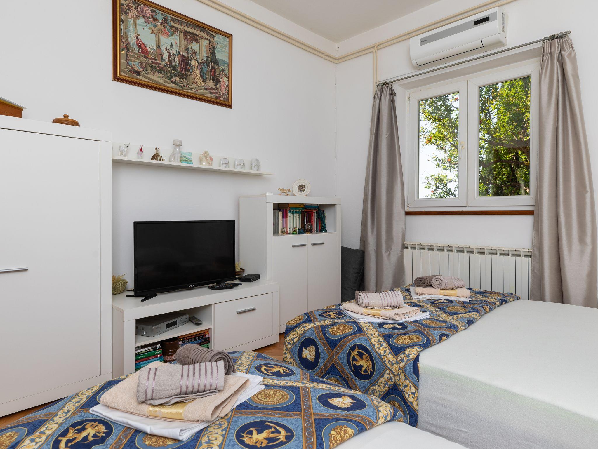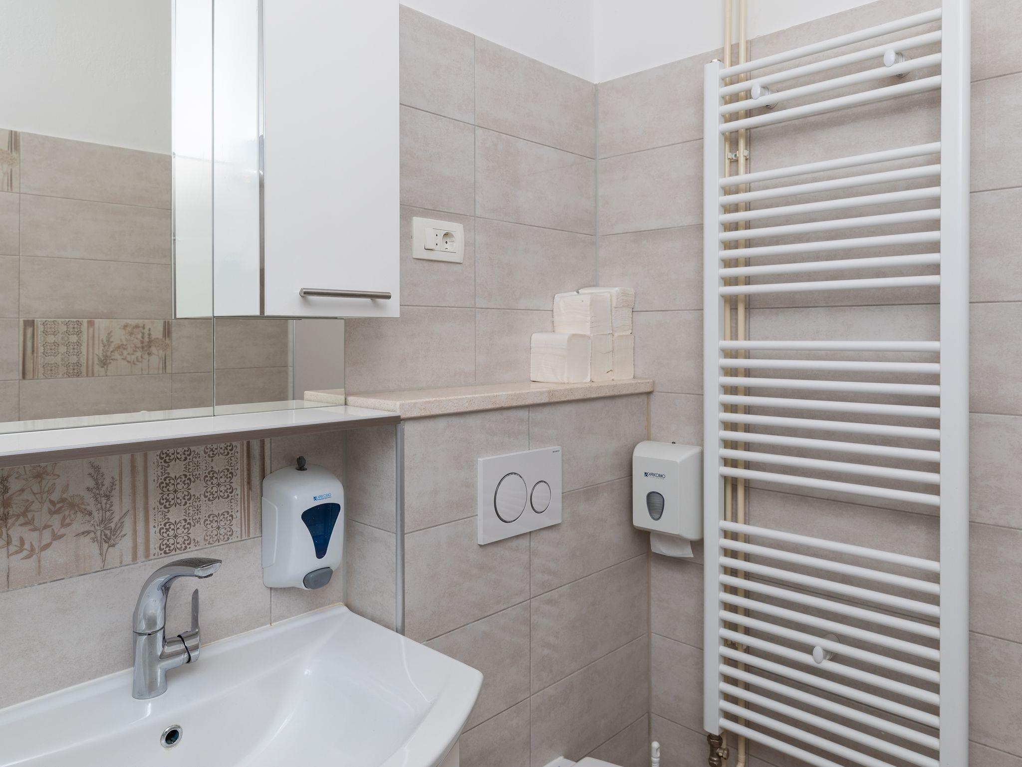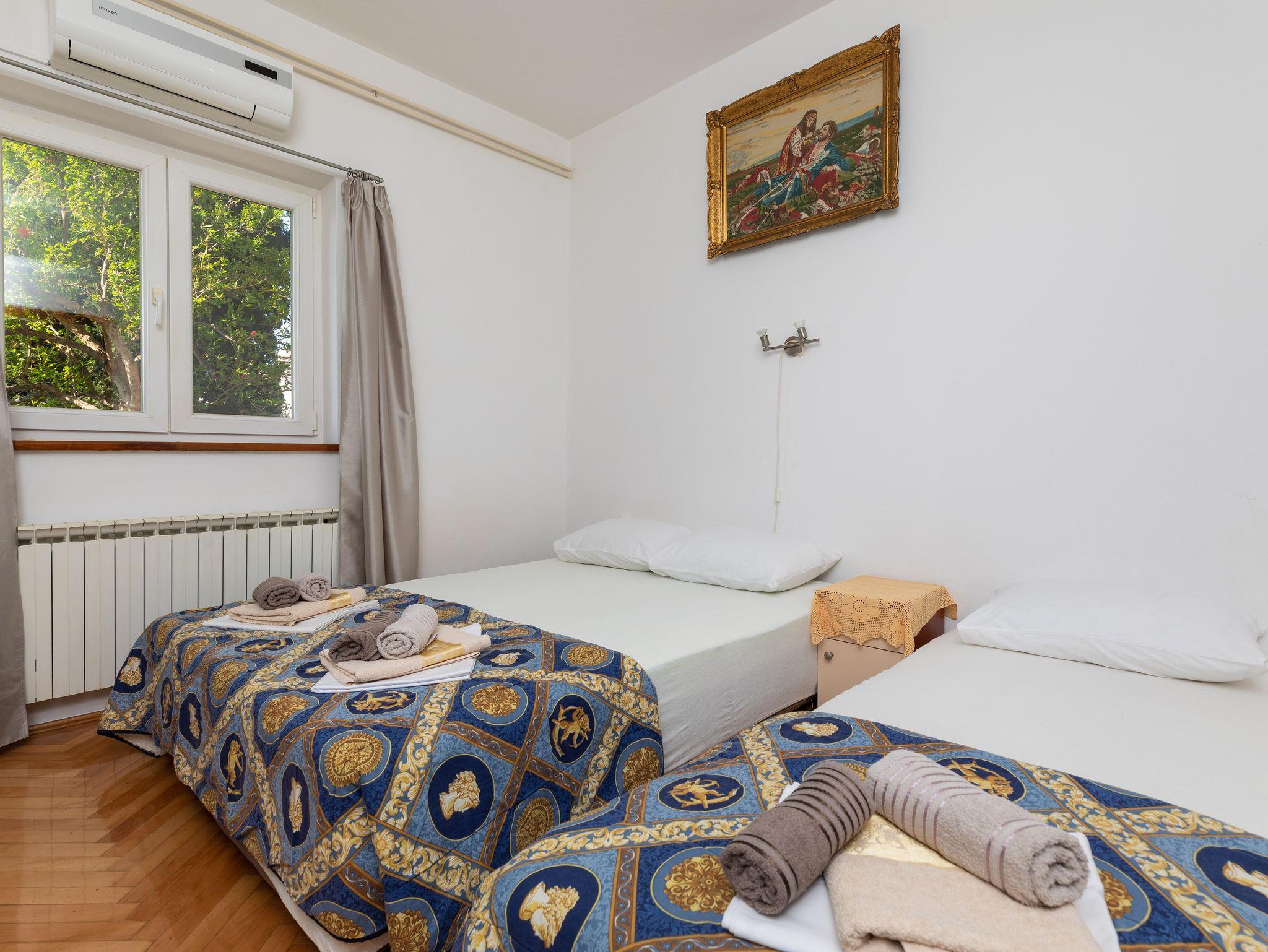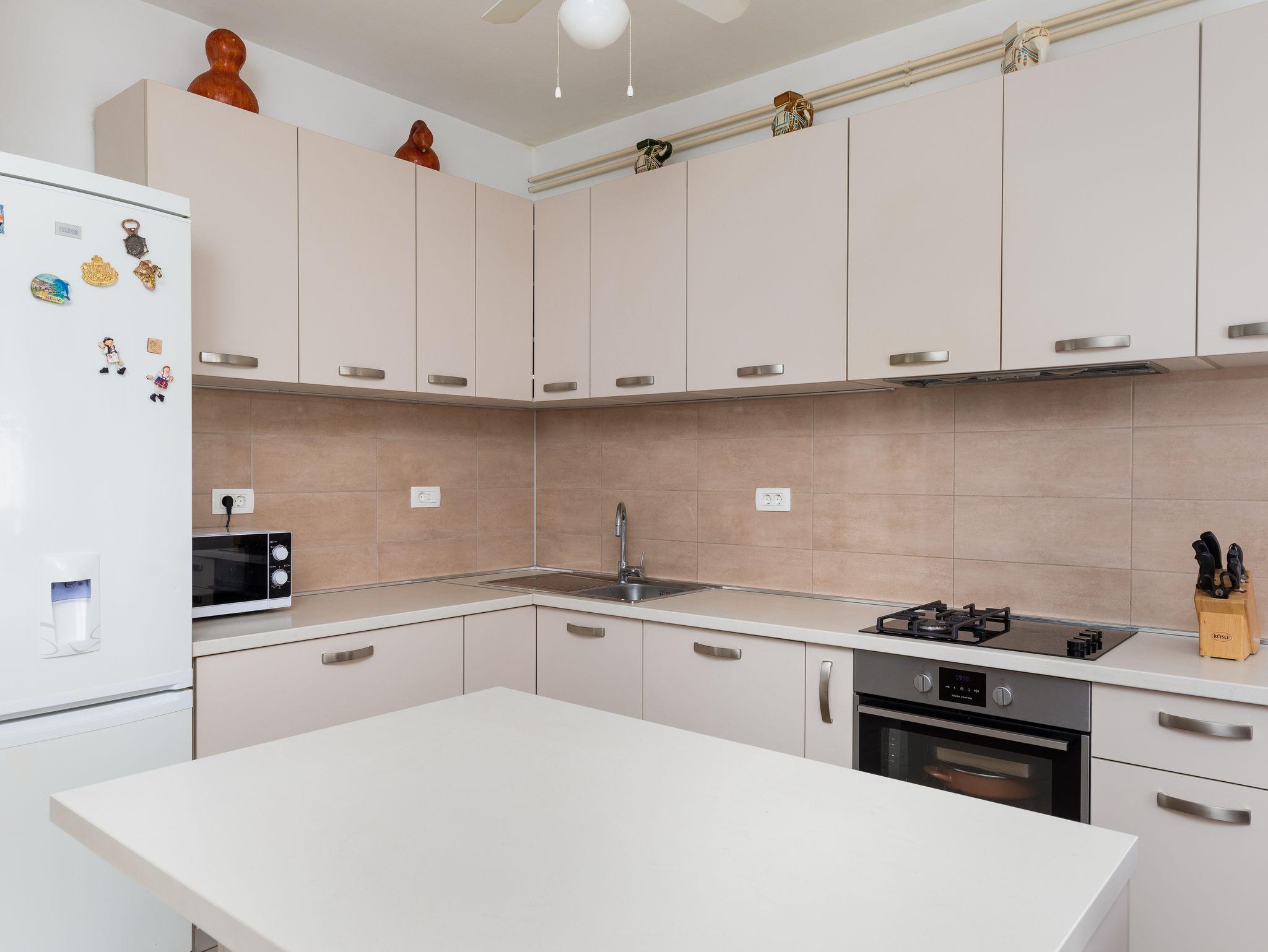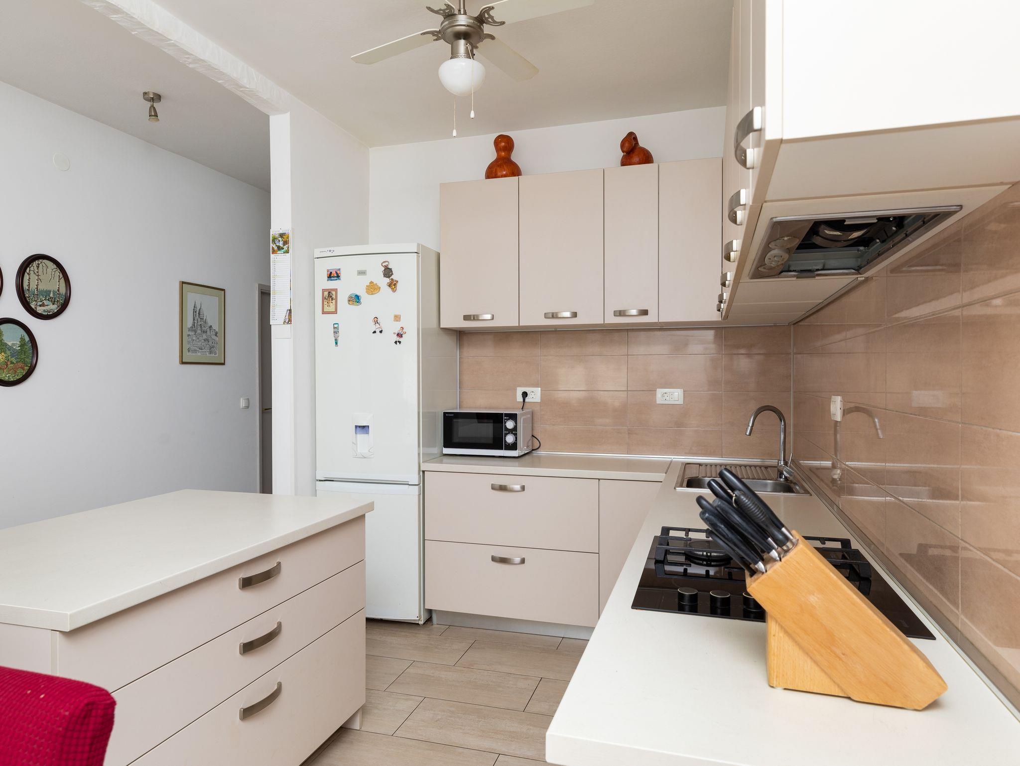 Ferienwohnung bietet Platz für 8 Gäste. Die Betten sind in Schlafzimmern, die es 2 gibt, und in Wohnzimmer, innerhalb einer Gesamtfläche von 76m2, angeordnet. Die Gäste haben eine eigene Terrasse zur Verfügung, auf der sie in warmen Sommernächten genießen können. Das Apartment bietet Meerblick. Es ist erlaubt, Speisen auf dem Gemeinschafts-Grill vorzubereiten. In der Unterkunftseinheit besteht die Möglichkeit des Mitbringens von Haustieren gegen Aufpreis. IM PREIS INBEGRIFFEN: Kurtaxe, Endreinigung, Klimatisierung, Parkplatz, Internet. VERBINDLICHE ZUSÄTZLICHE KOSTEN: Aufzahlung für Kurzaufenthalte (prozentualer Zuschlag pro Nächtigungsanzahl: 30% - 1, 20% - 2, 10% - 3). UNVERBINDLICHE ZUSÄTZLICHE KOSTEN: Haustiere (8,00 € pro Nacht). Die Verfügbarkeit zusätzlicher Dienstleistungen in Ihrem reservierten Termin und die Preise derselben (falls nicht aufgeführt) müssen im Voraus überprüft werden. Zusätzliche Dienstleistungen die in der Zahlungsaufforderung nicht aufgeführt sind werden direkt beim Vermieter bezahlt, angenommen der Gast nutzt auch diese.