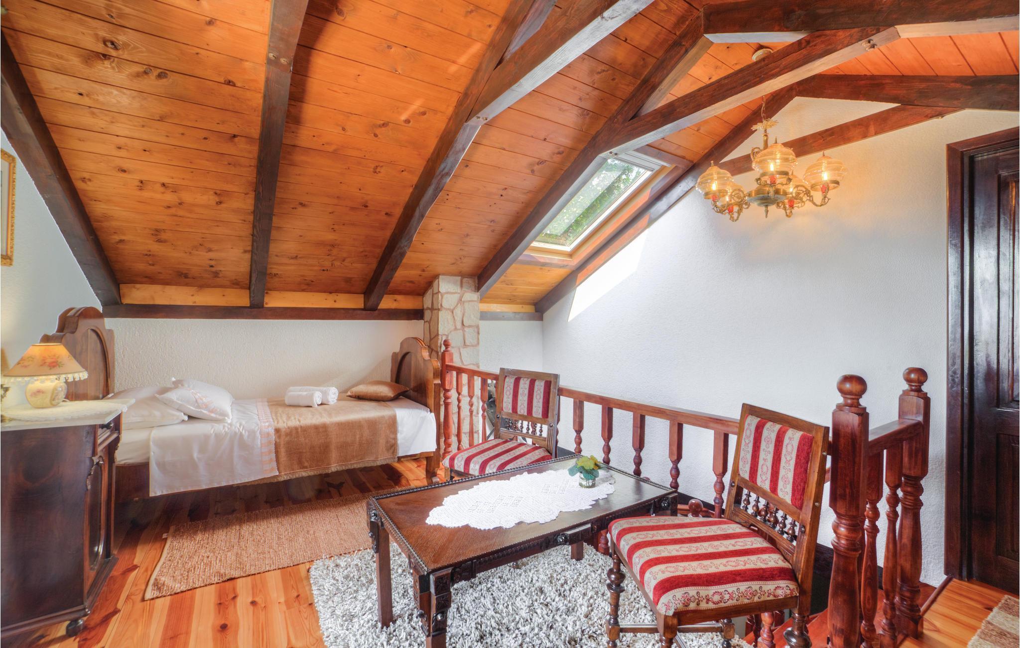 Willkommen in der Nähe des Stadtzentrums von Klek. Das besondere Ferienhaus mit Pool liegt abseits vom Stadt- und Straßenlärm und ist über ca. 500 m langen, schmalen sowie nicht asphaltierten Weg erreichbar. Räumlichkeiten erwarten ihre Gäste im Erdgeschoss und auf einer Galerie, die aus einem separaten Schlafzimmer und einem offenen und Spitzboden mit zwei weiteren Betten besteht. Dachschräge auf ca. 1 m. Erfrischen Sie sich im Außenpool und schalten Sie ab weit weg vom Alltag. Fahren Sie den Berg hinunter an die Küste und lassen Sie sich vom kristallklaren Meer begeistern.