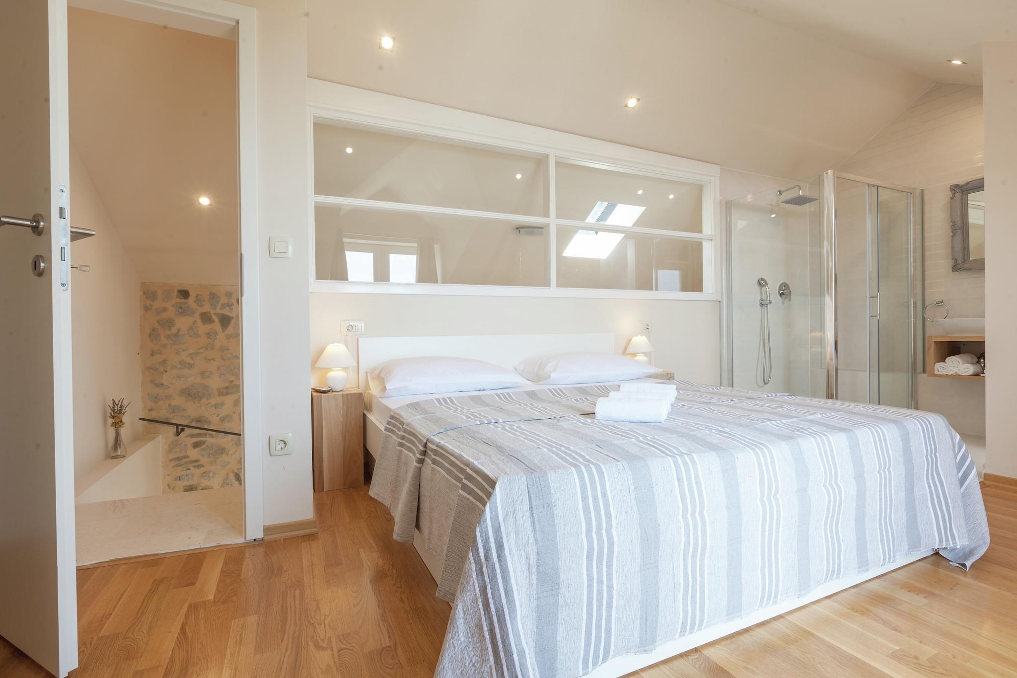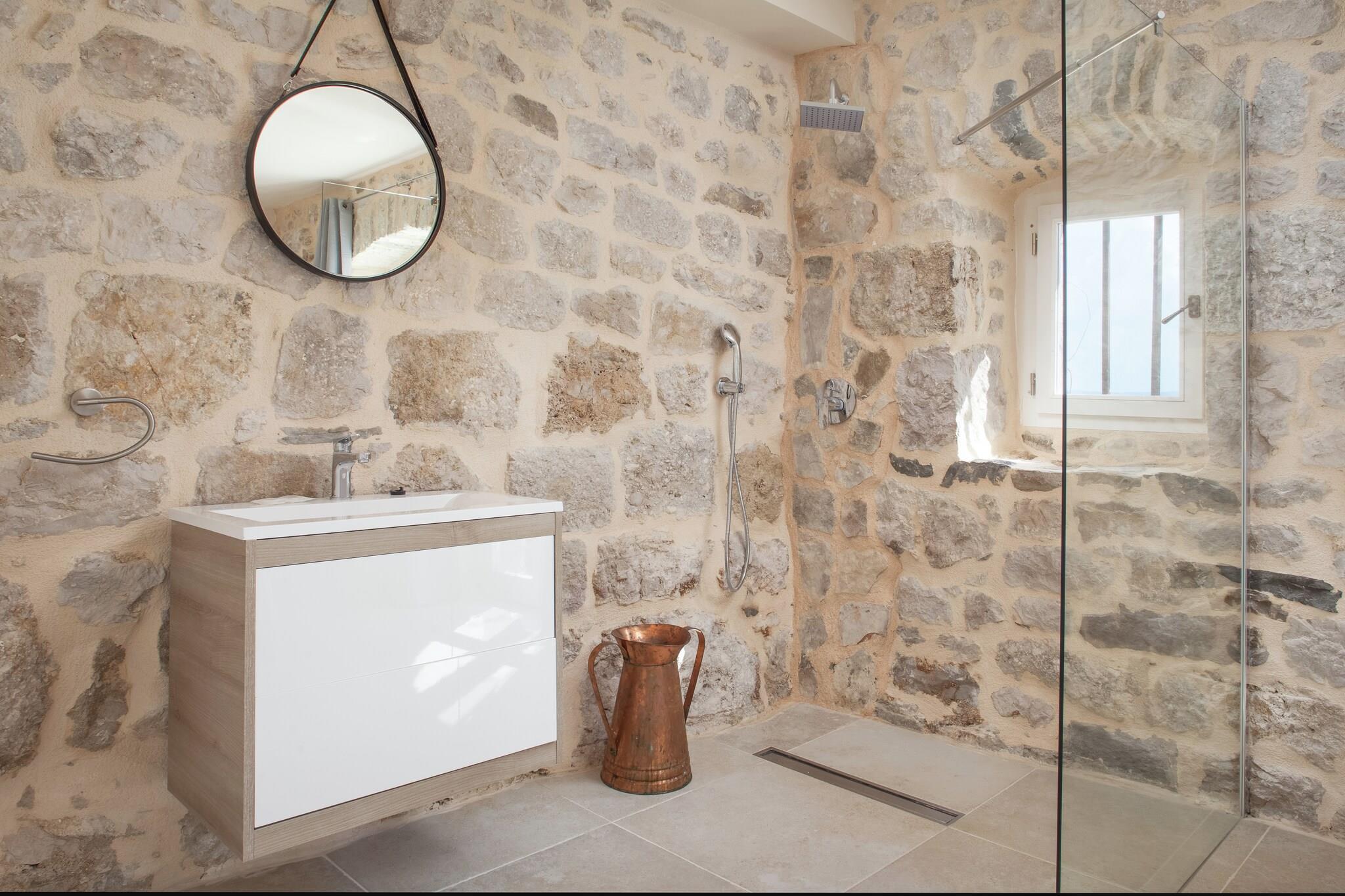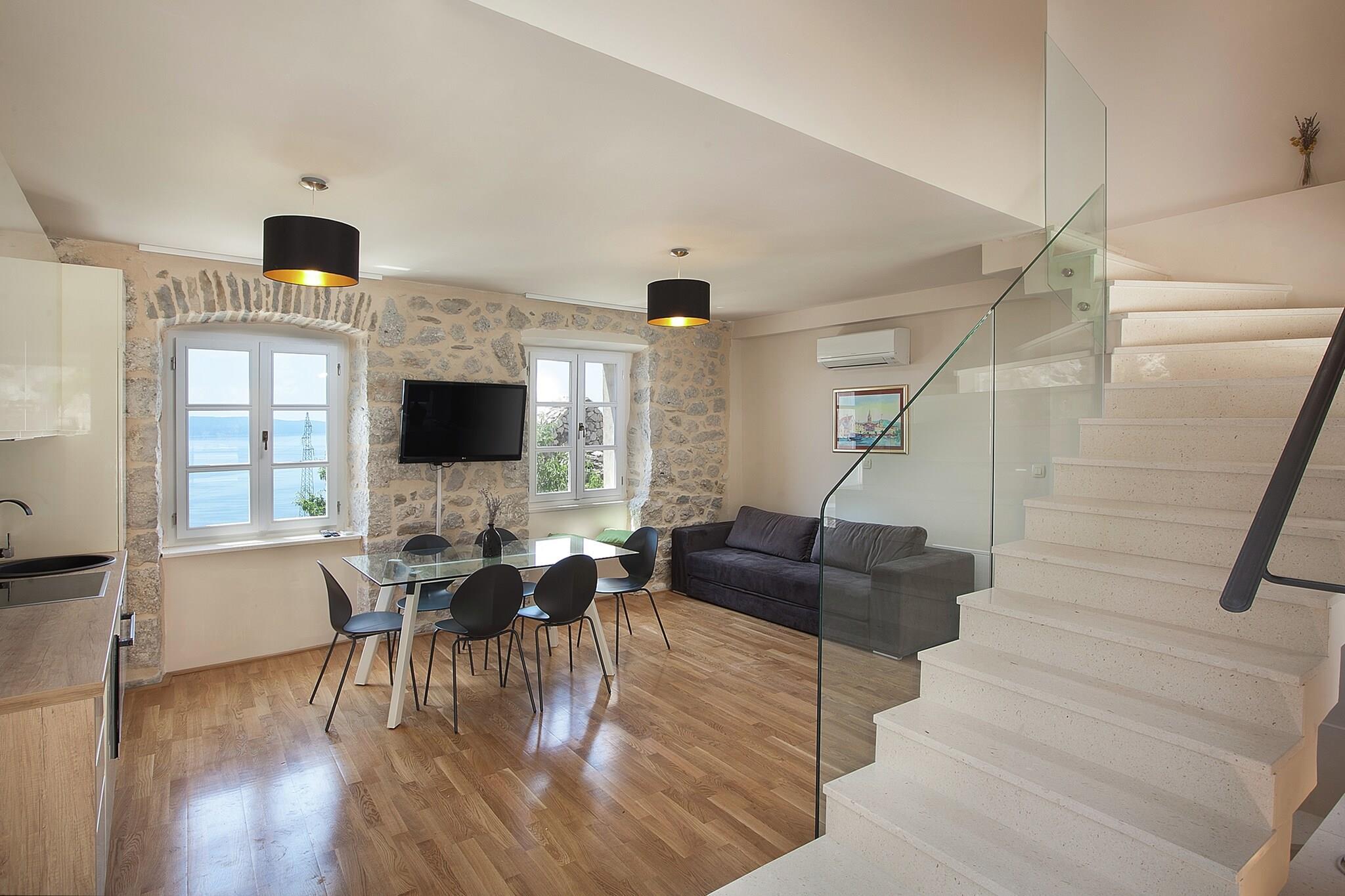 Villa befindet sich im idyllischen Dorf Gornja Podgora, am Hang des Biokovogeberges, 1 Kilometer entfernt vom Meer und Strand und lebenden Orte von Makarska Rivijera. Villa wurde modern unter der Berücksichtigung der Tradition alter dalmatinischen Architektur renoviert und stellt ein Komplex von 3 Steinhäuser mit beheiztem Pool, großem Platz im Freien und atemberaubendem Blick aufs Meer und die vorgelagerten Inseln dar. Das Haupthaus besteht aus drei Etage. Auf einer Etage ist eine modern eingerichtete Küche, ein Wohnzimmer und Essbereich. Ein Schlafzimmer mit eigenem Badezimmer befindet sich im Erdgeschoss und anderes Schlafzimmer mit eigenem Badezimmer befindet sich im Dachgeschoss. In dem zweiten Haus befindet sich noch ein Schlafzimmer mit dem Badezimmer und im dritten traditionell eingerichteten Haus befindet sich ein Kamin mit dem Essbereich. Ort Podgora, das sehr einfach zu erreichen ist, bietet großen Anzahl von Aktivitäten und Nachleben. Villa liegt sehr nah an der Küstenstraße und ist gute Basis zum Naturerkunden.