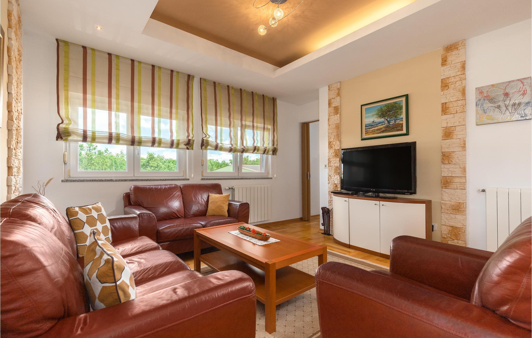 Die modern und schön eingerichtete Ferienwohnung befindet sich in einem Einfamilienhaus, am Rande des kleinen und ruhigen Ortes Zbandaj, wo Sie einen unvergesslichen und erholsamen Urlaub fern von der Hektik des Alltags verbringen können. Erfrischen Sie sich an heißen Sommertagen im Pool gleich neben dem Feriendomizil und genießen Sie die Sonne in vollen Zügen. Erkunden Sie die Umgebung und den Ferienort Porec, der nur einige Minuten Autofahrt weit entfernt ist und in dem Sie ein reiches Angebot an Unterhaltung und kulturellen Veranstaltungen vorfinden.
