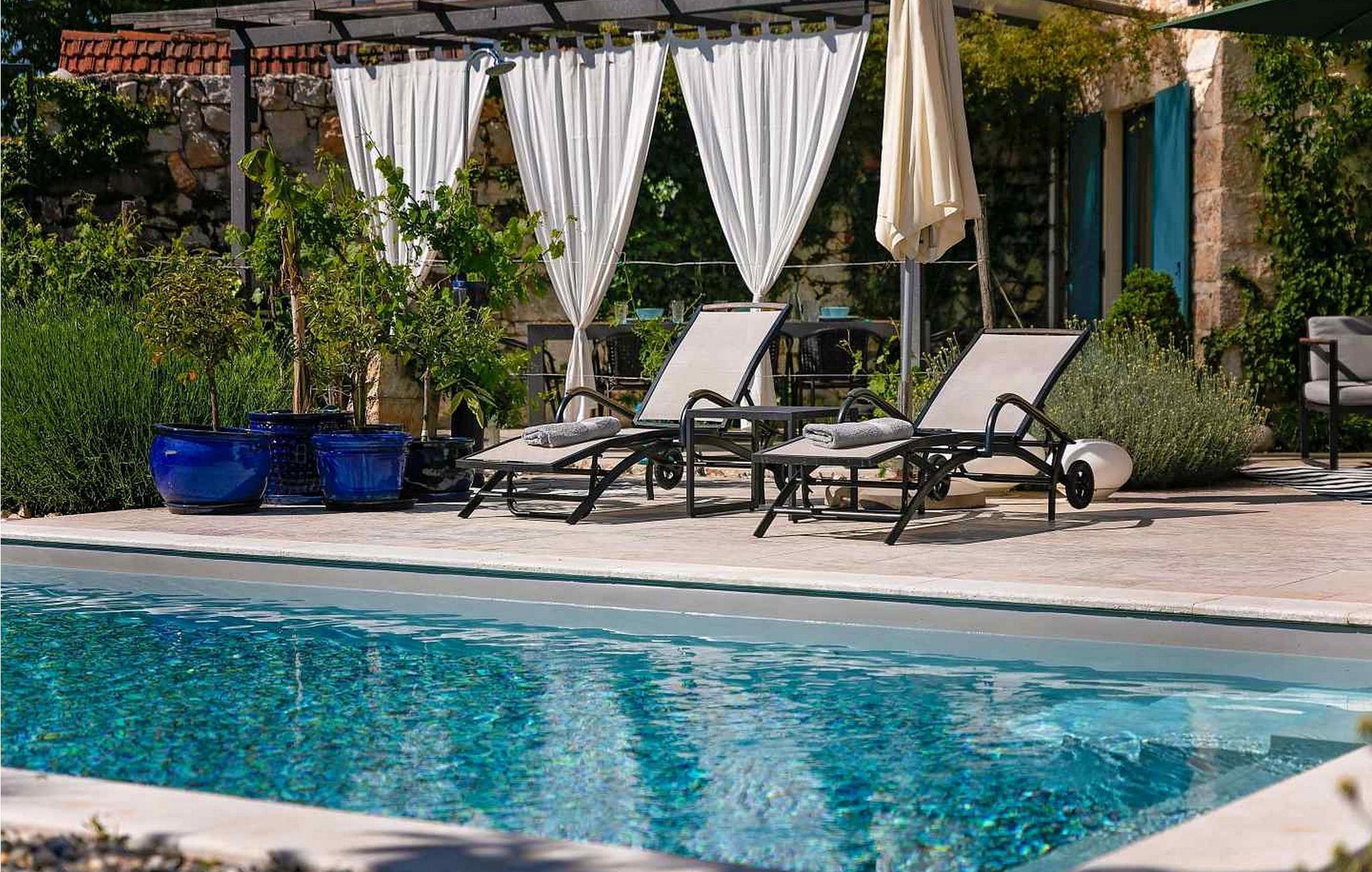 Villa Maxima Agri auf besonders schön gepflegten Garden verfügt über folgende Außenausstattungen: beheizter Pool von 40 qm mit Salzwasser mit kleineren Kinder-Pool, zwei Terrassen mit Tisch und Stühlen, ein Biopool, Grillkamin, Außendusche, Liegestühle und Sonnenschirm. Zwei private Parkplätze befinden sich außerhalb des Grundstücks.