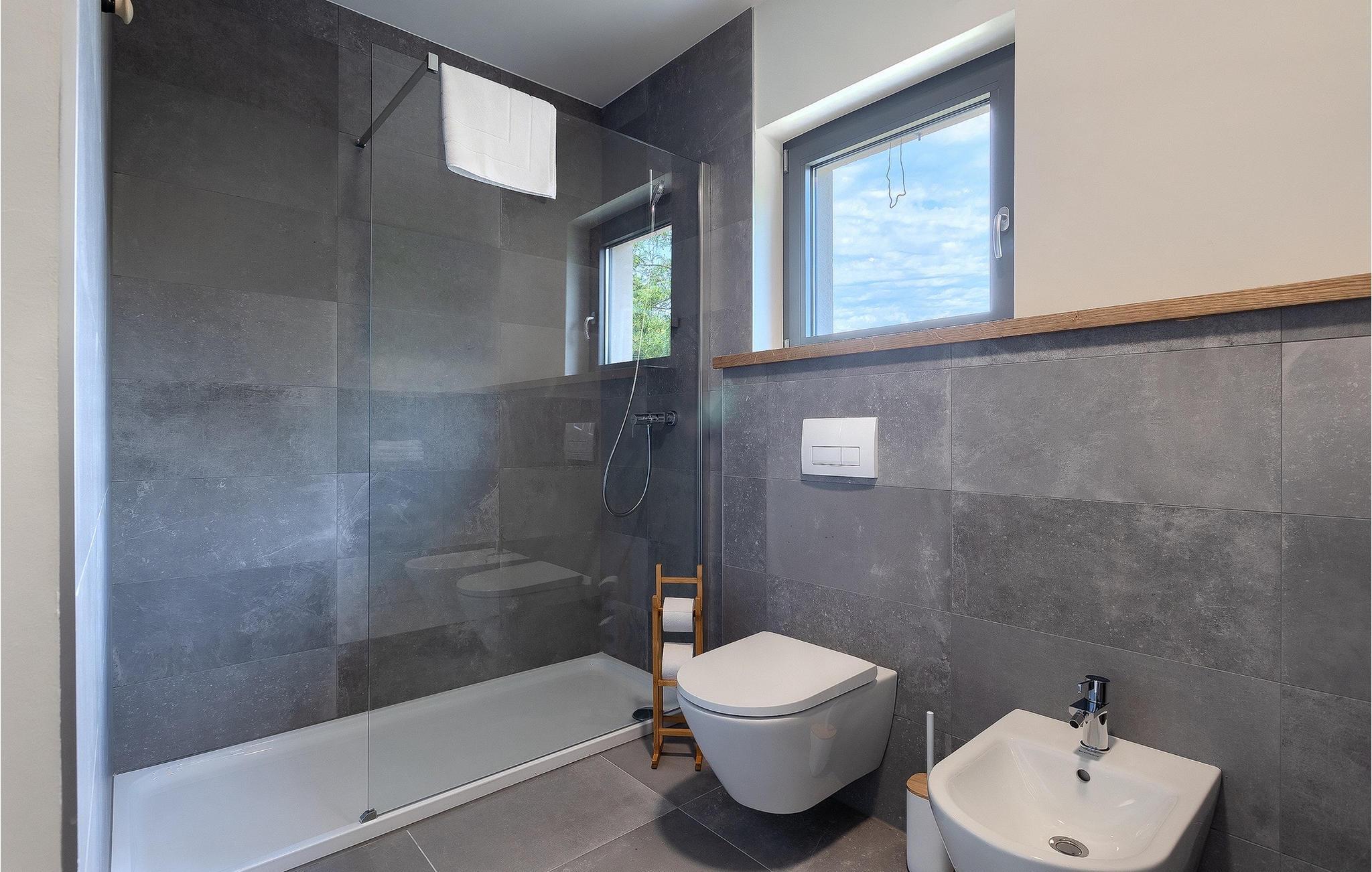 Die Villa Pinca ist von grünen Bäumen und Natur umgeben, die mit ihrer großen Gartenwiese eine idyllische Atmosphäre zum Entspannen schaffen. Der private Pool erfrischt Sie nach einem Sonnenbad auf einer der 8 Sonnenliegen. Während Sie am Pool entspannen, können die Kinder im Garten toben, auf dem privaten Spielplatz spielen oder eine Partie Tischtennis spielen. In einem schattigen Bereich befindet sich direkt neben dem Spielplatz eine Außenküche mit Grill. Ein Esstisch für bis zu 10 Gäste eignet sich perfekt für eine Mahlzeit im Schatten direkt am Pool. Im Inneren finden Sie ein großes Wohnzimmer mit 2 Sofas, das von Tageslicht durchflutet ist und sich perfekt für Filmabende und Gespräche eignet. Im gleichen Raum können Sie in der Küche mit Kücheninsel ein köstliches Essen zubereiten und es am Esstisch für bis zu 10 Personen neben einem großen Fenster genießen. Im Obergeschoss befinden sich 3 komfortable Doppelzimmer mit Fernseher und eigenem Bad. Ein weiteres separates Doppelzimmer steht in einem Pavillon im Garten zur Verfügung. Dieses Schlafzimmer verfügt auch über einen eigenen Fernseher und ein Badezimmer. Villa Pinca ist wirklich die perfekte Wahl für einen Sommerurlaub mit der Familie. Die Villa Pinca befindet sich im Dorf Vizinada in der Nähe von Porec. Nur 30 Minuten entfernt können Sie die antike Stadt Porec besuchen, wo Sie den Mittelpunkt der Stadt besichtigen können, die bemerkenswerte Euphrasius-Basilika, die zum UNESCO-Weltkulturerbe gehört und für ihre faszinierenden byzantinischen Mosaike bekannt ist. Machen Sie einen Spaziergang entlang der lebhaften Uferpromenade, wo bunte Boote und die Adria einen atemberaubenden Ausblick bieten. Ein weiterer nahe gelegener Ort ist Umag. Die Landschaft ist bekannt für ihre Weinberge und Olivenhaine, Wiesen und Wälder. Wir empfehlen einen Besuch in den Weinkellern der Familie und die Verkostung der berühmten istrischen Köstlichkeiten: Pasta mit Trüffeln, Prosciutto und Käse, alles mit einem Glas des berühmten istrischen Malvasia. In den charmanten, gepflasterten Straßen der Stadt gibt es zahlreiche ausgezeichnete Restaurants, Bars und Cafés. Hier können Sie Istriens Höhlen, wunderschöne grüne Natur, idyllische Hügel und kulturelle Sehenswürdigkeiten wie Kirchen, Kapellen und archäologische Stätten erleben. In der Nähe befindet sich der erste kroatische Wasserpark in Istralandia, wo Sie mit Ihren Lieben Wasseraktivitäten genießen können.