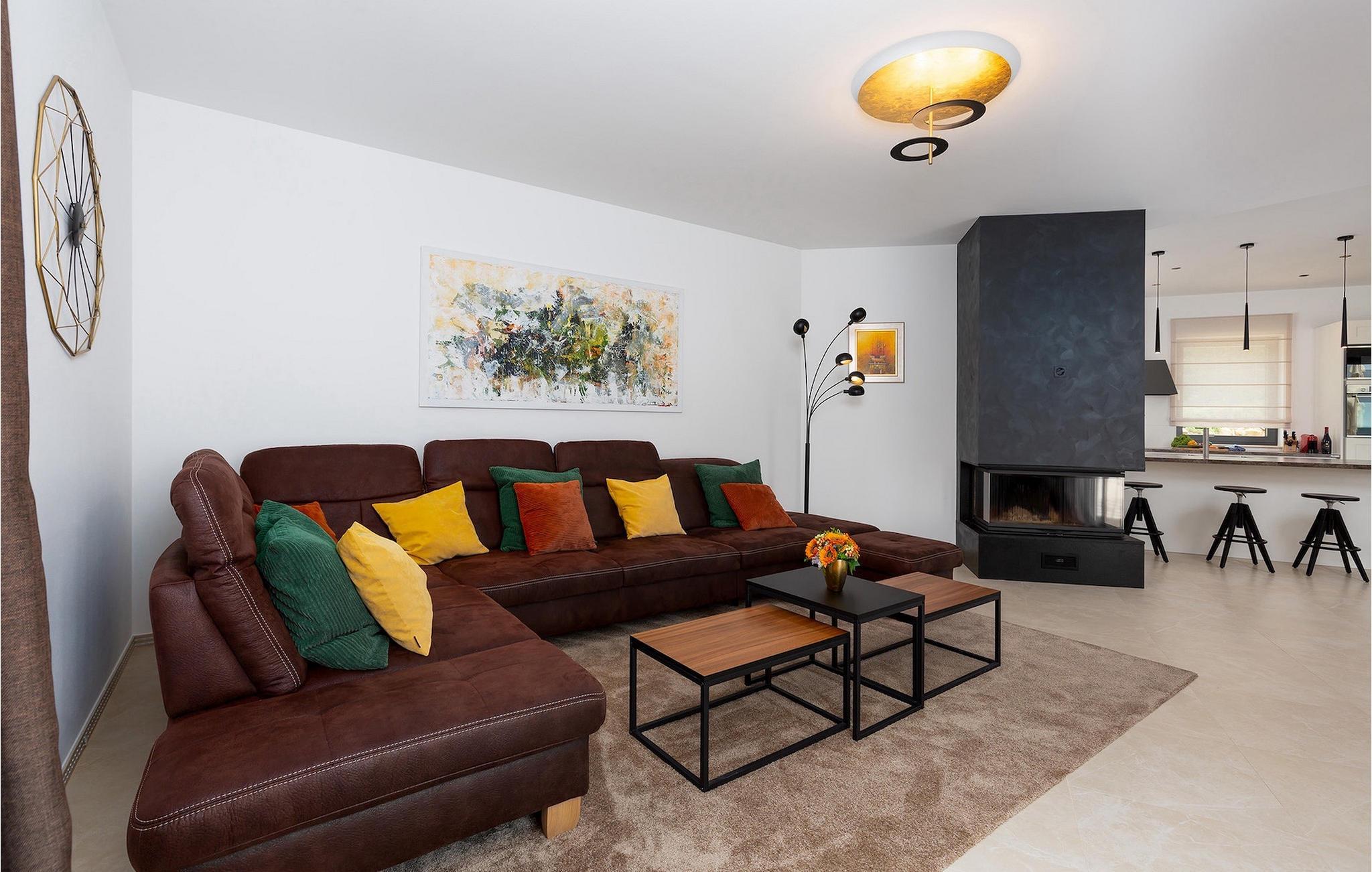 Villa Faloniga ist eine wunderschöne Ferienvilla im malerischen Dorf Vizinada in Istrien. Die Villa ist ideal für einen ruhigen Urlaub mit Familie und Freunden. Ein beeindruckender Swimmingpool mit Blick ins Grüne, der eine Größe von 68 m2 hat, zeichnet diese Villa aus. Der Swimmingpool befindet sich auf der Hauptterrasse und ist ideal zum Entspannen und Erfrischen während der Sommerhitze. Genießen Sie die istrische Sonne auf den Liegestühlen am Pool. Bereiten Sie traditionelle istrische Gerichte auf dem Grill für die ganze Familie zu. Verbringen Sie unvergessliche Zusammenkünfte im überdachten Bereich am Pool an einem Tisch mit 8 Sitzplätzen. Das Innere der Villa mit seiner schönen modernen Einrichtung wird Sie sicherlich nicht enttäuschen. Im Erdgeschoss der Villa gibt es einen offenen Raum mit einer voll ausgestatteten Küche für die Zubereitung von Meeresfrüchtespezialitäten, ein Esszimmer und ein geräumiges Wohnzimmer. Das erste Schlafzimmer ist für Ruhe und friedliche Träume gedacht, es ist mit einem Doppelbett und einem privaten Badezimmer im Erdgeschoss ausgestattet. Im Erdgeschoss gibt es auch eine separate Toilette. Im ersten Stock befinden sich die restlichen Schlafzimmer. Zwei Schlafzimmer verfügen über Doppelbetten und eigene Badezimmer, während das letzte Schlafzimmer über 2 Einzelbetten verfügt. Auf den Terrassen im ersten Stock genießen Sie den Morgen bei Kaffee und einem schönen Blick ins Grüne. Verbringen Sie einen perfekten Urlaub mit Ihren Lieben in der Villa Faloniga im magischen Istrien. Die Villa Faloniga befindet sich im Dorf Vizinada in Istrien. Dieser malerische Ort liegt auf einem Hügel über dem Tal des Flusses Mirna und ist reich an Kulturdenkmälern und einem einzigartigen gastronomischen Angebot. Probieren Sie natives Olivenöl extra, istrischen Prosciutto und hausgemachte Fugen. Lernen Sie die lokale Bevölkerung kennen und besuchen Sie zahlreiche Vizinad-Veranstaltungen. Naturliebhaber werden von der Naturschönheit begeistert sein, die Sie auf zahlreichen Rad- und Wanderwegen entdecken können. Erkunden Sie diese Gegend auf dem berühmten Parenzana-Wanderweg. Besuchen Sie das charmante Motovun, das Sie mit seinen Sehenswürdigkeiten, engen Gassen und Steinhäusern begeistern wird. Verpassen Sie nicht das Filmfestival in Motovun. Verpassen Sie nicht, die wichtigsten Touristenzentren Istriens zu besuchen: Rovinj, Porec und Pula. In Rovinj sehen Sie die barocke Kirche St. Besuchen Sie in Porec die byzantinische Euphrasius-Basilika, die zum UNESCO-Weltkulturerbe gehört. Verpassen Sie nicht, die größte istrische Stadt Pula zu besuchen, wo Sie die Pula-Arena, den Augustus-Tempel, das Goldene Tor und viele andere kulturelle und historische Denkmäler besichtigen können. Erkunden Sie abschließend den Brijuni-Archipel mit dem berühmten Brijuni-Nationalpark.