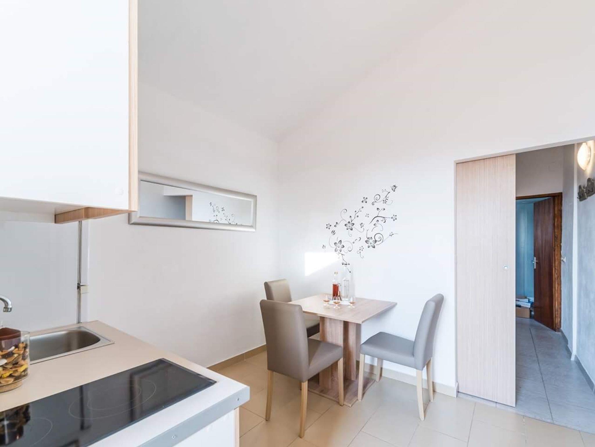 Studio bietet Platz für 3 Gäste. Die Betten sind in Schlafzimmern, die es 1 gibt, innerhalb einer Gesamtfläche von 22m2, angeordnet. Die Gäste haben einen eigenen Balkon zur Verfügung, auf der sie in warmen Sommernächten genießen können. Das Studio-Apartment bietet Meerblick. Es ist erlaubt, Speisen auf dem Gemeinschafts-Grill vorzubereiten. IM PREIS INBEGRIFFEN: Kurtaxe, Endreinigung, Klimatisierung, Parkplatz, Internet, Kinderbett, Bügeleisen, Föhn. Die Verfügbarkeit zusätzlicher Dienstleistungen in Ihrem reservierten Termin und die Preise derselben (falls nicht aufgeführt) müssen im Voraus überprüft werden. Zusätzliche Dienstleistungen die in der Zahlungsaufforderung nicht aufgeführt sind werden direkt beim Vermieter bezahlt, angenommen der Gast nutzt auch diese.