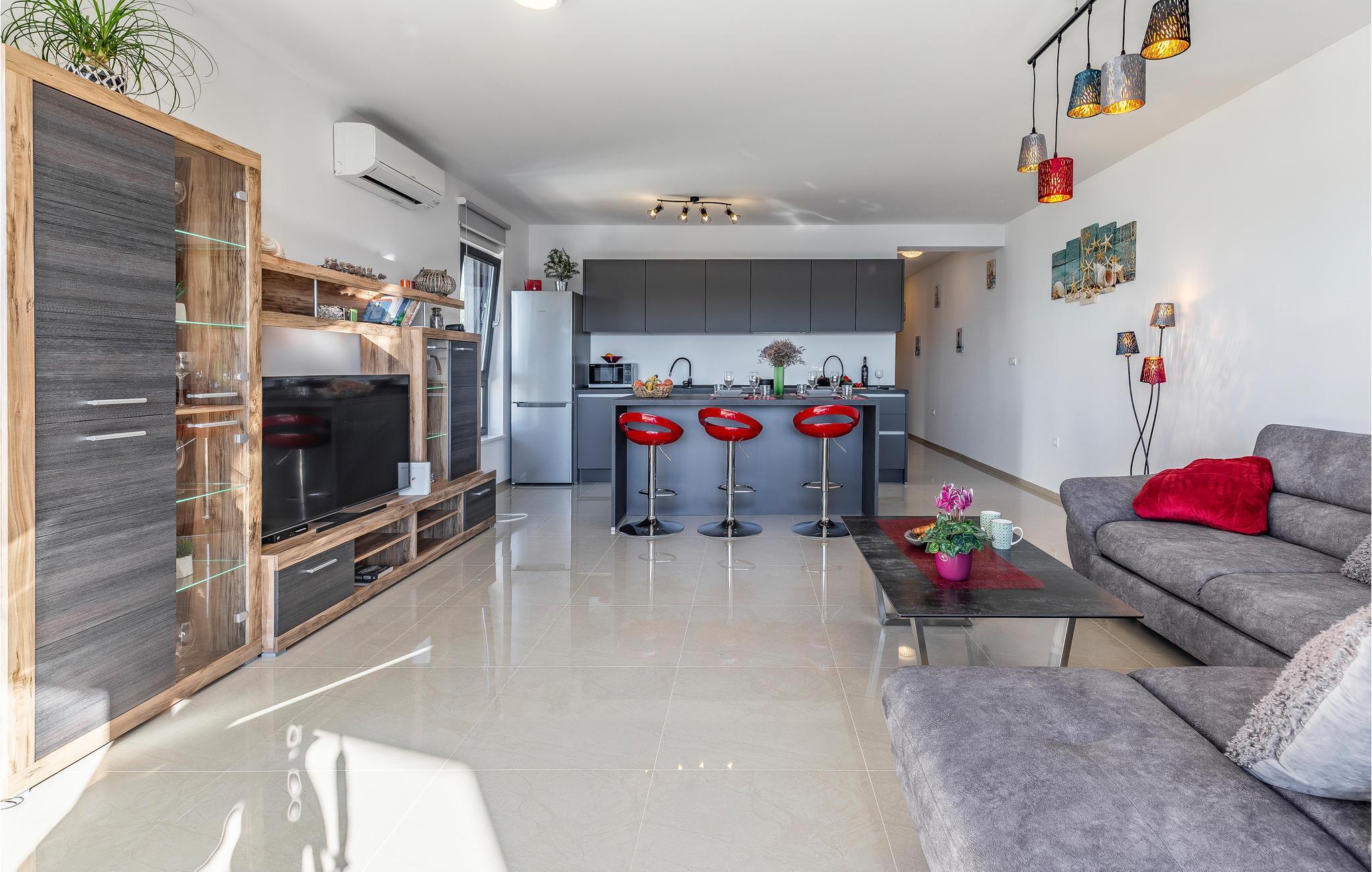 Freuen Sie sich auf einen Urlaub mit Meer, Sonne und Strand in dieser schönen Ferienwohnung in Banjole. Die Wohnung ist modern und geschmackvoll eingerichtet und bietet viel Komfort. Das Herz der Wohnung ist das schöne Wohnzimmer mit offener, moderner Küche. Durch die großen Fenster haben Sie viel Tageslicht und einen fantastischen Blick auf das Wasser.