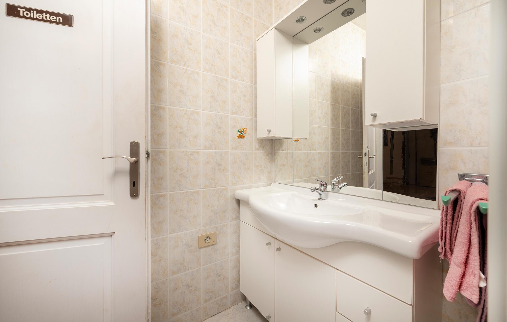 - WC mit warmem und kaltem Wasser, Badewanne