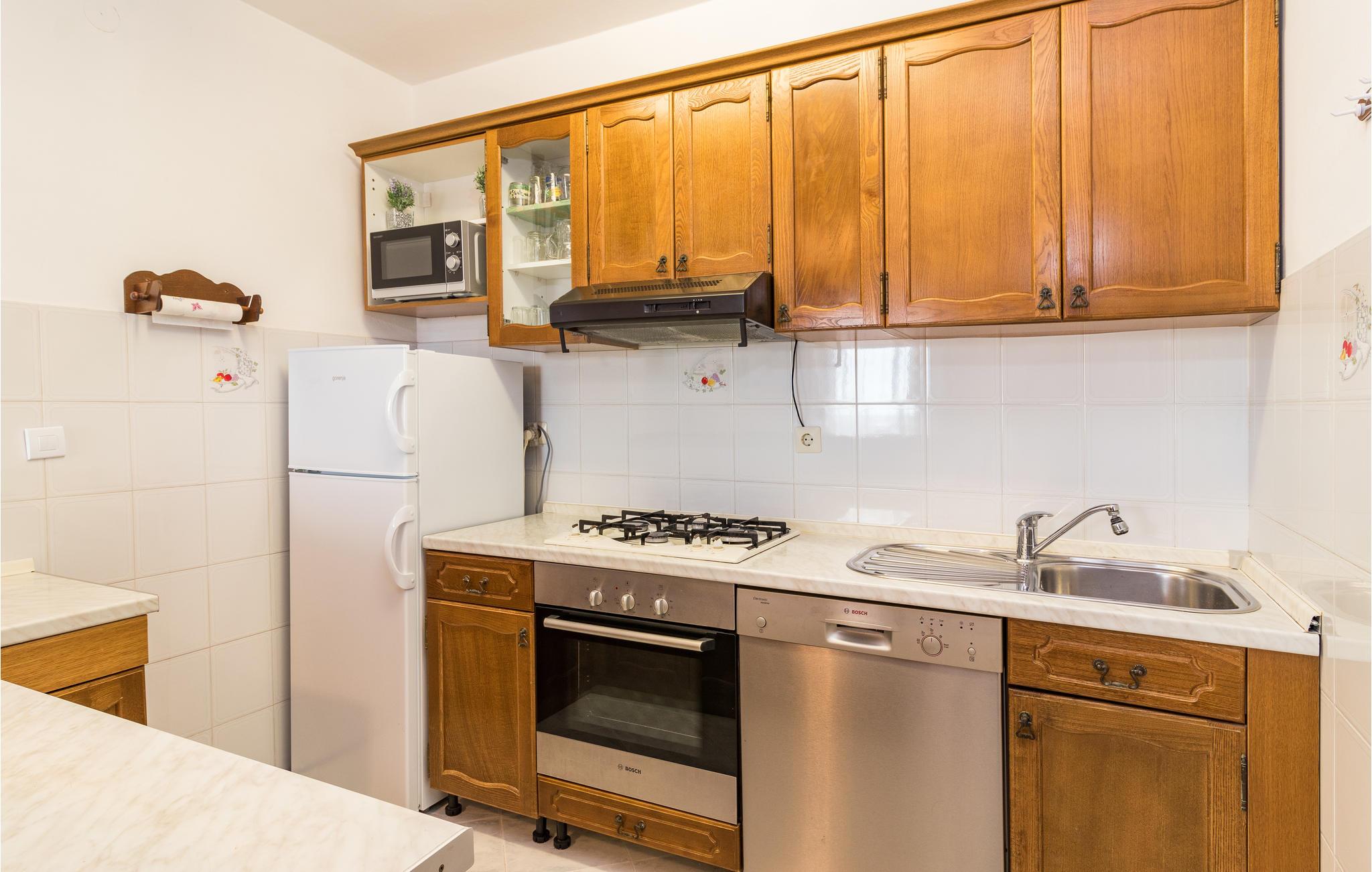 Im Außenbereich dominiert der große Pool, sowie die Außenküche und der überdachte Bereich. Es steht Ihnen auch ein gemeinsames WC zur Verfügung. Der hintere Teil des Grundstücks, wo sich auch der gemeinsame Pool befindet, ist umzäunt, während der vordere Teil mit Parkplätzen keine Umzäunung hat. Entdecken Sie schöne Strände und eine schöne Promenade am Meer entlang mit vielen Beach Bars, die bis nach Fažana führt. Besuchen Sie den Nationalpark auf den Brioni Inseln, die historische Stadt Pula und die romantische Altstadt von Rovinj.
