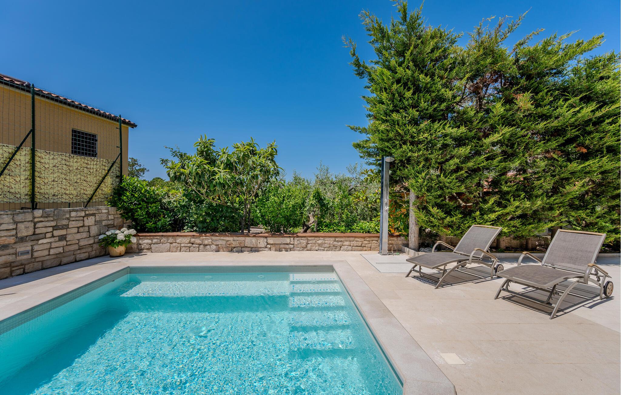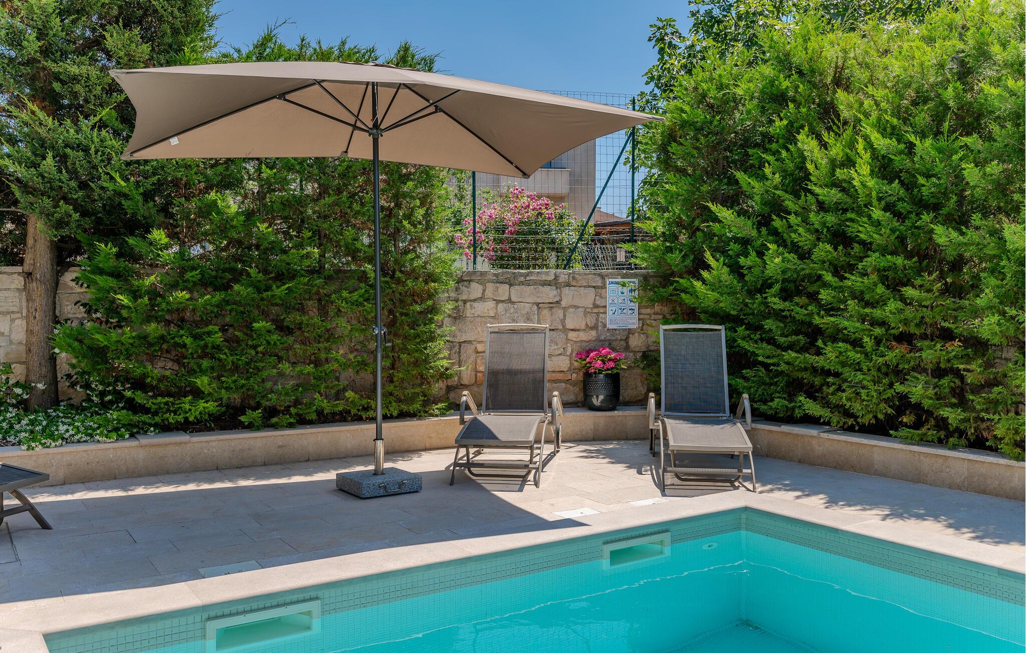 Entfliehen Sie den Alltag und genießen Sie erholsame Tage in dieser modernen Ferienwohnung mit Zugang zum Pool.
