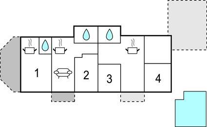 Badezimmer (nr. 3) - WC. Warmes und kaltes Wasser. Dusche