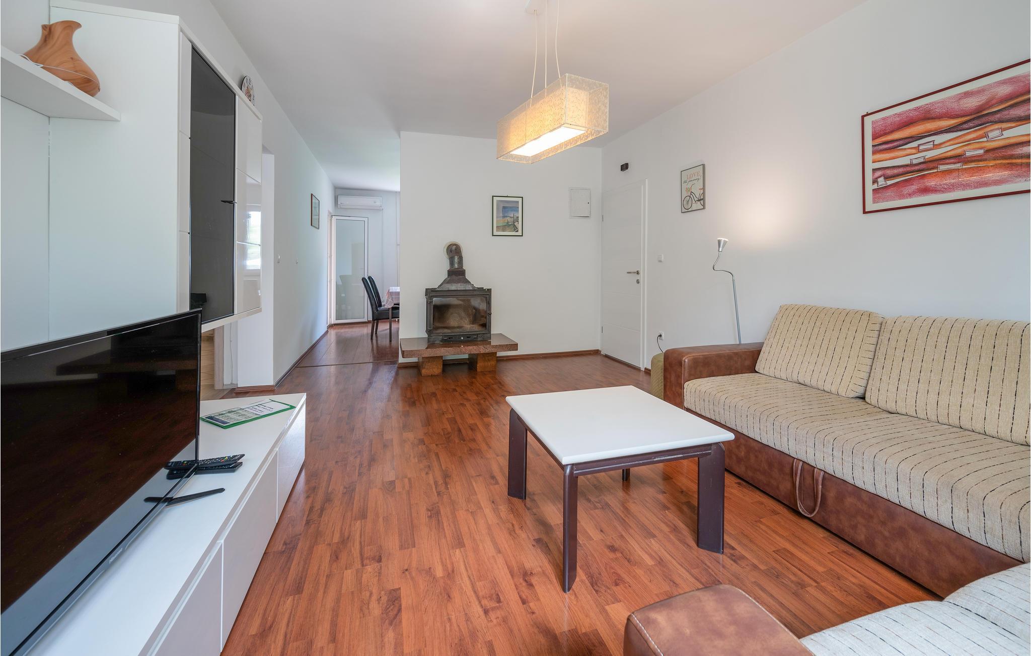 Dieses schöne Doppelhaus liegt im kleinen Dorf Vinkuran, nicht weit von der historischen Stadt Pula entfernt. Es besteht aus drei komplett möblierten und ausgestatteten Wohneinheiten, verbunden durch Innentreppen und einem sehr gut ausgestatteten Aktivitätsraum. Im Erdgeschoss befindet sich die größte Wohnung, in der Sie gemeinsam übernachten und essen können. Es gibt auch einen Ausgang zur schönen Terrasse mit Blick auf den Pool. Verbringen Sie hier schöne Momente und genießen Sie die lauen Sommerabende am Pool.
