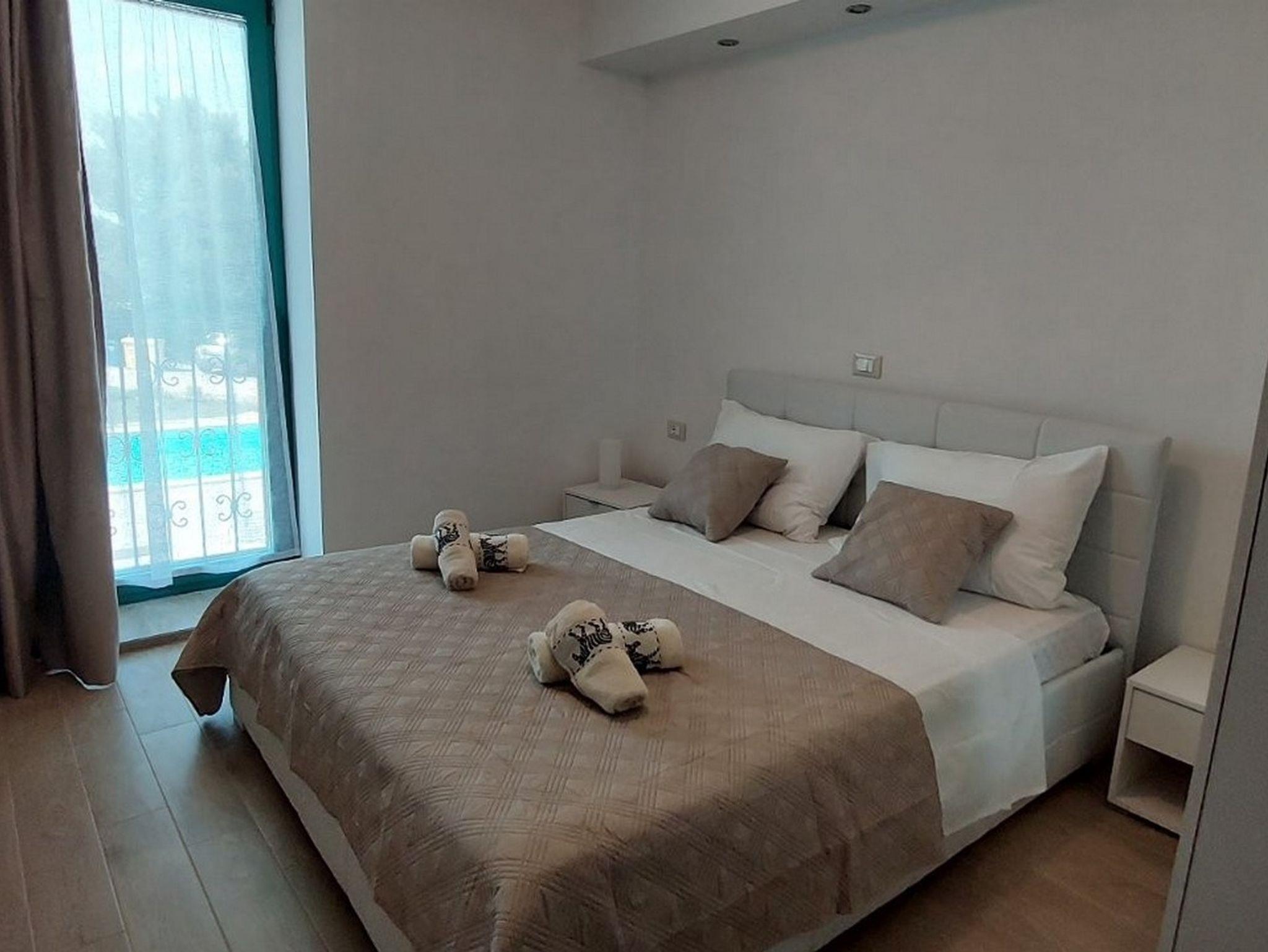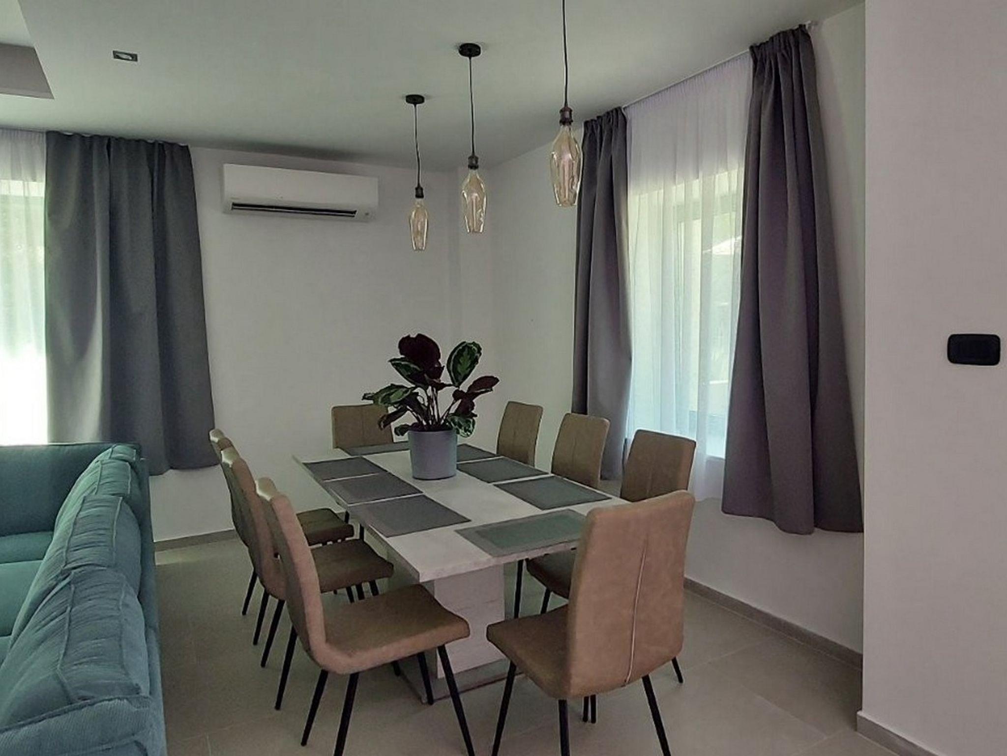 Ferienwohnung bietet Platz für 8 Gäste. Die Betten sind in Schlafzimmern, die es 4 gibt, innerhalb einer Gesamtfläche von 128m2, angeordnet. Es ist erlaubt, Speisen auf dem Gemeinschafts-Grill vorzubereiten. Während ihres Aufenthalts können sich Gäste im privaten Schwimmbad entspannen. Die reservierte Unterkunftseinheit hat keinen Balkon und keine Terrasse. IM PREIS INBEGRIFFEN: Kurtaxe, Endreinigung, Klimatisierung, Pool, Parkplatz, Internet, Kinderbett, Föhn, tragbarer Grill. Die Verfügbarkeit zusätzlicher Dienstleistungen in Ihrem reservierten Termin und die Preise derselben (falls nicht aufgeführt) müssen im Voraus überprüft werden. Zusätzliche Dienstleistungen die in der Zahlungsaufforderung nicht aufgeführt sind werden direkt beim Vermieter bezahlt, angenommen der Gast nutzt auch diese. Ermäßigung auf den Grundpreis: Gratistag 14=13 (bei einem Aufenthalt von 14 Tagen oder mehr erhalten Sie einen Gratistag für den Aufenthalt bis 31.12.26).