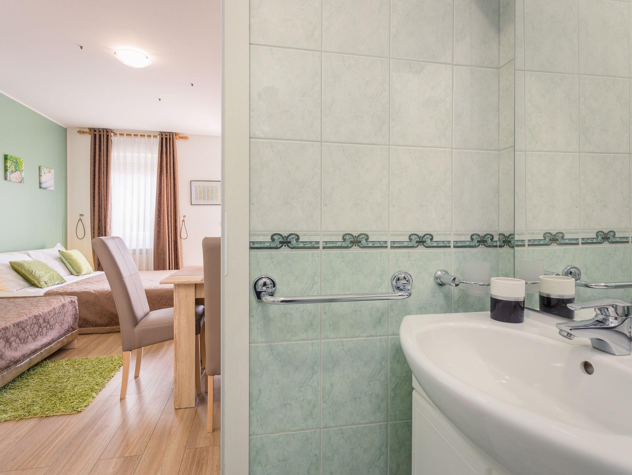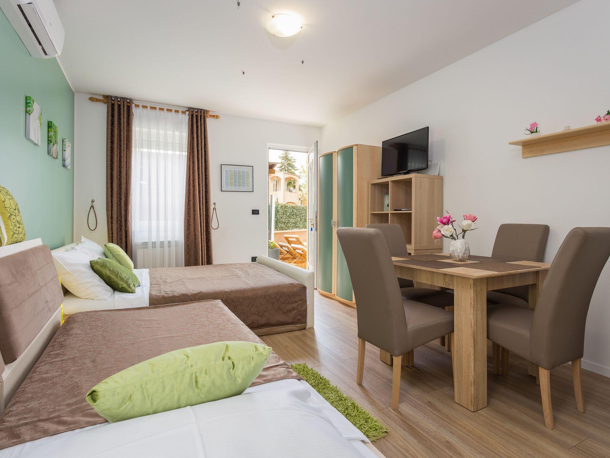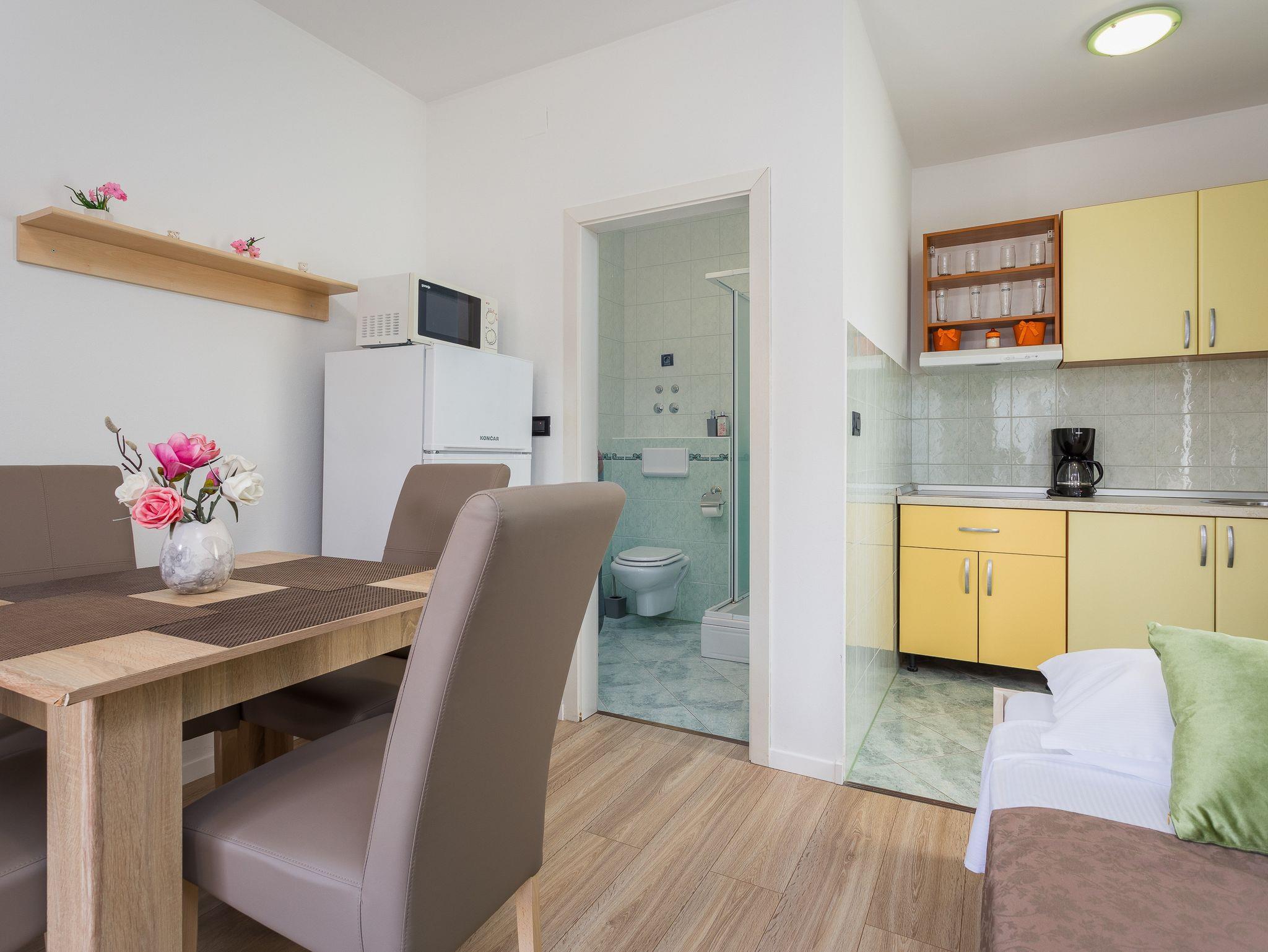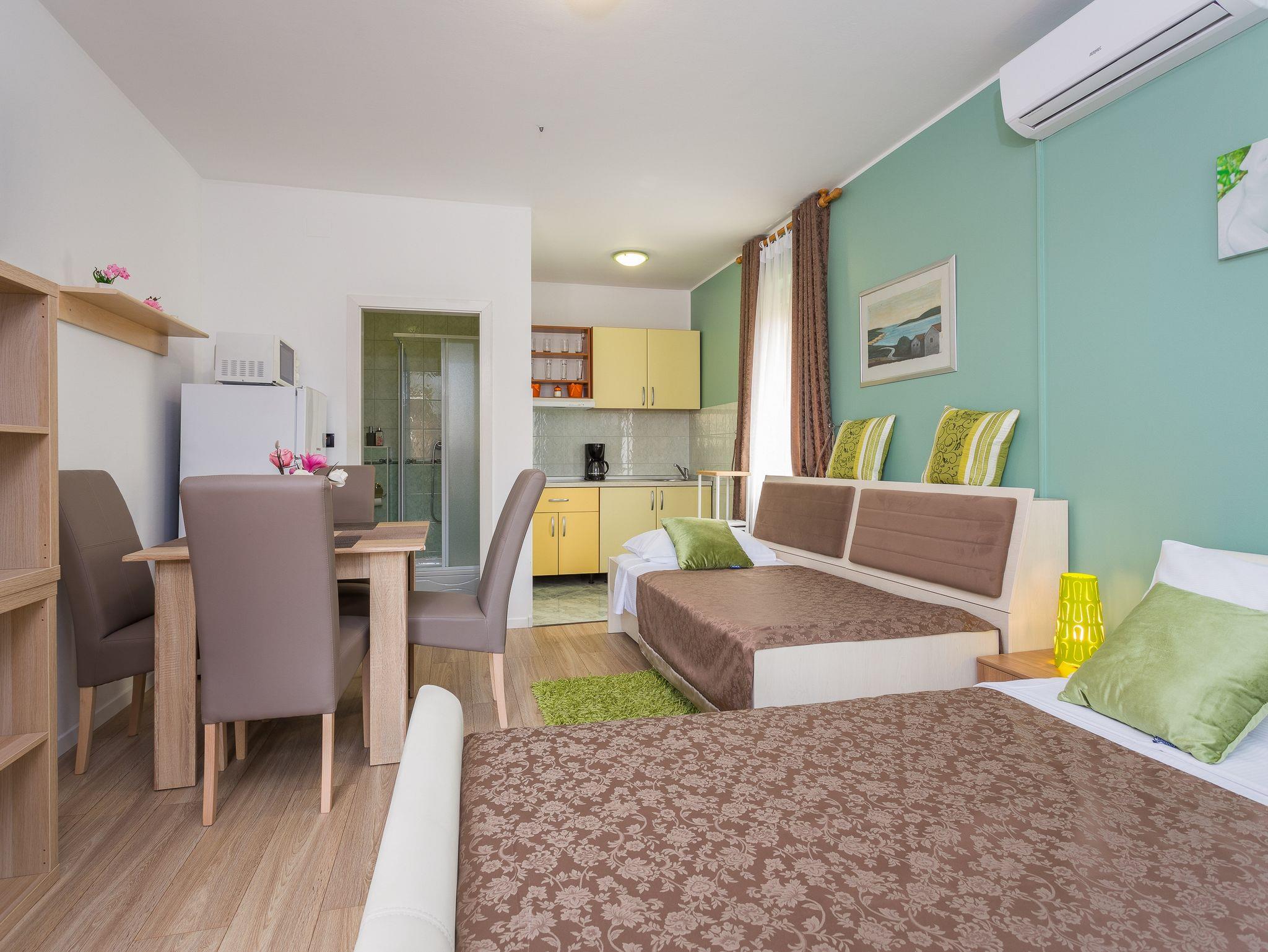 Studio bietet Platz für 4 Gäste. Die Betten sind in Schlafzimmern, die es 1 gibt, innerhalb einer Gesamtfläche von 26m2, angeordnet. Es ist erlaubt, Speisen auf dem Gemeinschafts-Grill vorzubereiten. Während ihres Aufenthalts können Gäste das gemeinsam zur Nutzung stehende Schwimmbad benutzen. Die reservierte Unterkunftseinheit hat keinen Balkon und keine Terrasse. In der gebuchten Unterkunftseinheit zahlt man am Ort ein Depositum ( der Preis ist an der Internetseite angeführt ). IM PREIS INBEGRIFFEN: Kurtaxe, Endreinigung, Klimatisierung, Zentralheizung, Pool, Parkplatz, Internet, Kinderbett, Bügeleisen, Bügelbrett, Föhn, tragbarer Grill, Sonnenschirm, Liegestühle. VERBINDLICHE ZUSÄTZLICHE KOSTEN: Kaution (100,00 € Einmalzahlung). Die Verfügbarkeit zusätzlicher Dienstleistungen in Ihrem reservierten Termin und die Preise derselben (falls nicht aufgeführt) müssen im Voraus überprüft werden. Zusätzliche Dienstleistungen die in der Zahlungsaufforderung nicht aufgeführt sind werden direkt beim Vermieter bezahlt, angenommen der Gast nutzt auch diese. Ermäßigung auf den Grundpreis: Gratistag 14=13 (bei einem Aufenthalt von 14 Tagen oder mehr erhalten Sie einen Gratistag für den Aufenthalt bis 31.12.26).