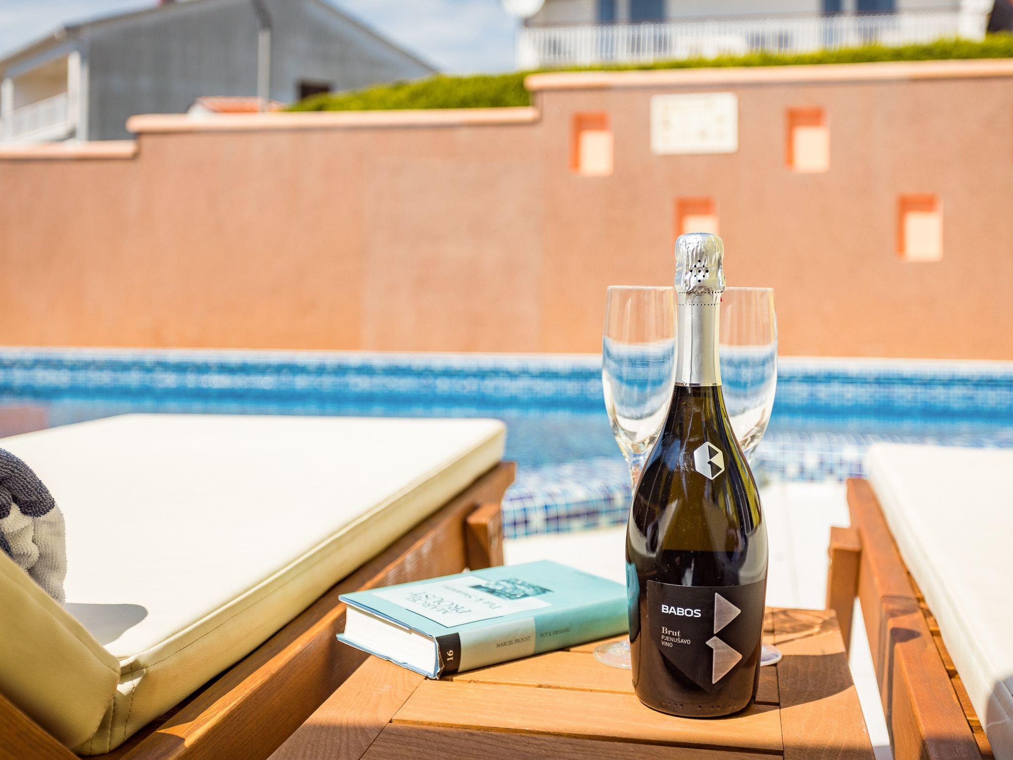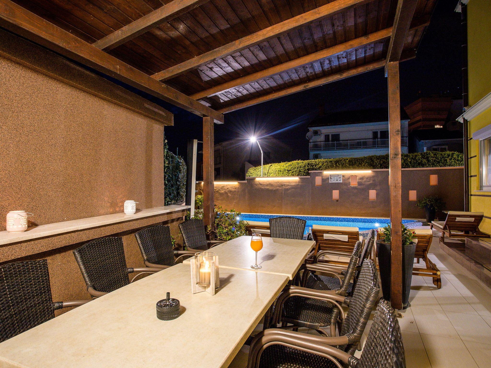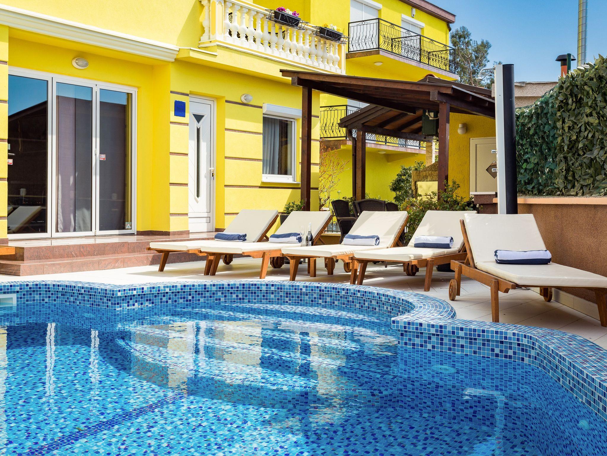 Umgebung des Objekts (Ordentlich), Hof (350m2, Kinderbereich, Sitzbereich), Parkplatz (Anzahl der Parkplätze: 2, Entfernung vom Objekt: im Hof), Pool: gemeinsam, Dimensionen: 6m x 4m x 1.35m, Wassertyp: Süßwasser, Heizung: Ja, Grill: gemeinsam, WiFi Internet, Föhn, Bügeleisen, Bügelbrett, Tragbarer Grill, Sonnenschirm, Liegestühle, Kinderbett