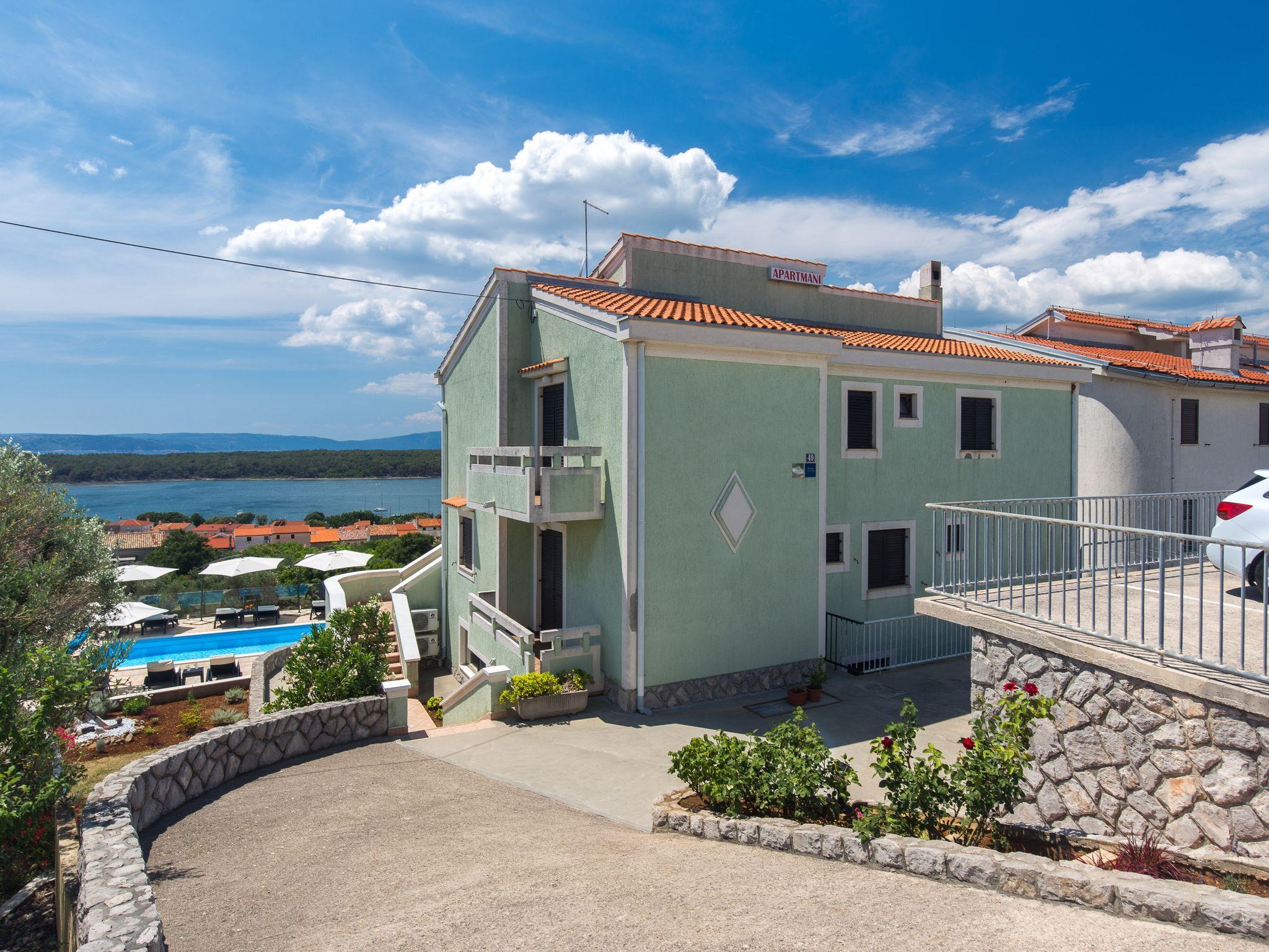 Ferienwohnungen mit Pool für Familien Punat, Krk - 5345, 1-Zimmer-Ferienwohnung mit Terrasse und Meerblick Punat, Krk A-5345-d