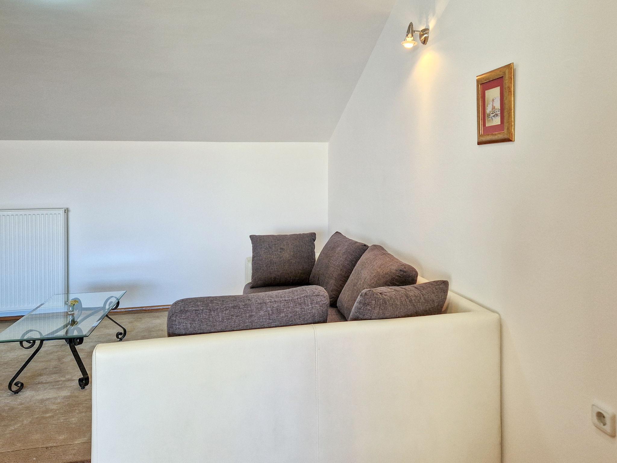 3-Zimmer-Wohnung 110 m2, im Dachgeschoss. Schön und gemütlich eingerichtet: abgeschrägtes Wohn-/Esszimmer 46 m2, Deckenhöhe 165 - 280 cm mit 1 Diwanbett (150 cm, Länge 190 cm), Sat-TV (Flachbildschirm), Klimaanlage. Ausgang zur Terrasse. 1 abgeschrägtes Zimmer, Deckenhöhe 165 - 280 cm mit 1 Doppelbett (2 x 90 cm, Länge 200 cm). 1 abgeschrägtes Zimmer, Deckenhöhe 165 - 280 cm mit 2 Betten (90 cm, Länge 200 cm). Abgeschrägte, offene Küche (4 Kochplatten, Backofen, Geschirrspüler, Mikrowelle, elektrische Kaffeemaschine), Deckenhöhe 165 - 280 cm. Dusche/WC, sep. WC, Bad/Dusche/WC. Heizung, Klimaanlage. Heizung nur verfügbar von 01.11. bis 01.05. Terrasse 22 m2, überdacht, Terrasse 7 m2, überdacht. Terrassenmöbel. Zur Verfügung: Waschmaschine, Babybett. Internet (WLAN, gratis). Bitte beachten: Maximal 1 Haustier/Hund erlaubt. Eigener Eingang.
