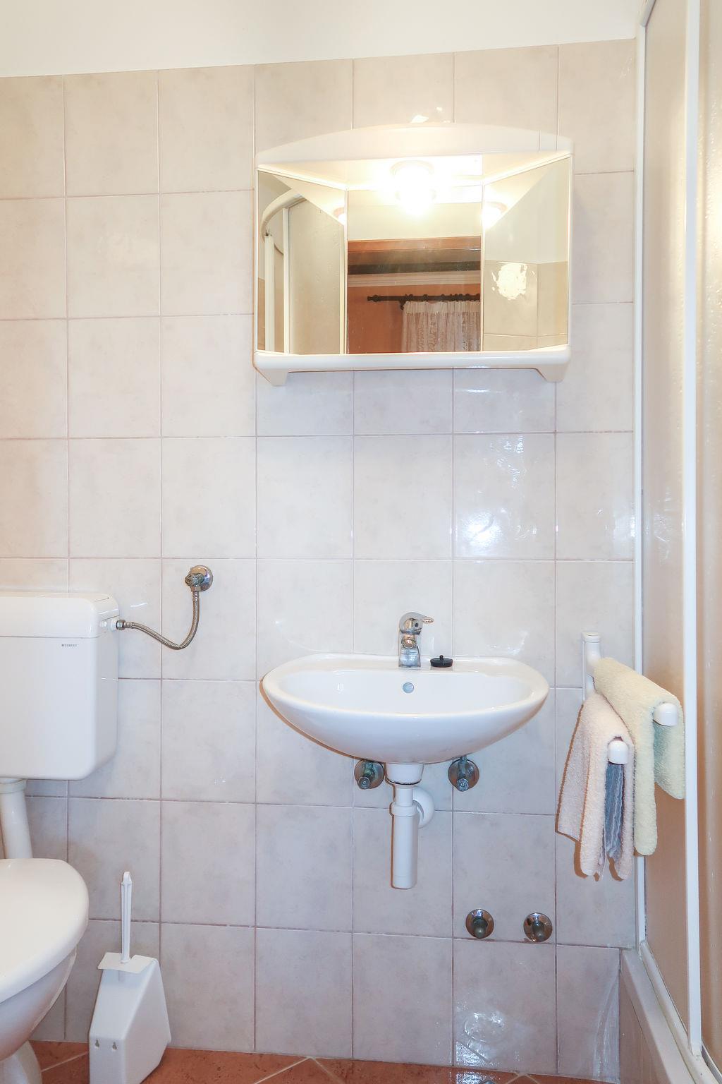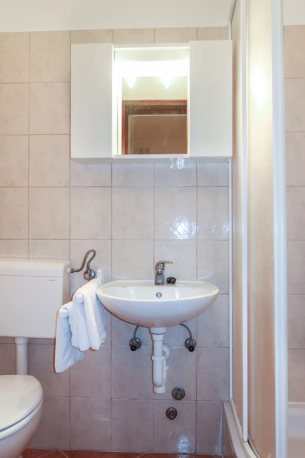 Mehrfamilienhaus "Noa". 1.9 km vom Zentrum von Barbat, 6.5 km vom Zentrum von Rab, 17 km vom Zentrum von Lopar, 20 m vom Meer, 20 m vom Strand. Zur Mitbenutzung: Grundstück 1'500 m2, Bäumen. Terrasse, Gartenmöbel, Grill. Im Hause: Internetzugang, Waschmaschine (zur Mitbenutzung, extra). Parkplatz auf dem Grundstück. Einkaufsgeschäft 1.6 km, Restaurant 70 m, Bushaltestelle 650 m, Sandstrand, Kieselstrand 300 m, betonierter Strand 20 m. Bitte beachten: private Bootsanlegestelle (extra) auf Anfrage.