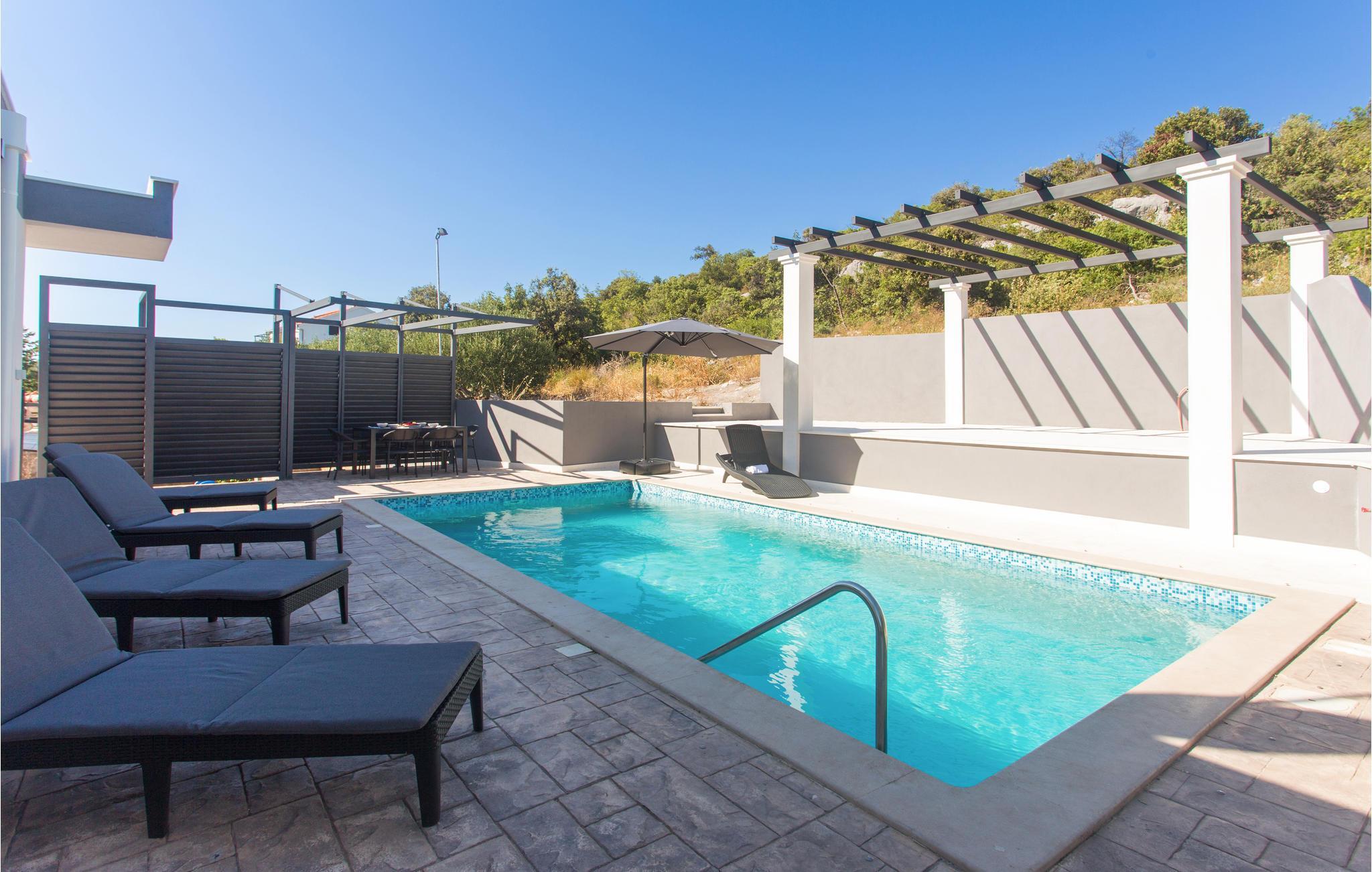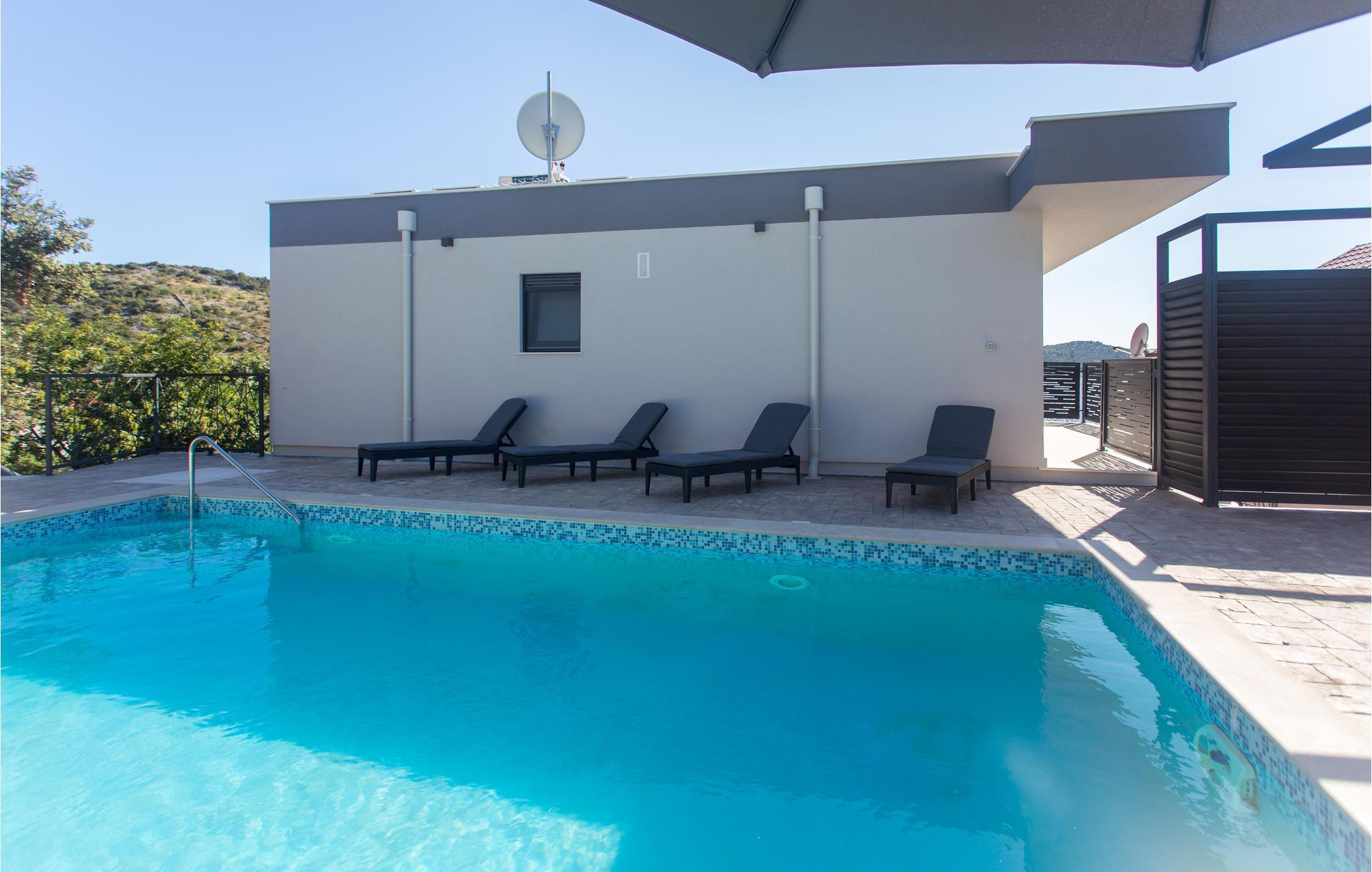 Genießen Sie eine fantastische Aussicht auf das Meer in diesem attraktiven Ferienhaus mit Pool.