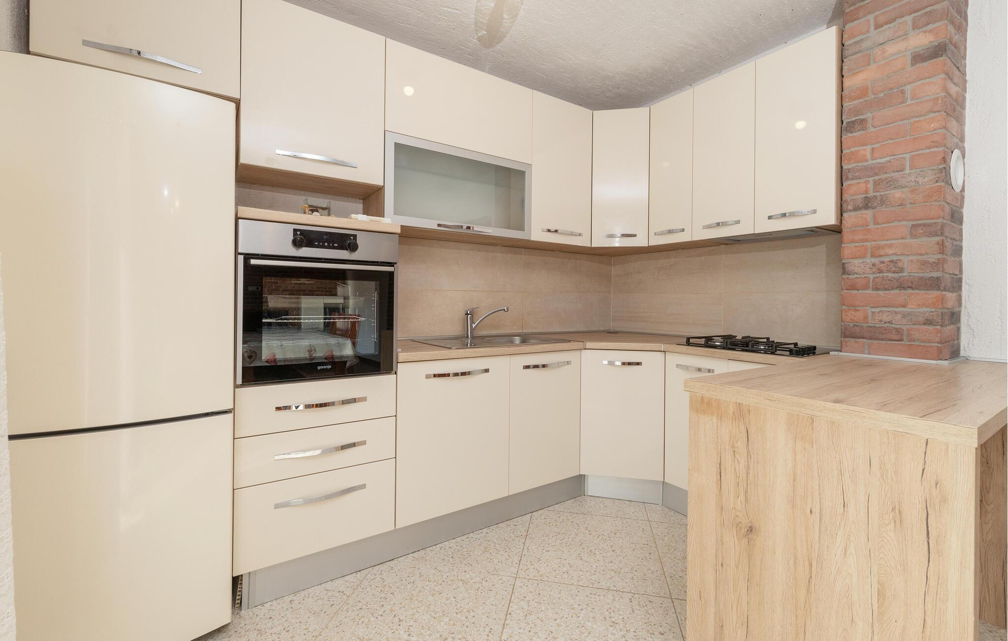 Gönnen Sie sich eine Auszeit vom Alltag und tauchen Sie ein in die Ruhe und den Charme des idyllischen Küstenortes Sveti Juraj. Umgeben von mediterranem Flair und atemberaubenden Aussichten können Sie in Ihrer Ferienwohnung, die sich in einem privaten Haus am Fuße des Velebit-Gebirges befindet, die Seele baumeln lassen. Beginnen Sie Ihren Tag auf dem Balkon, der einen herrlichen Blick auf die Küste bietet. Genießen Sie Ihren Morgenkaffee und lassen Sie den Blick über die malerische Umgebung schweifen. Die offene Wohnküche lädt dazu ein, köstliche Mahlzeiten zuzubereiten, die Sie im Essbereich oder auf der Terrasse genießen können.
