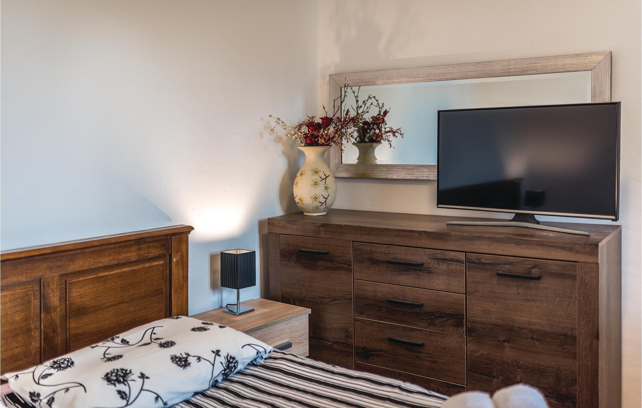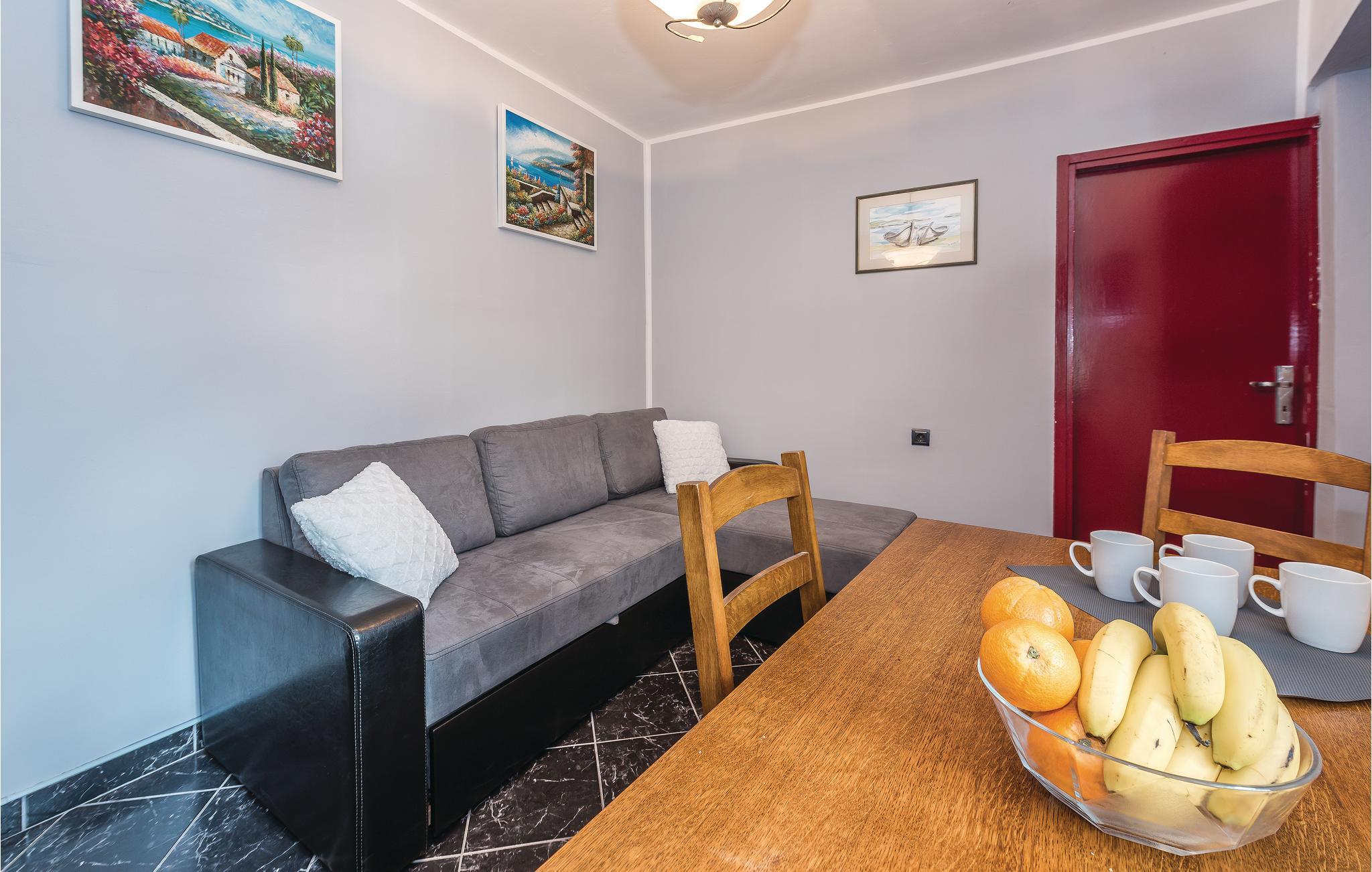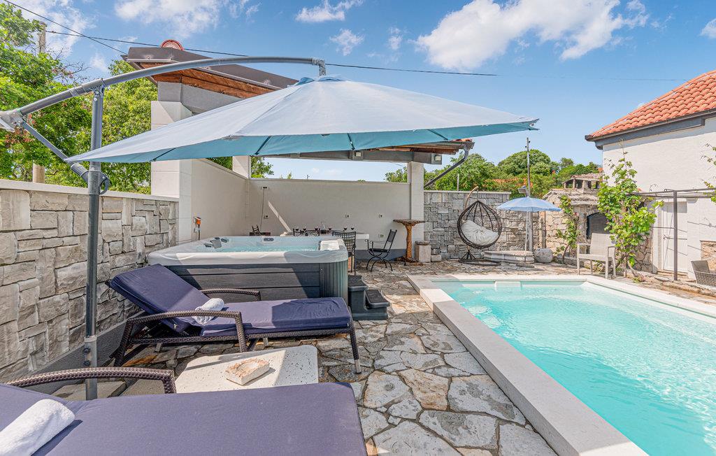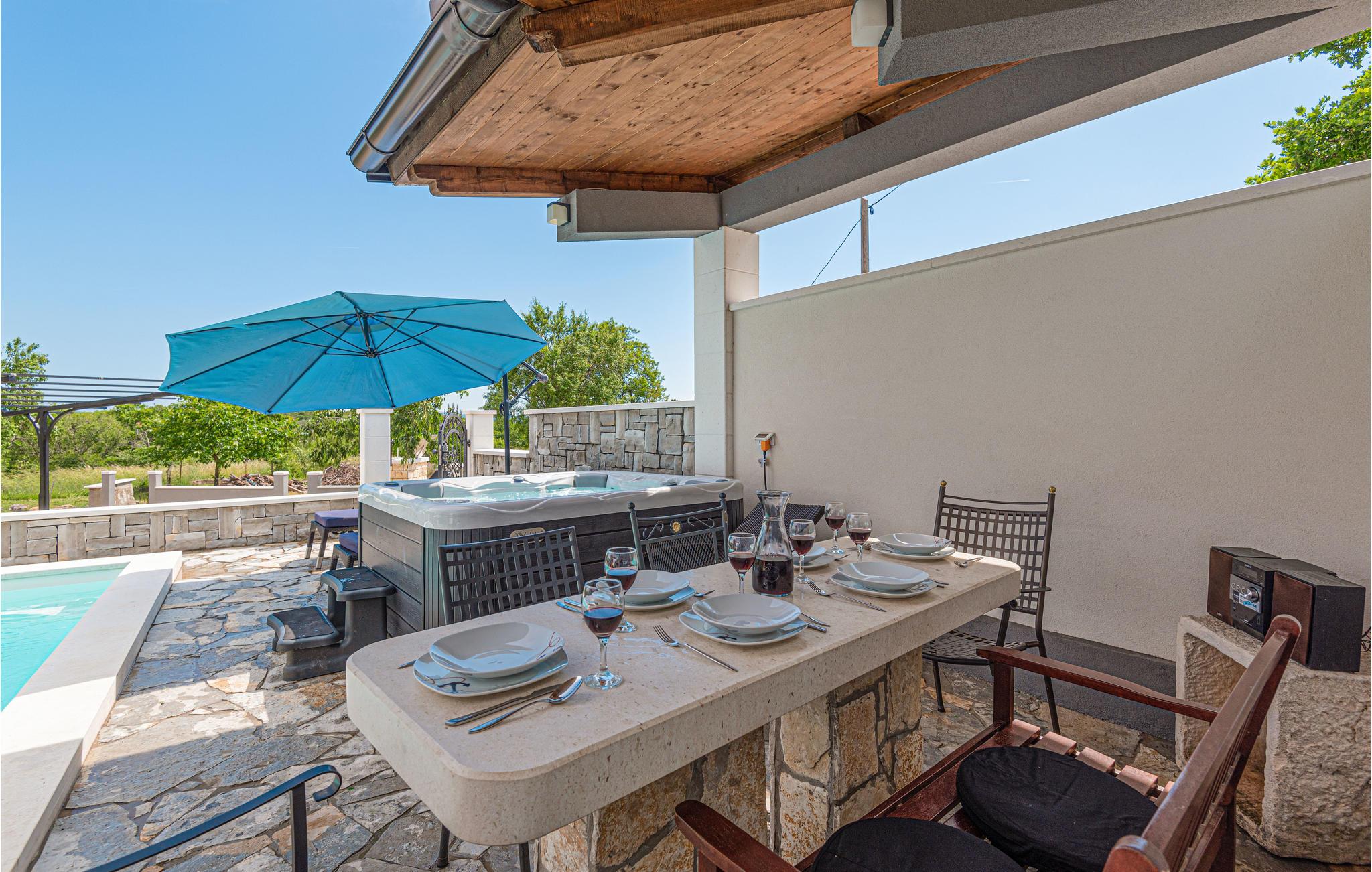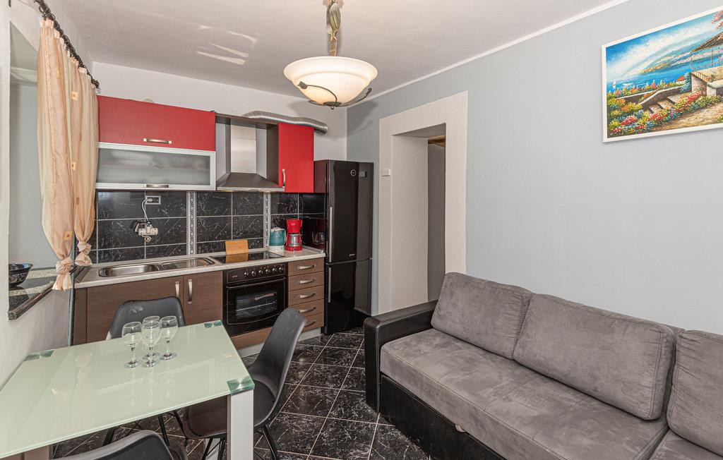 Wenn Sie dem hektischen Alltag entfliehen und unberührte Natur und einzigartige Sonnenuntergänge genießen möchten, ist dieses romantische Ferienhaus die ideale Wahl für Ihren Urlaub. Im ersten Stock des Hauses befinden sich die Küche und ein Wohnzimmer sowie ein Schlafzimmer, während sich im Erdgeschoss das separate Bad befindet, das Sie über eine Außentreppe erreichen. Genießen Sie den großen Garten und erfrischen Sie sich im Pool, oder entspannen Sie sich bei einem Glas Wein auf den Liegen. Es gibt auch eine überdachte Terrasse mit Grill, ideal für abendliches Zusammensitzen. Die wunderschöne unberührte Natur ist ideal zum Radfahren oder Wandern. Nicht weit von der Unterkunft entfernt liegt der Nationalpark Krka.