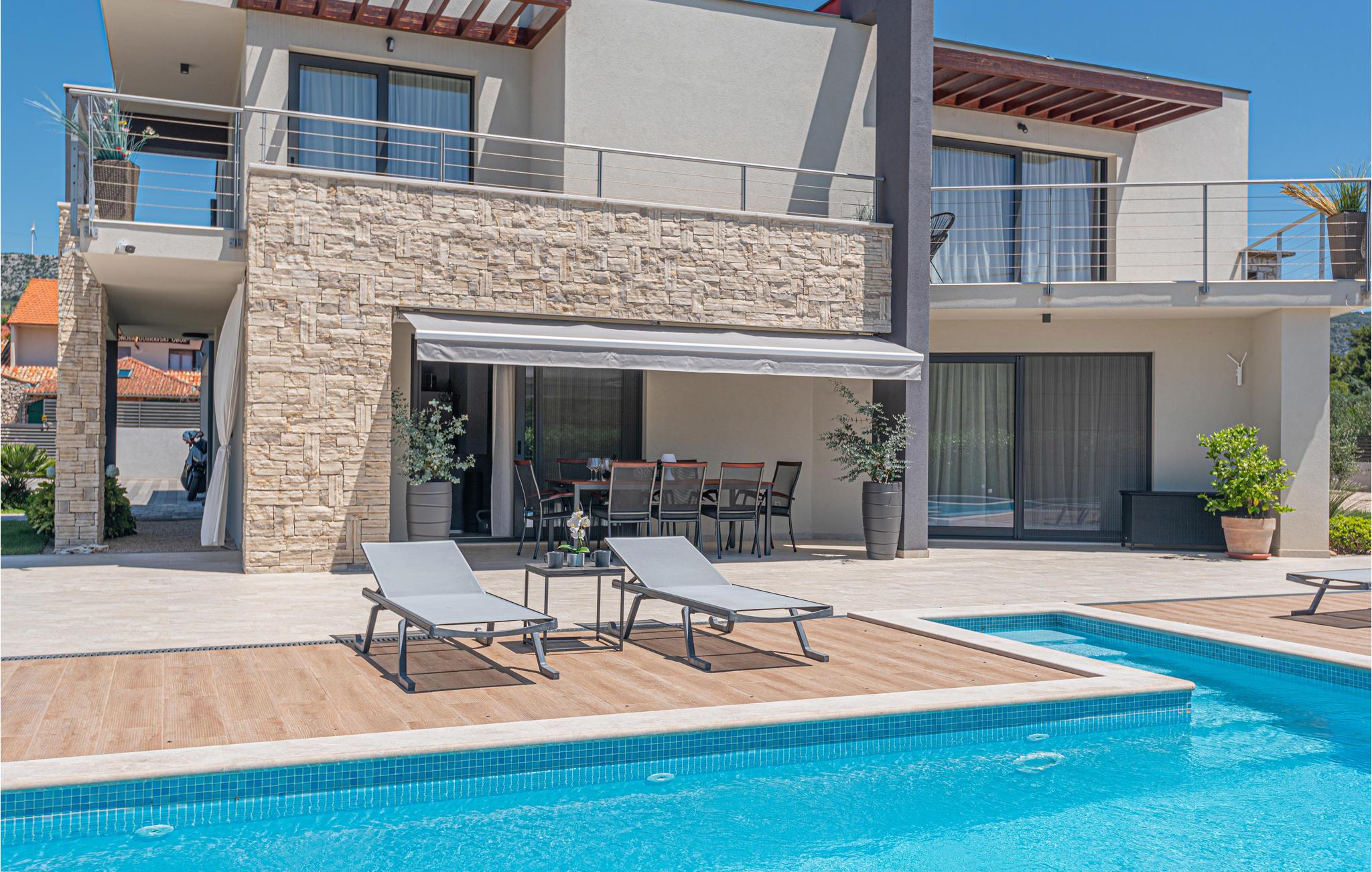 Dieses Luxushaus in Dubrava wurde entworfen, um einen unvergesslichen Urlaub mit Ihrer Familie oder Freunden zu verbringen. Es erstreckt sich über zwei Etagen, die durch Innentreppen miteinander verbunden sind.
