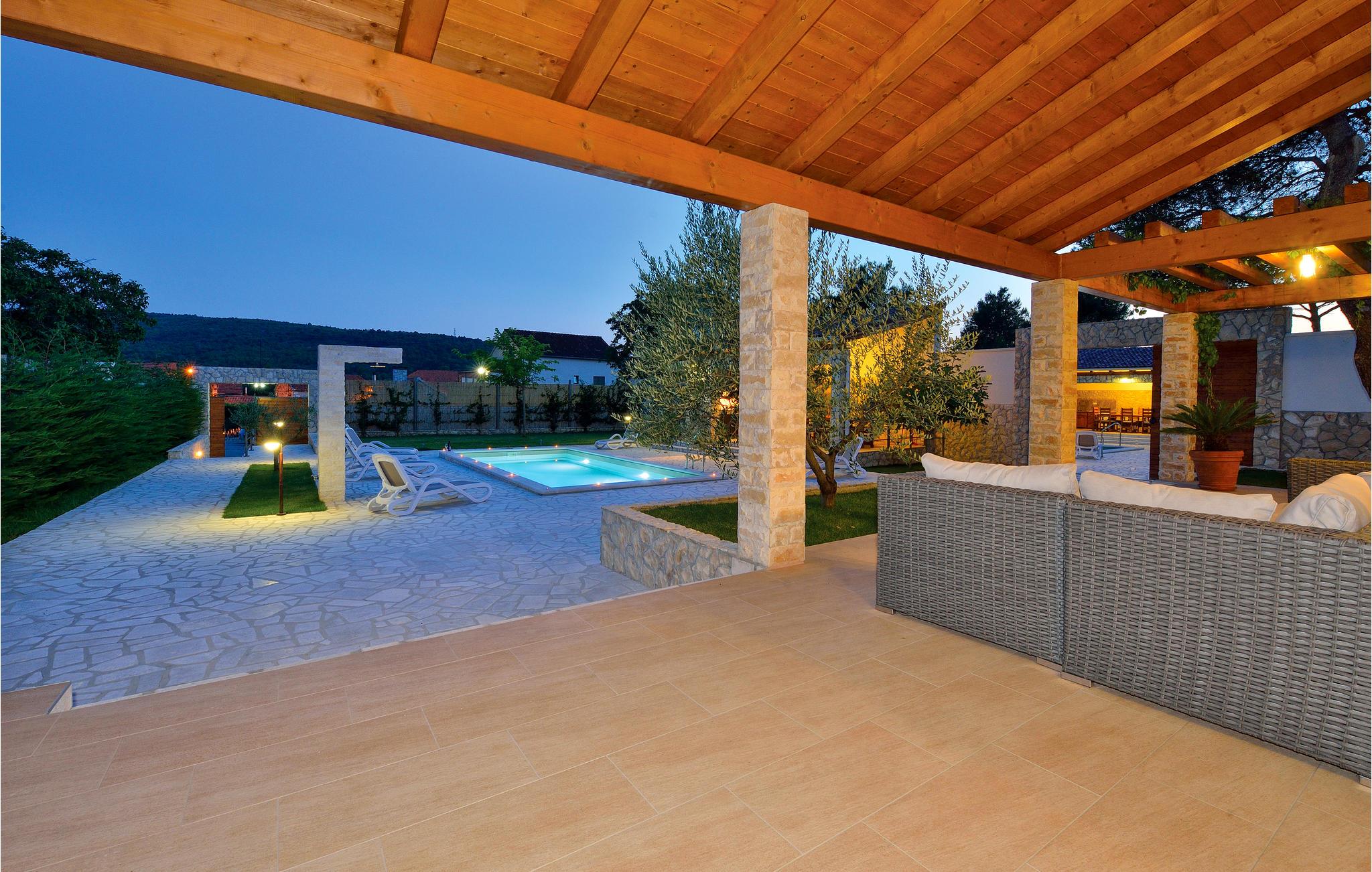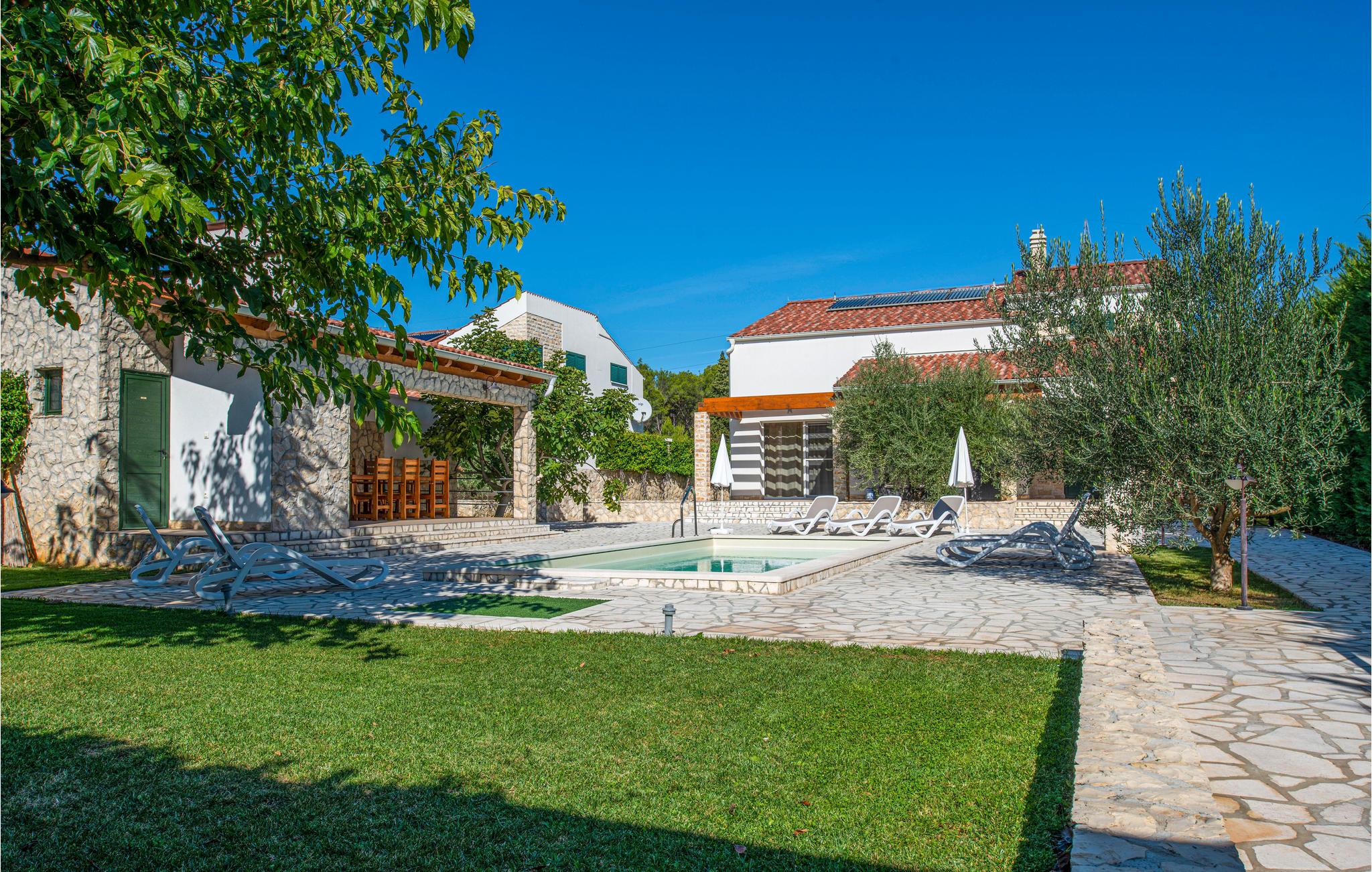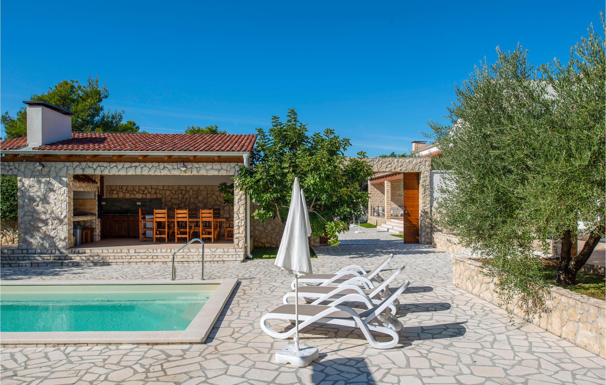 Schönes Ferienhaus in der Nähe von Sibenik und vom Nationalpark Krka. Im Erdgschoss sind ein Schlafzimmer mit Bad, Küche mit Wohnzimmer und ein WC. Im ersten Stock befinden sich noch zwei Schlafzimmer mit Bädern. Verbringen Sie Ihre Zeit im geräumigen Außenbereich mit Swimmingpool und beim überdachten Häuschen, wo sich ein Grill und noch ein WC befinden. Ein Fleckchen Erde wie geschaffen zum Entspannen. Ca. 10 Autominuten trennen Sie von zahlreichen Stränden. Erleben Sie das umfangreiche Unterhaltungsprogramm, dass Ihnen der Ferienort Vodice in den Sommermonaten bietet. Besuchen Sie auch die Stadt Sibenik, und unternehmen Sie Bootsausflüge auf die umliegenden Inseln. Gleich neben dem Haus liegt die Unterkunft CDV680, mit dieser teilen Sie sich einen kleinen Spielplatz. Überdachte Parkplätze verfügbar.