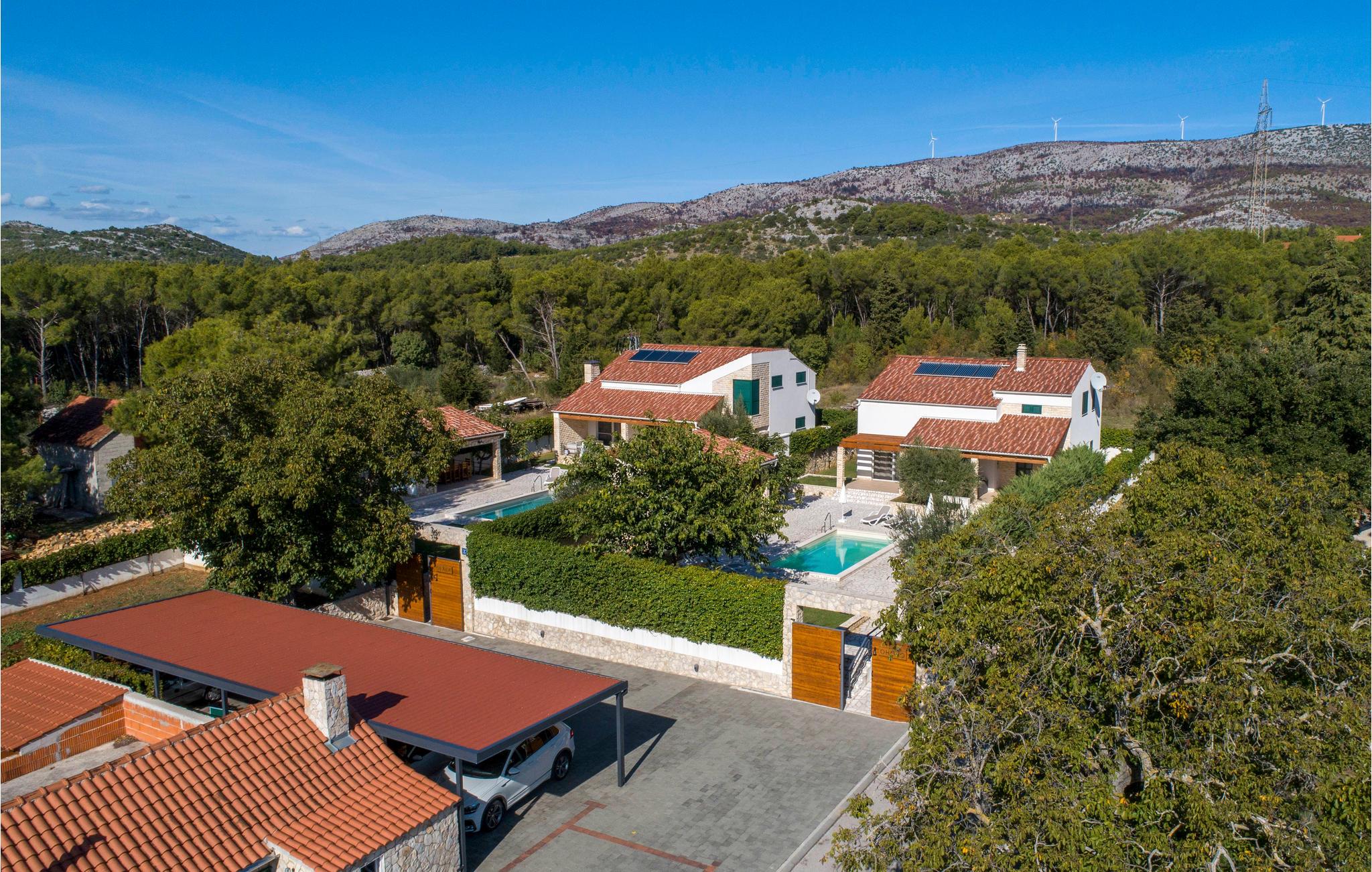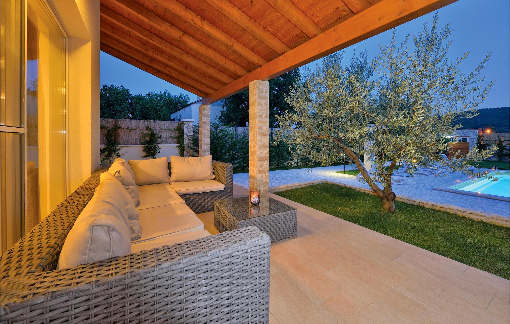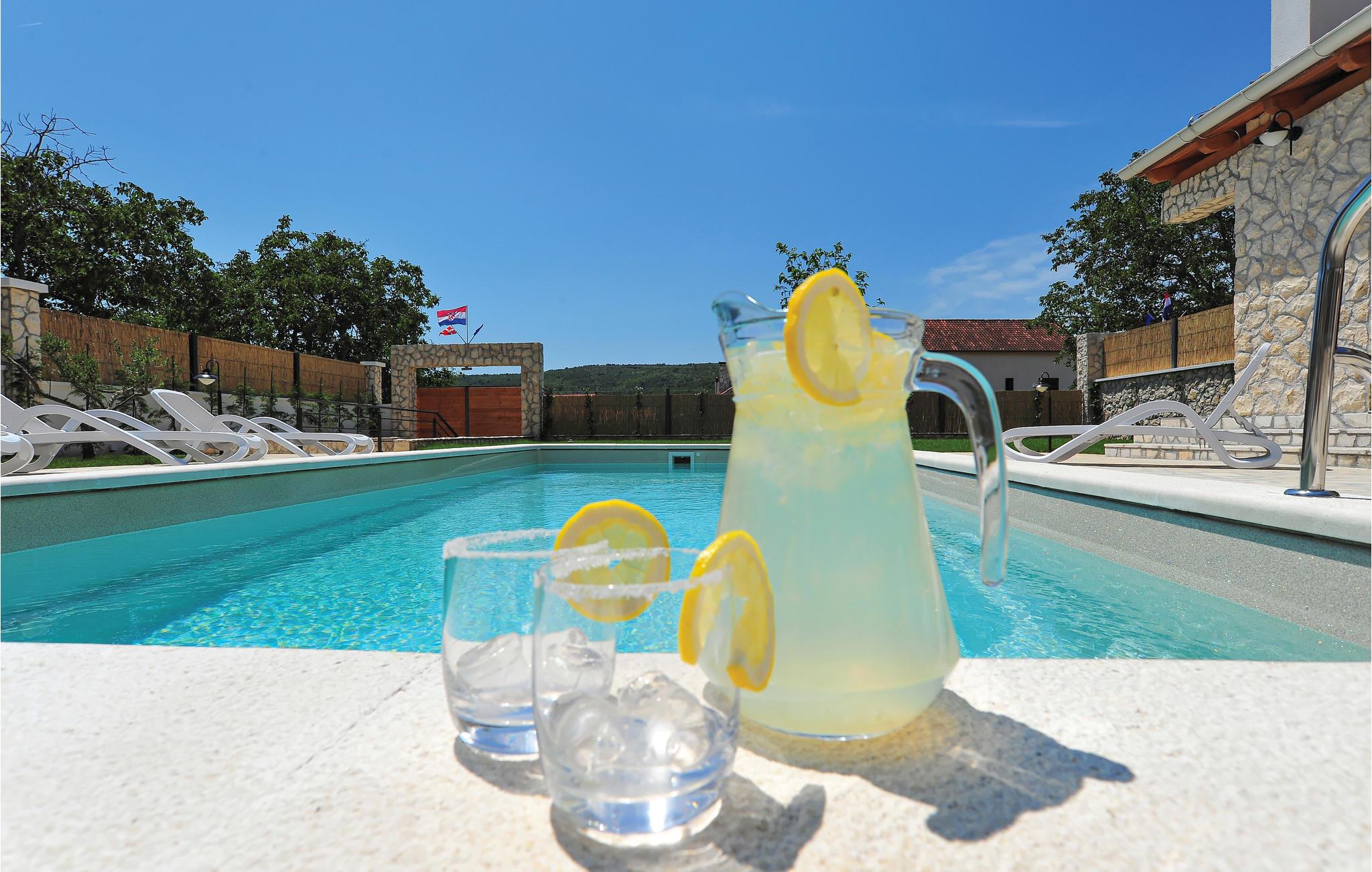 Schönes Ferienhaus in der Nähe von Sibenik und vom Nationalpark Krka. Im Erdgschoss sind ein Schlafzimmer mit Bad, Küche mit Wohnzimmer und ein WC. Im ersten Stock befinden sich noch zwei Schlafzimmer mit Bädern. Verbringen Sie Ihre Zeit im geräumigen Außenbereich mit Swimmingpool und beim überdachten Häuschen, wo sich ein Grill und noch ein WC befinden. Ein Fleckchen Erde wie geschaffen zum Entspannen. Ca. 10 Autominuten trennen Sie von zahlreichen Stränden. Erleben Sie das umfangreiche Unterhaltungsprogramm, dass Ihnen der Ferienort Vodice in den Sommermonaten bietet. Besuchen Sie auch die Stadt Sibenik, und unternehmen Sie Bootsausflüge auf die umliegenden Inseln. Gleich neben dem Haus liegt die Unterkunft CDV680, mit dieser teilen Sie sich einen kleinen Spielplatz. Überdachte Parkplätze verfügbar.