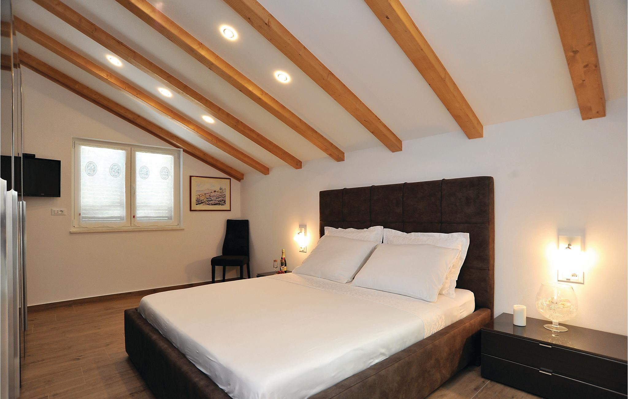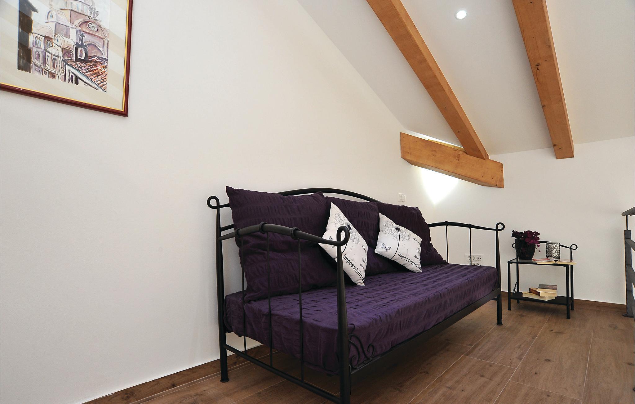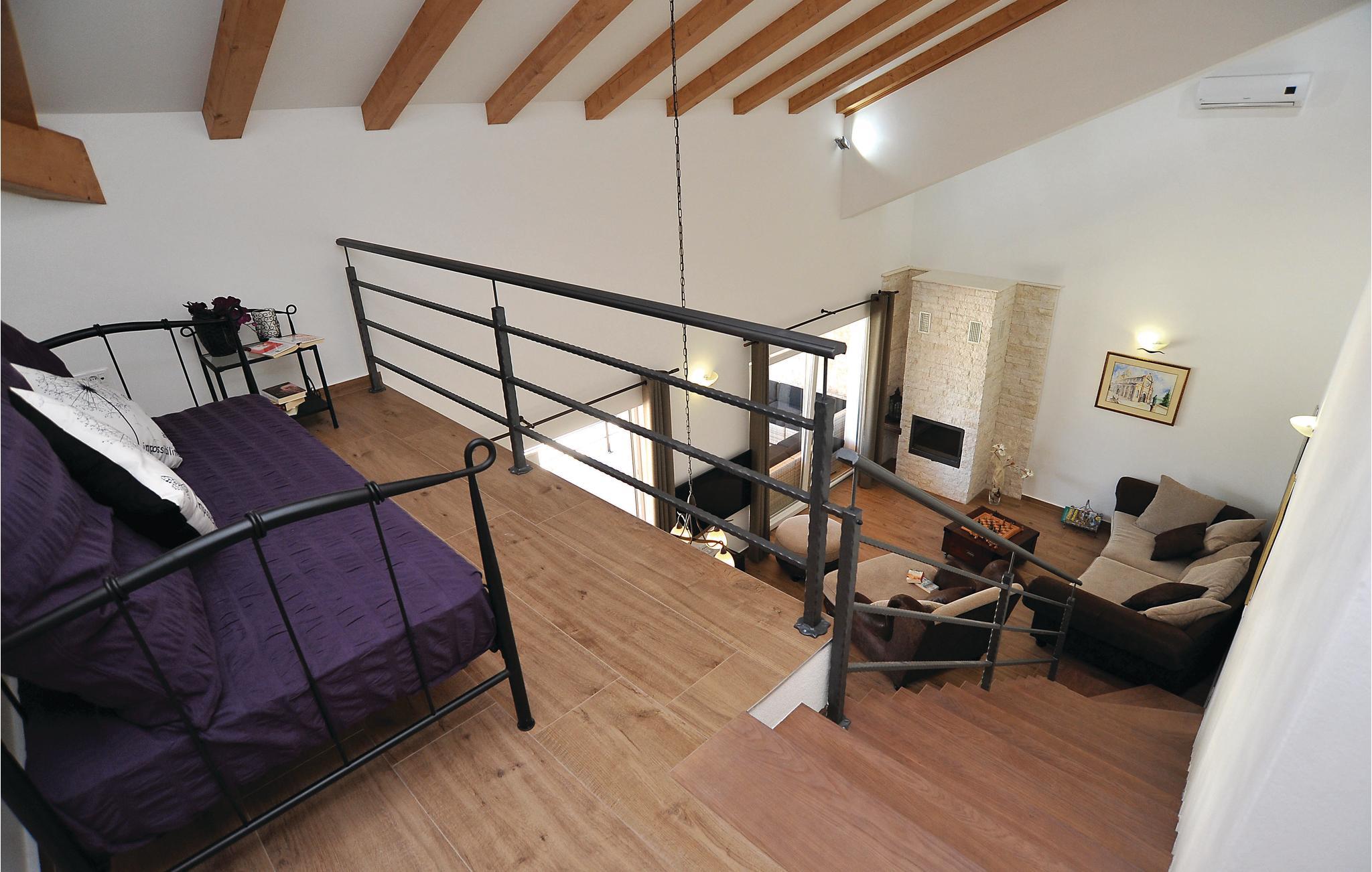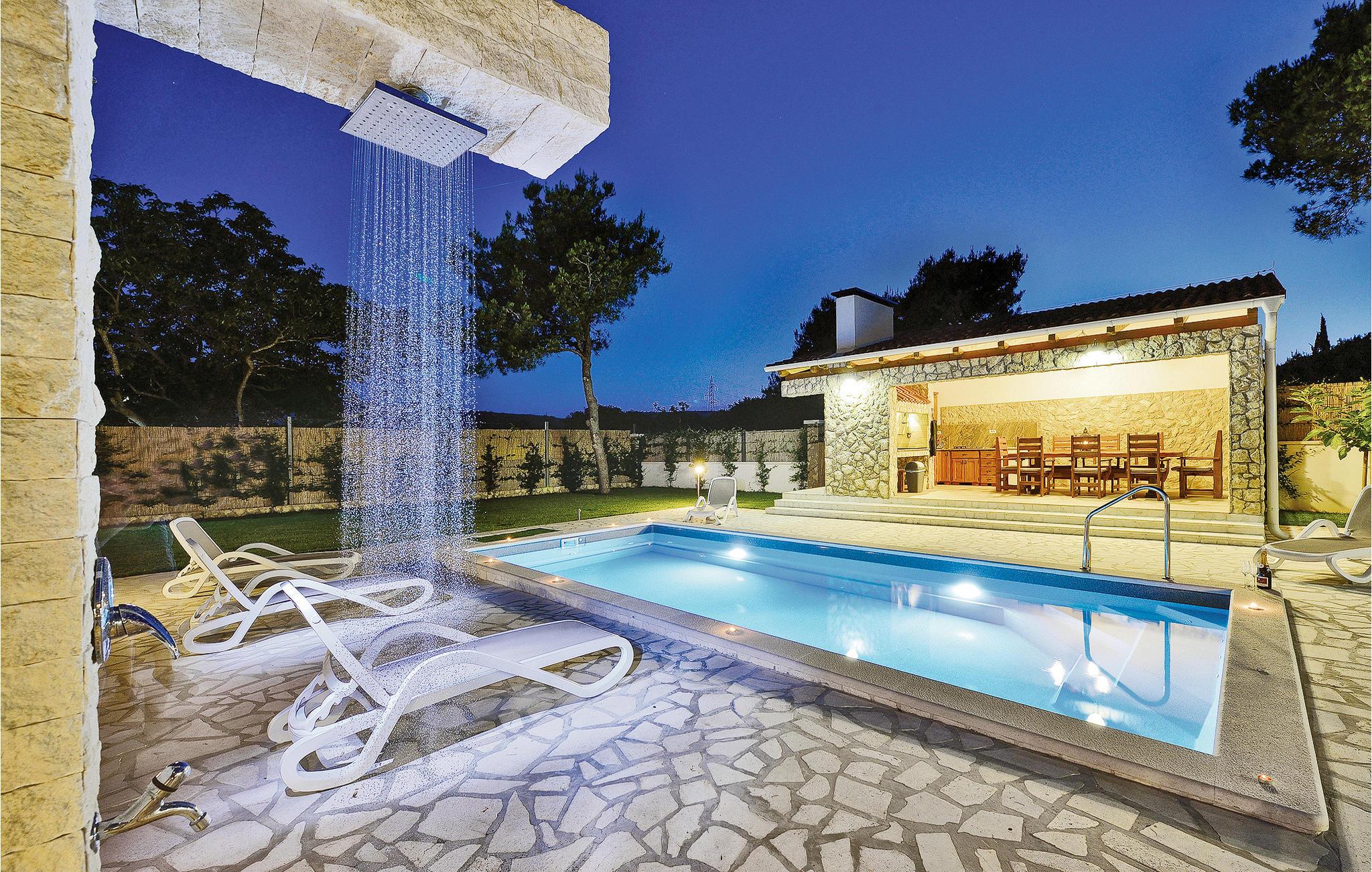 In der Nähe der Stadt Sibenik, im Ort Dubrava liegt dieses luxuriöse Ferienhaus für 8 Personen. Im Erdgeschoss liegen ein Schlafzimmer mit Badezimmer, eine zusätzliche Toilette, eine Küche mit Wohnbereich und der Ausgang auf die Terrasse mit dem Swimmingpool. Im Obergeschoss sind noch zwei Schlafzimmer mit Badezimmern, während auf der Galerie ein Schlafsofa steht. Im Garten sind ein überdachtes Häuschen sowie ein Grill und noch eine weitere Toilette. Alle Schlafzimmer sind klimatisiert und verfügen über je einen Fernseher. Erfrischen Sie sich im Pool, und sonnen Sie sich auf der Terrasse in dieser ruhigen Gegend. Etwa 10 Minuten Autofahrt trennen Sie von dem Nationalpark Krka, den Sie sich nicht entgehen lassen sollten. Im Sommer bietet die Stadt Sibenik viele Veranstaltungen. Gleich neben dem Haus liegt die Unterkunft CDV508, mit dieser teilen Sie sich einen kleinen Spielplatz. Überdachte Parkplätze verfügbar.