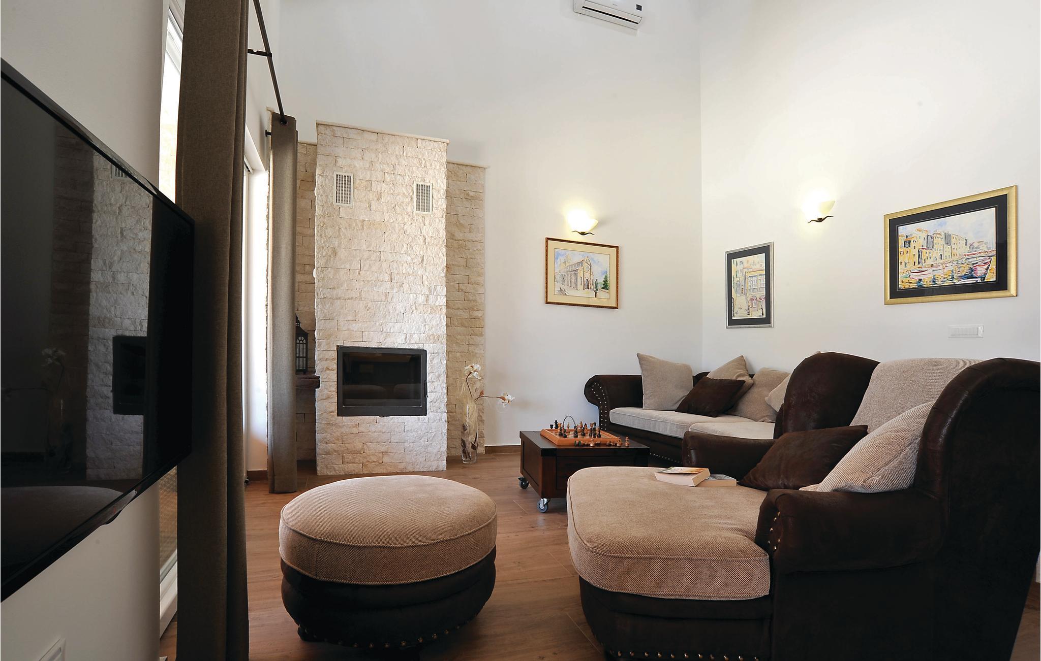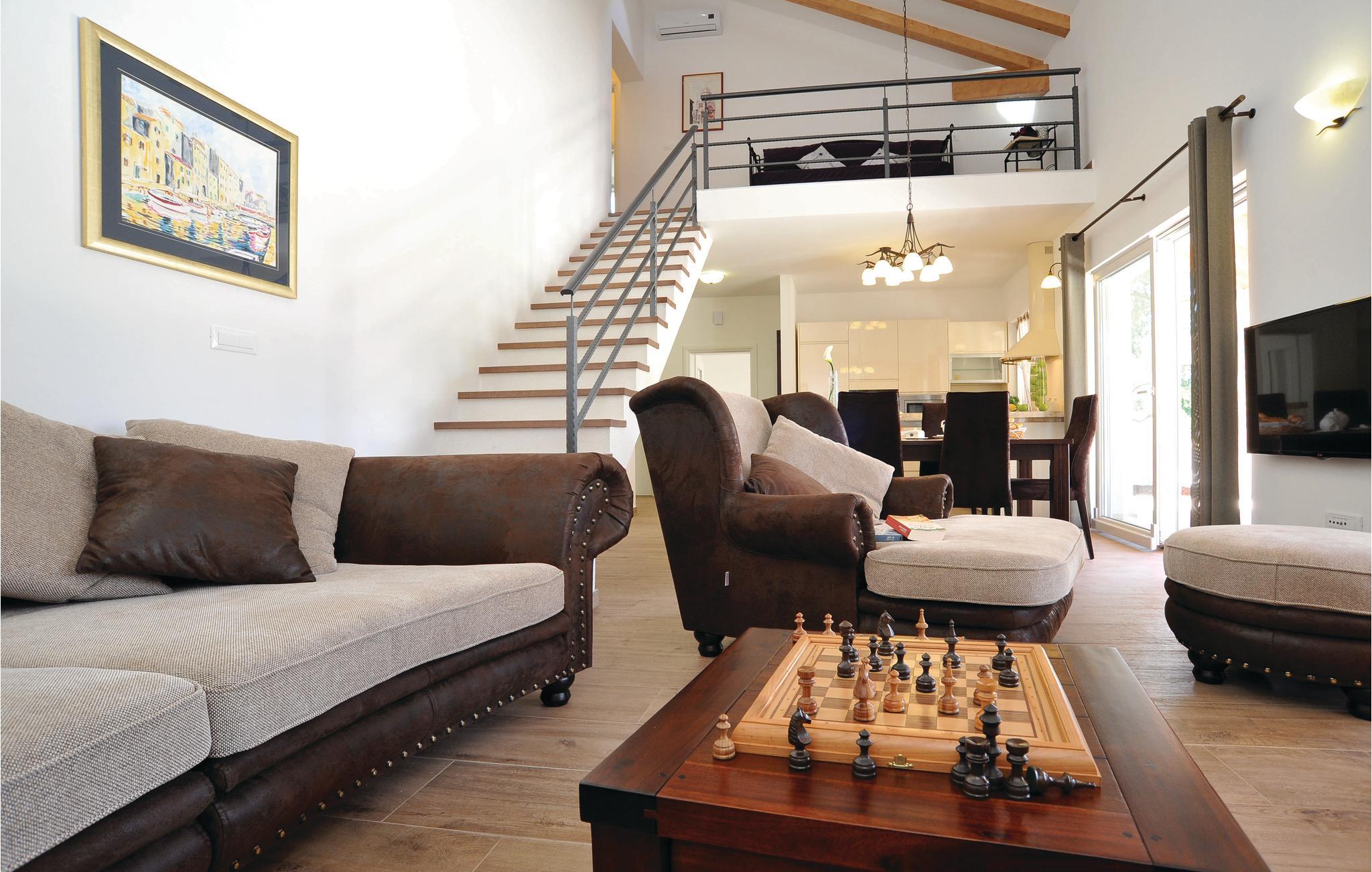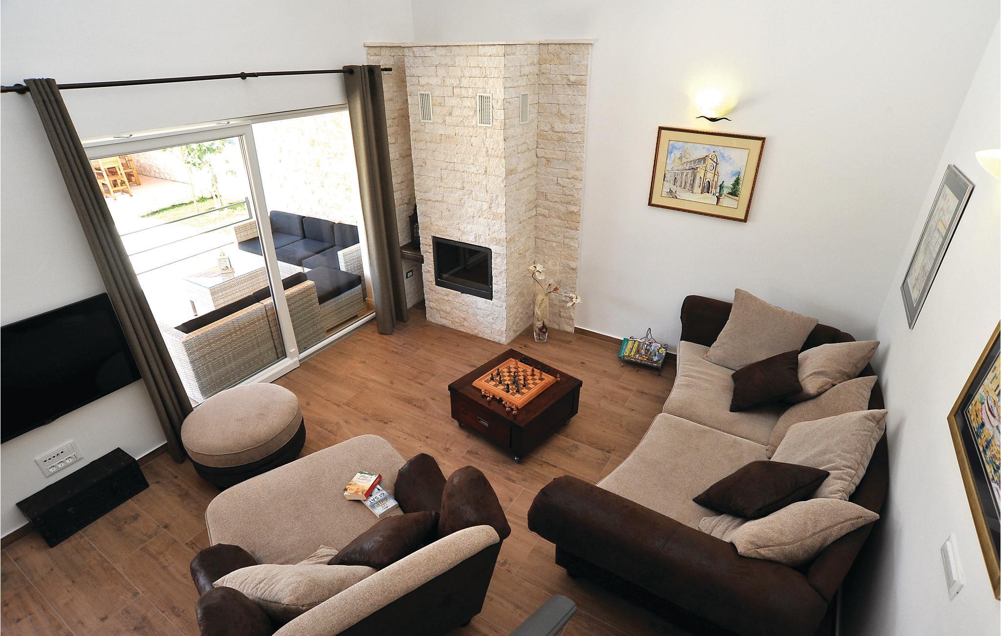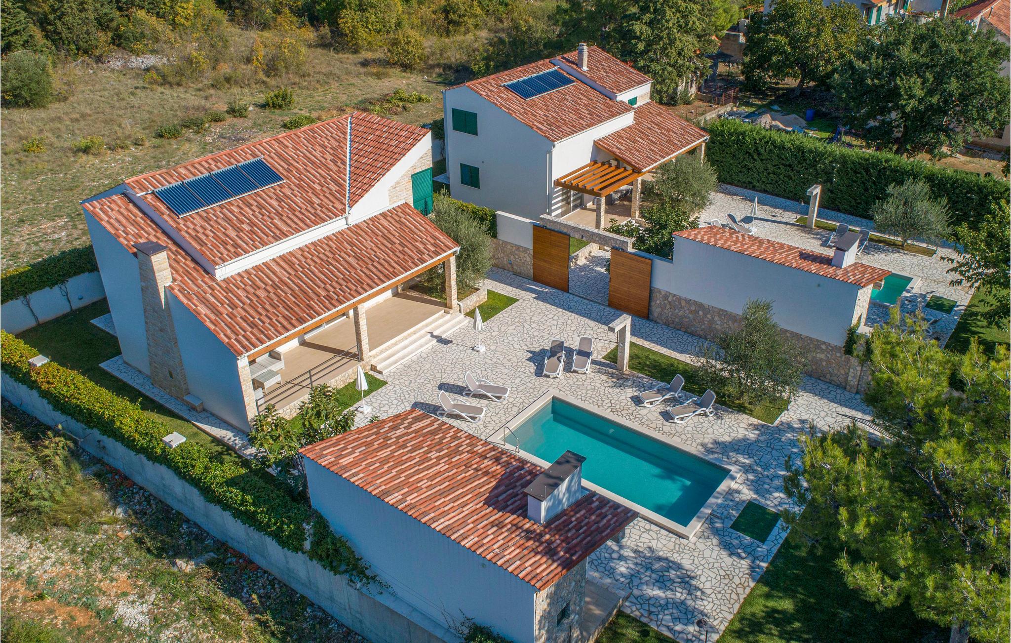 In der Nähe der Stadt Sibenik, im Ort Dubrava liegt dieses luxuriöse Ferienhaus für 8 Personen. Im Erdgeschoss liegen ein Schlafzimmer mit Badezimmer, eine zusätzliche Toilette, eine Küche mit Wohnbereich und der Ausgang auf die Terrasse mit dem Swimmingpool. Im Obergeschoss sind noch zwei Schlafzimmer mit Badezimmern, während auf der Galerie ein Schlafsofa steht. Im Garten sind ein überdachtes Häuschen sowie ein Grill und noch eine weitere Toilette. Alle Schlafzimmer sind klimatisiert und verfügen über je einen Fernseher. Erfrischen Sie sich im Pool, und sonnen Sie sich auf der Terrasse in dieser ruhigen Gegend. Etwa 10 Minuten Autofahrt trennen Sie von dem Nationalpark Krka, den Sie sich nicht entgehen lassen sollten. Im Sommer bietet die Stadt Sibenik viele Veranstaltungen. Gleich neben dem Haus liegt die Unterkunft CDV508, mit dieser teilen Sie sich einen kleinen Spielplatz. Überdachte Parkplätze verfügbar.