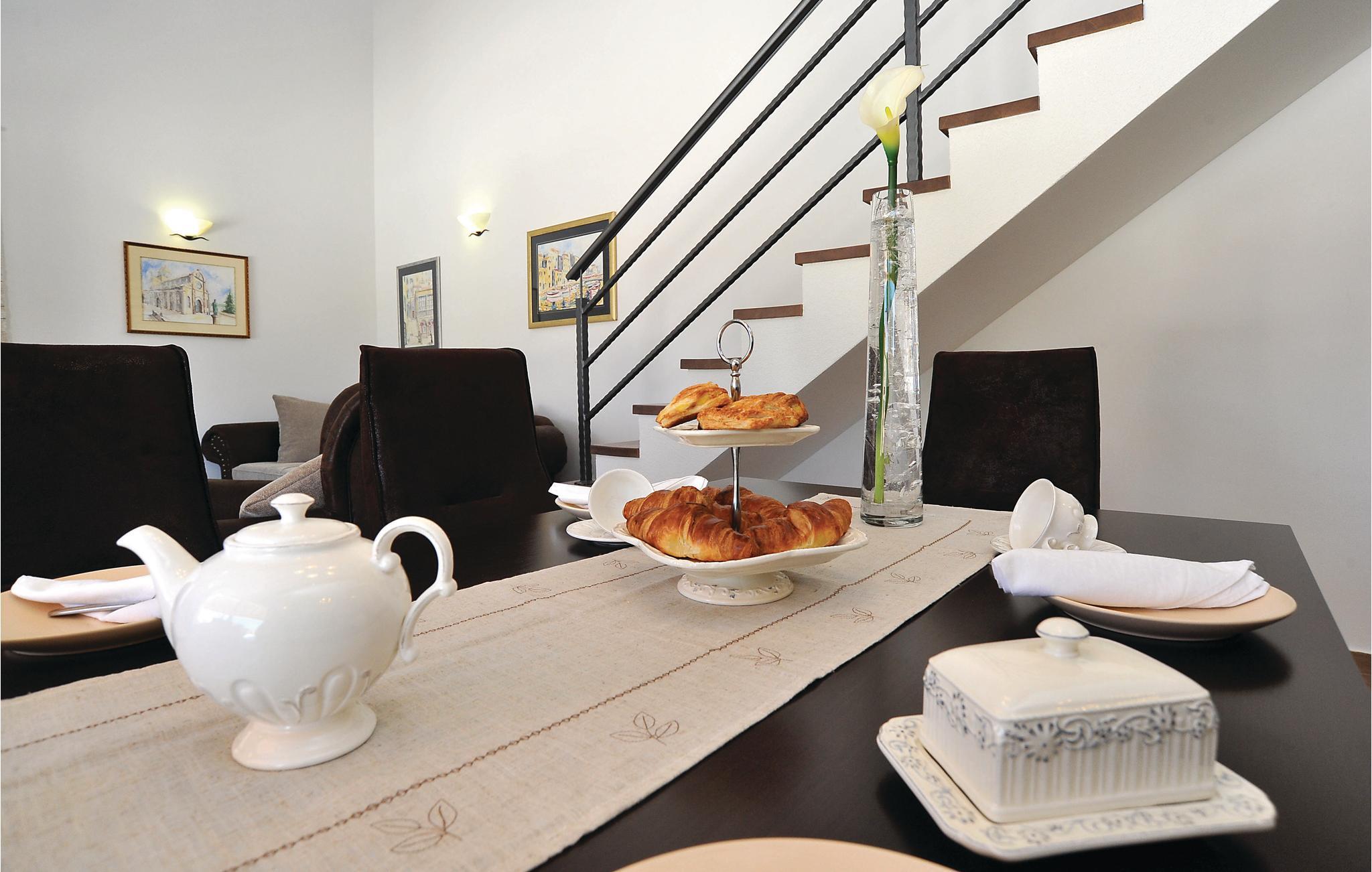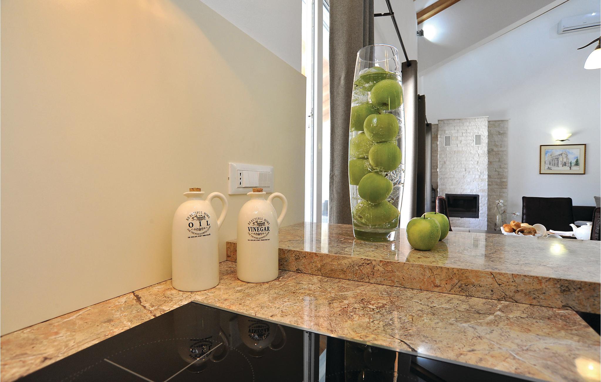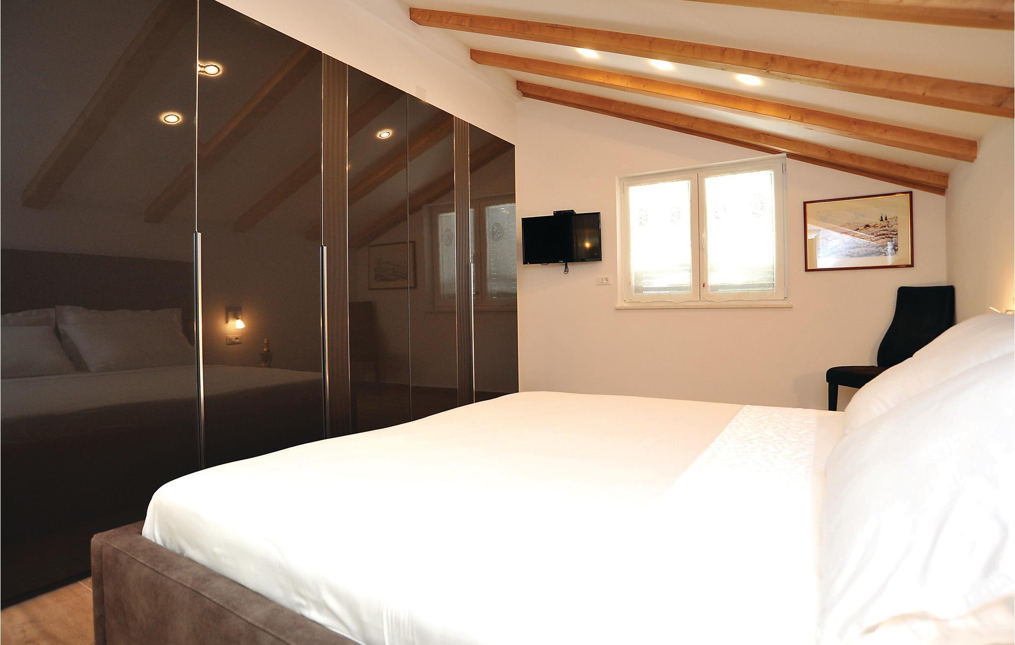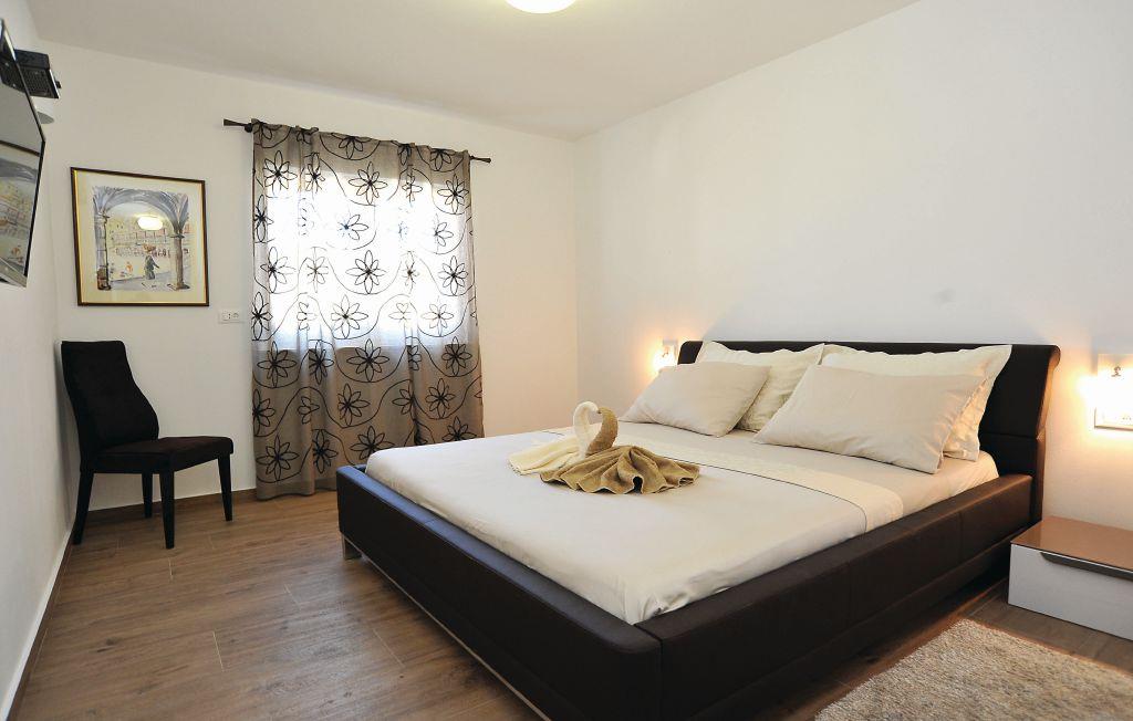 In der Nähe der Stadt Sibenik, im Ort Dubrava liegt dieses luxuriöse Ferienhaus für 8 Personen. Im Erdgeschoss liegen ein Schlafzimmer mit Badezimmer, eine zusätzliche Toilette, eine Küche mit Wohnbereich und der Ausgang auf die Terrasse mit dem Swimmingpool. Im Obergeschoss sind noch zwei Schlafzimmer mit Badezimmern, während auf der Galerie ein Schlafsofa steht. Im Garten sind ein überdachtes Häuschen sowie ein Grill und noch eine weitere Toilette. Alle Schlafzimmer sind klimatisiert und verfügen über je einen Fernseher. Erfrischen Sie sich im Pool, und sonnen Sie sich auf der Terrasse in dieser ruhigen Gegend. Etwa 10 Minuten Autofahrt trennen Sie von dem Nationalpark Krka, den Sie sich nicht entgehen lassen sollten. Im Sommer bietet die Stadt Sibenik viele Veranstaltungen. Gleich neben dem Haus liegt die Unterkunft CDV508, mit dieser teilen Sie sich einen kleinen Spielplatz. Überdachte Parkplätze verfügbar.
