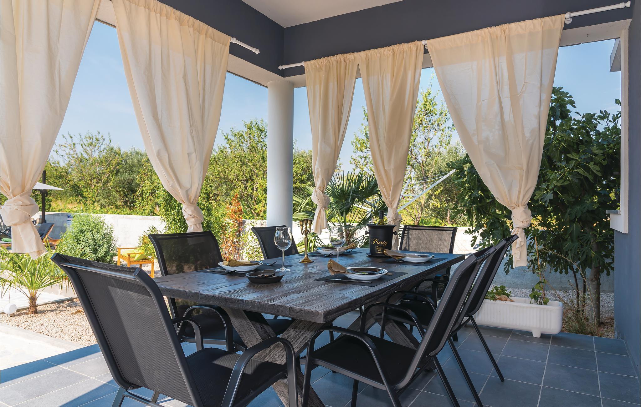 Dieses komfortable Ferienhaus mit Swimmingpool liegt nahe am Nationalpark Krka und ist einen kurzen Spaziergang vom schönen Strand entfernt. Vom Strand besteht Aussicht auf die kleine Insel Visovac. Das Domizil mit Pool befindet sich auf einem großzügigen, umzäunten Grundstück und hat zwei Etagen. Genießen Sie die Ruhe der naturnahen Umgebung, die ideal für Spaziergänge, Wanderungen und Radtouren geeignet ist. Aufregung bietet die Zip-Line über der Cikole-Schlucht. Sehenswert ist ebenfalls die antike Stadt Skradin, sie beherbergt ausgezeichnete Restaurants und einen Luxus-Yachthafen. Dank der guten Verkehrsanbindung an die Schnellstraße sind die Städte Split und Zadar etwa eine halbe Autostunde entfernt, die Stadt Šibenik ist ca. 20 km entfernt.