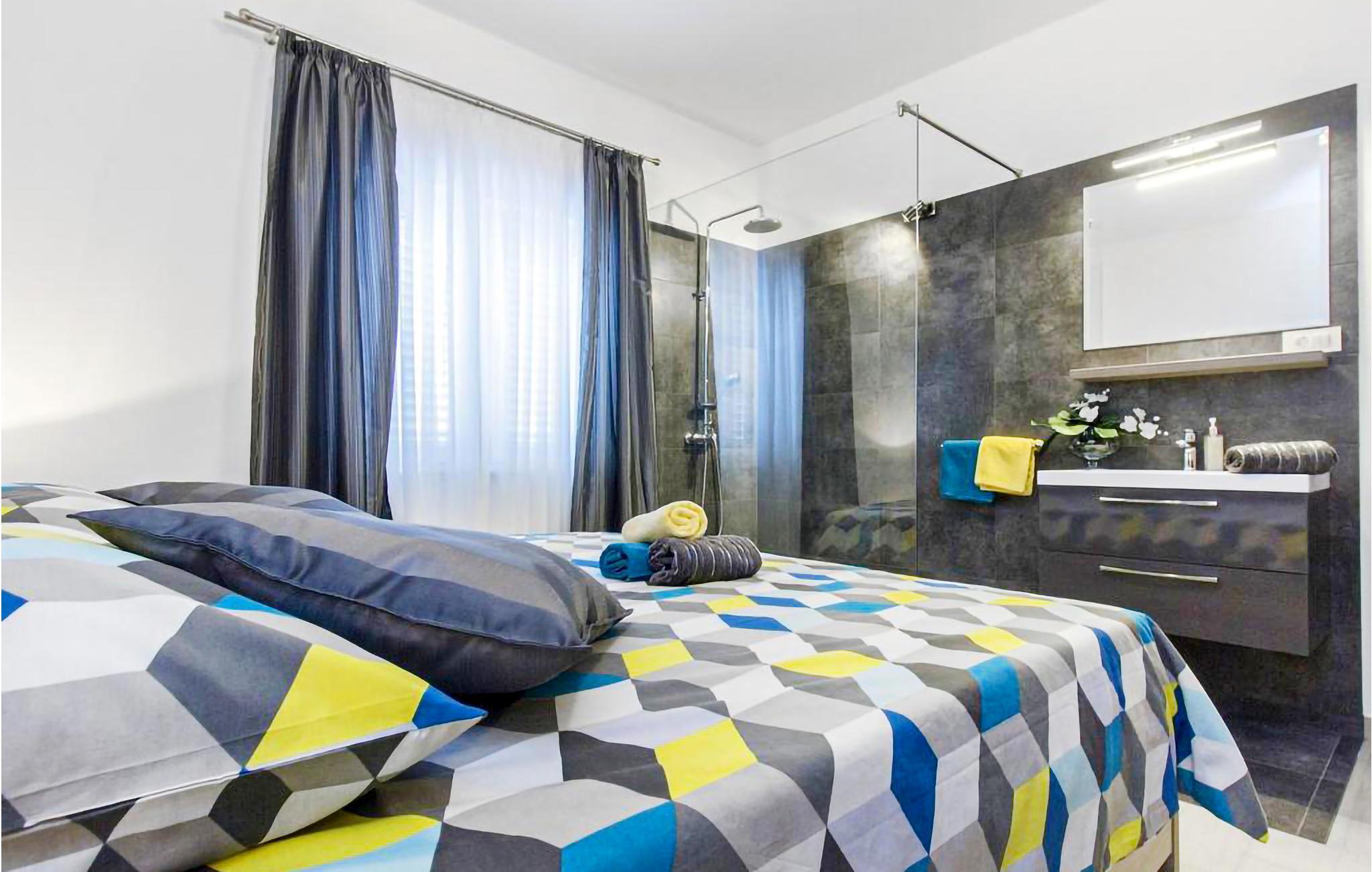 Die Wohnung erwartet ihre Gäste im Erdgeschoss eines Wohnhauses und ist geräumig und komfortabel. Die moderne Einrichtung verleiht dem Apartment seinen besonderen Charme, mit 3 Schlafzimmern, die mit bequemen Doppelbetten ausgestattet sind, bietet sie Platz für bis zu 6 Personen. Dank Klimaanlage genießen Sie hier auch im Sommer angenehme Temperaturen.